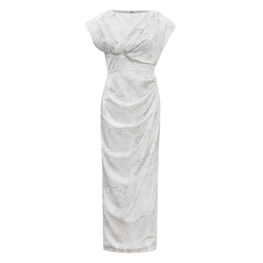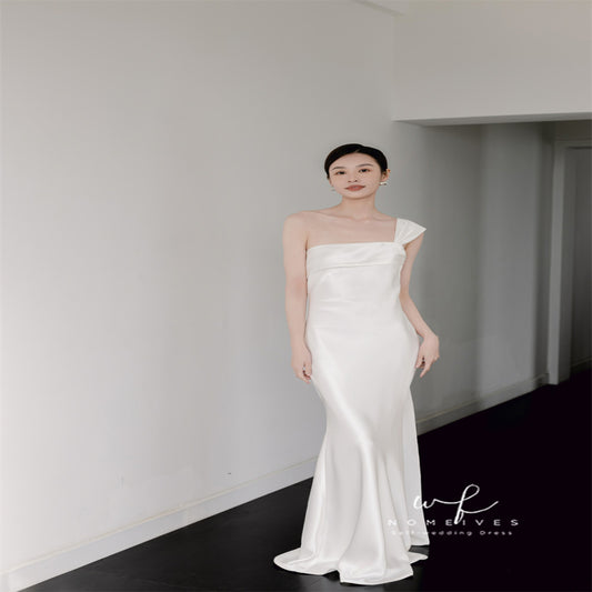 ASAYA3706 White morning gown one shoulder slim fishtail satin evening dress