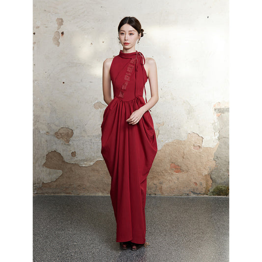 ASAYA4005 Halter Neck Cheongsam Dress (Red & Black) ✨
