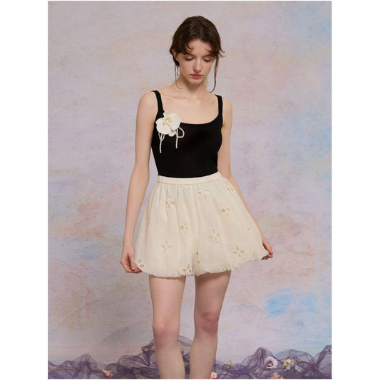 Asaya2153 : Xia Shiwen Ink Pen Raw Flower Lyocell Retro Loose Printed Suspenders / High Waist Wide Leg Pants Suit Female Summer