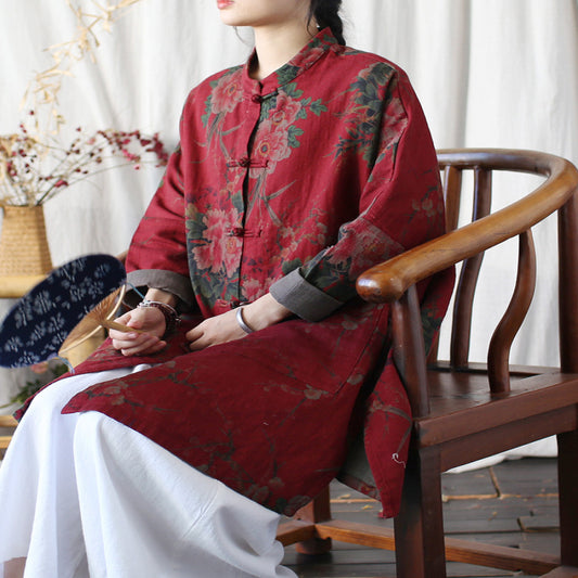 ASAYA4299 - Red National Style Stand up Collar Peony Heritage Jacket 🌿✨❤️