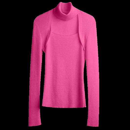 ASAYA2678 High fashion detachable scarf slim fit knitted top