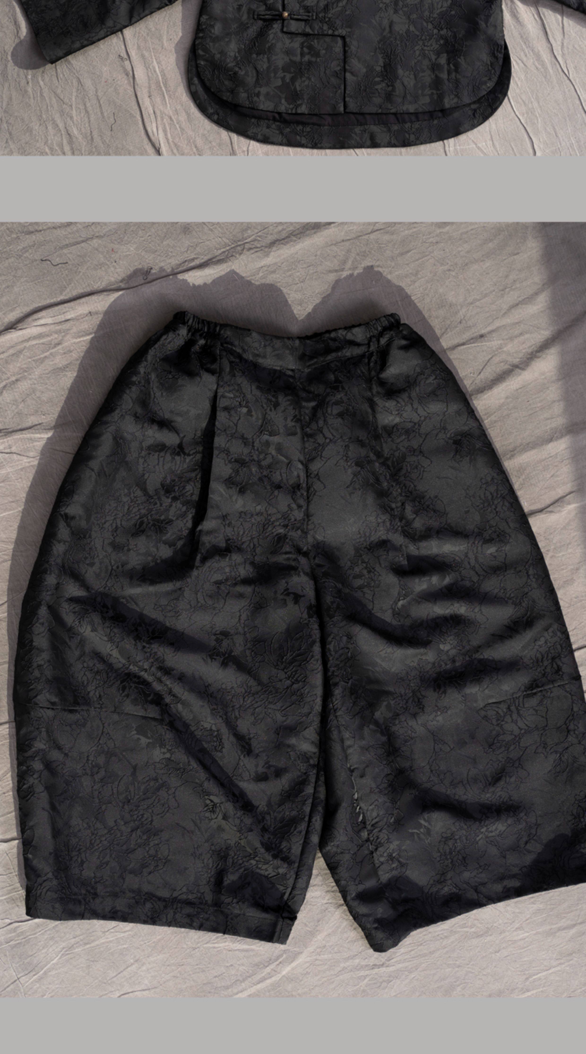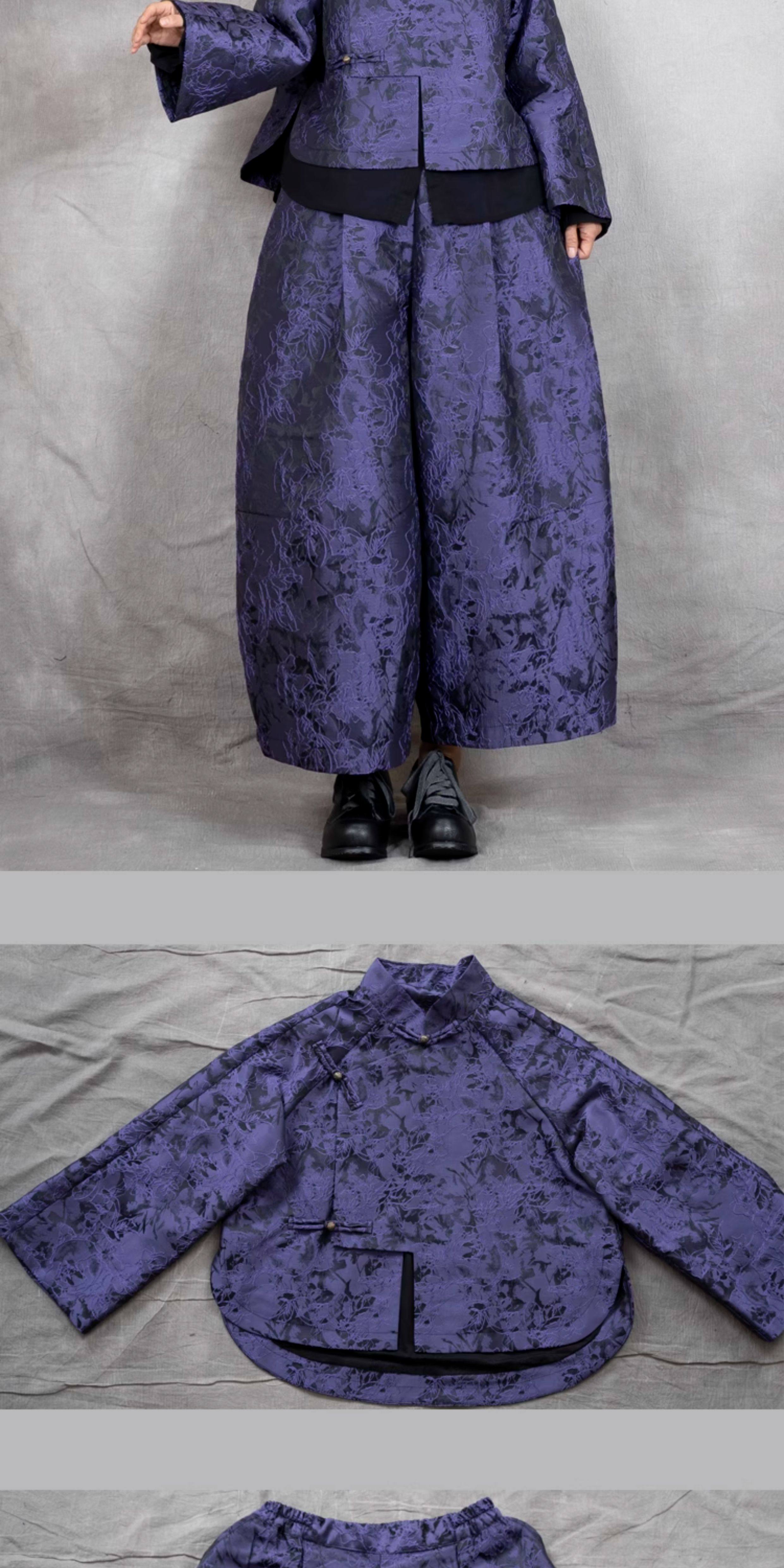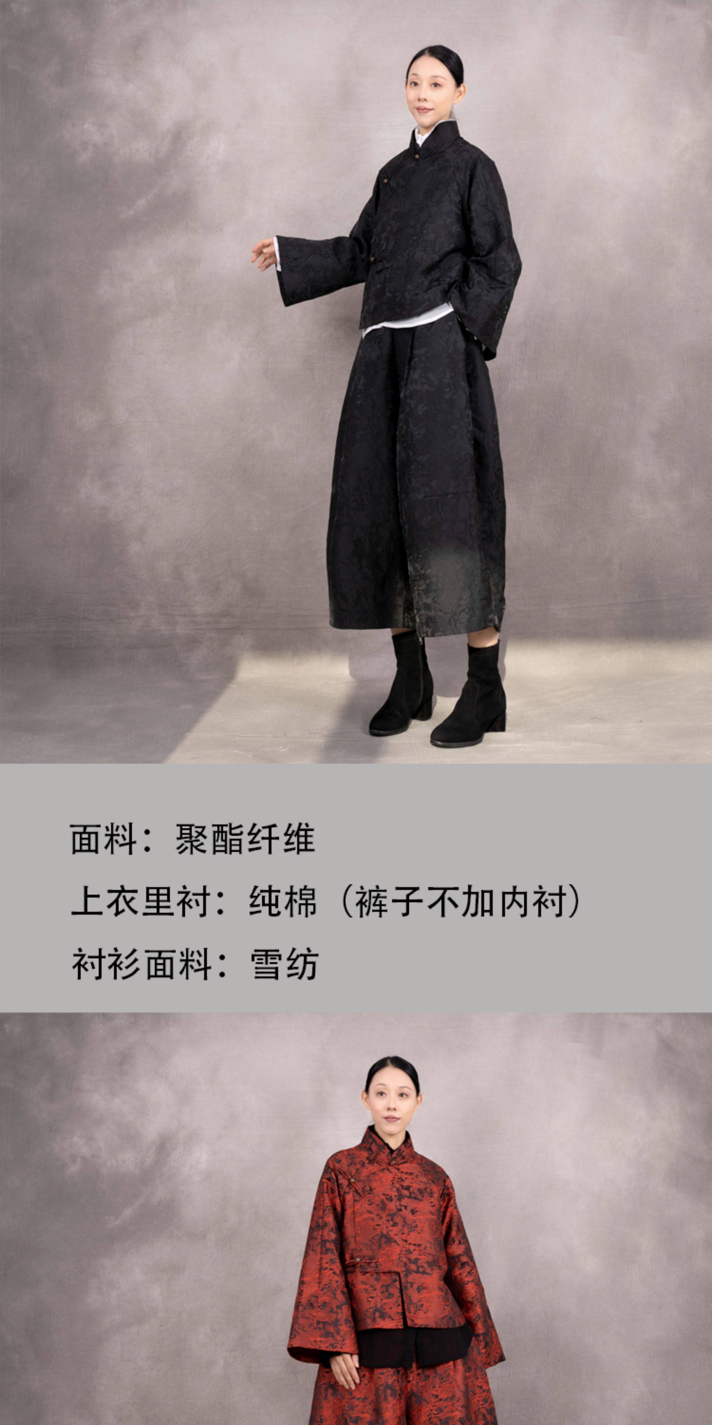 | Color classification | Black Jacquard Top, Black Jacquard Puff Pants, Purple Jacquard Top, Purple Jacquard Puff Pants, White Chiffon Perspective Shirt |