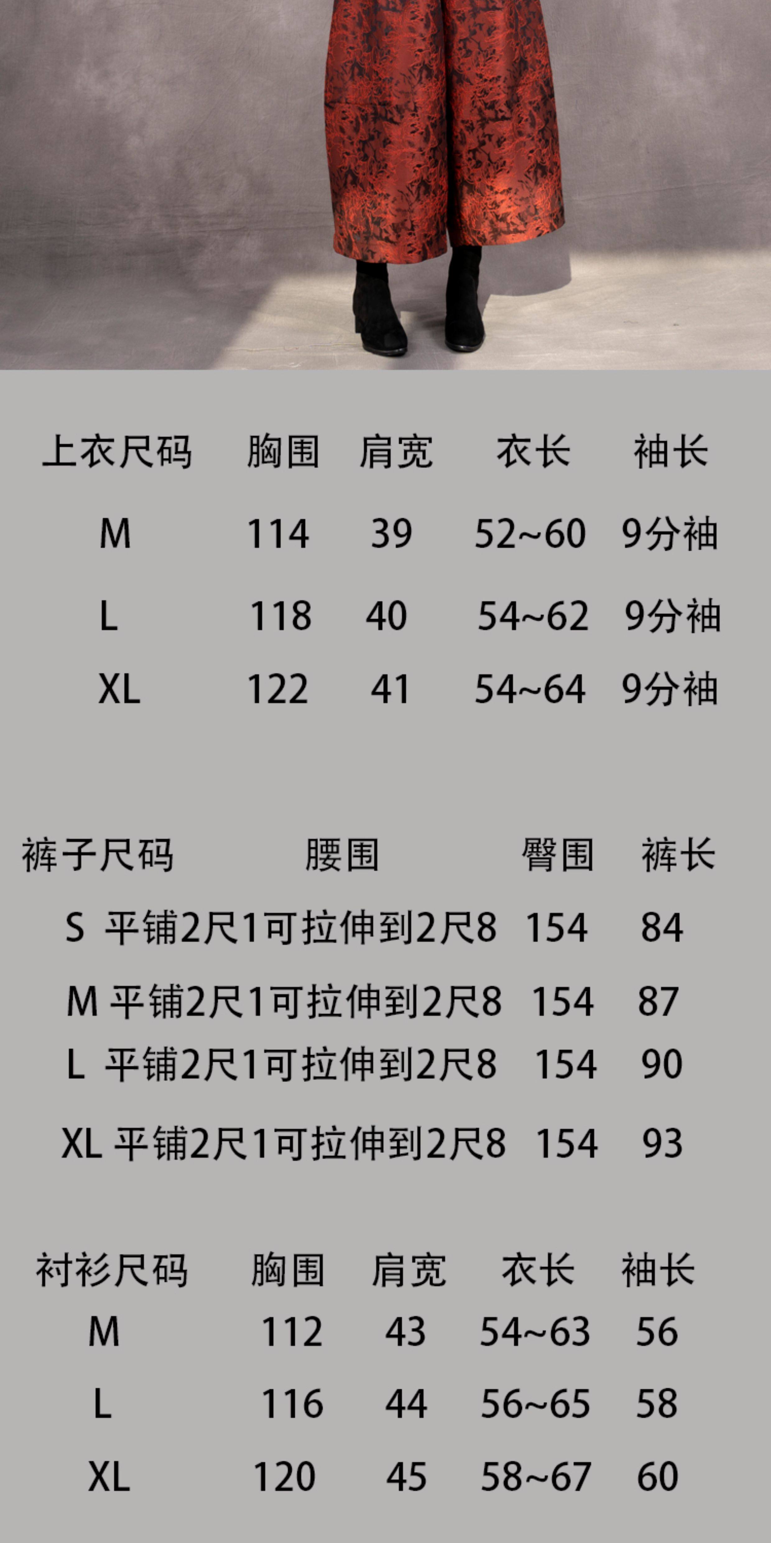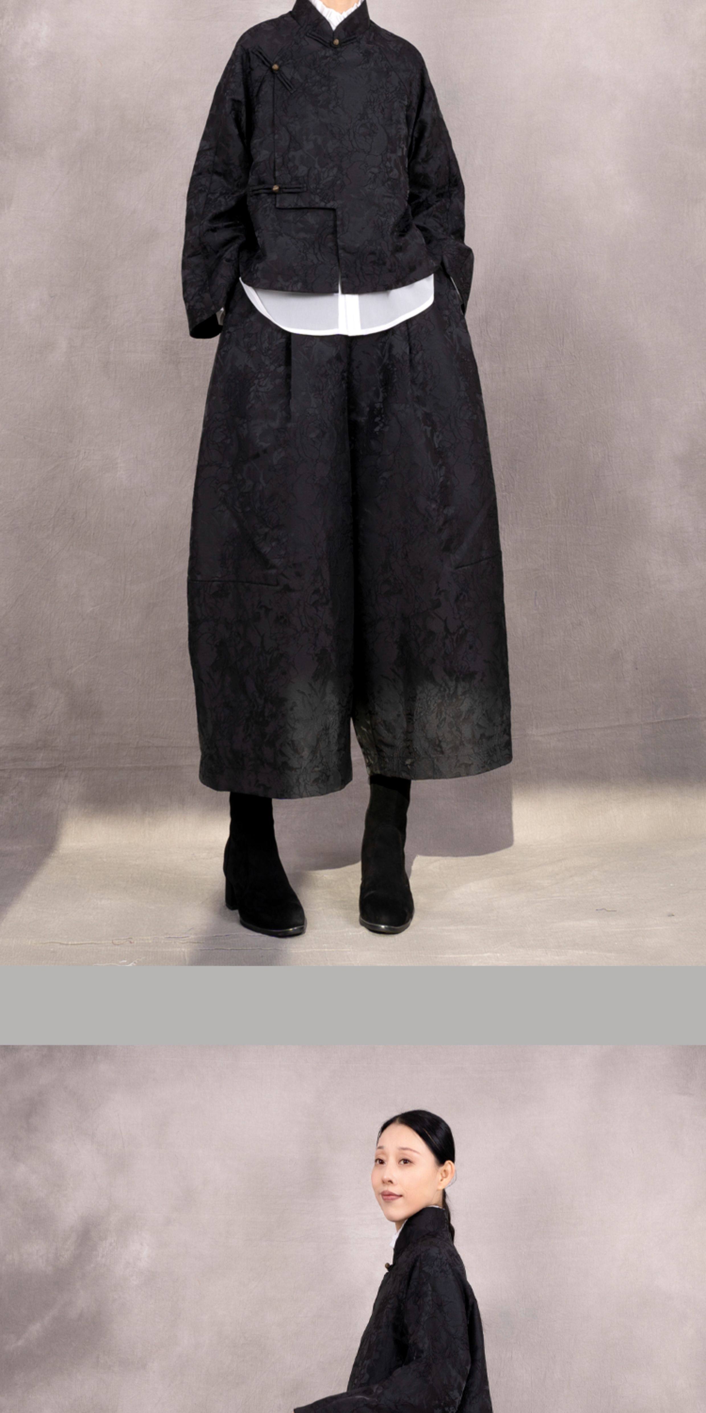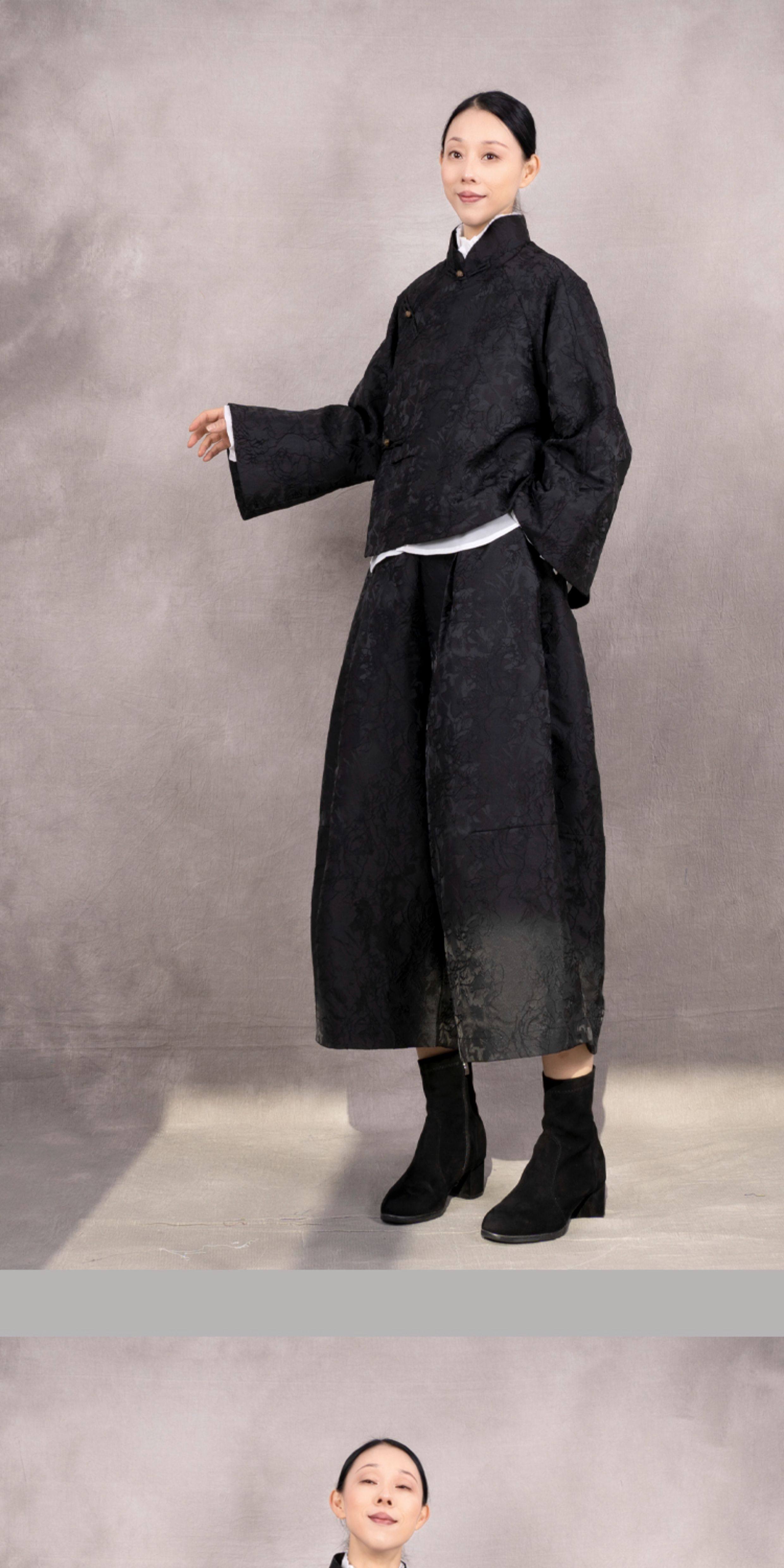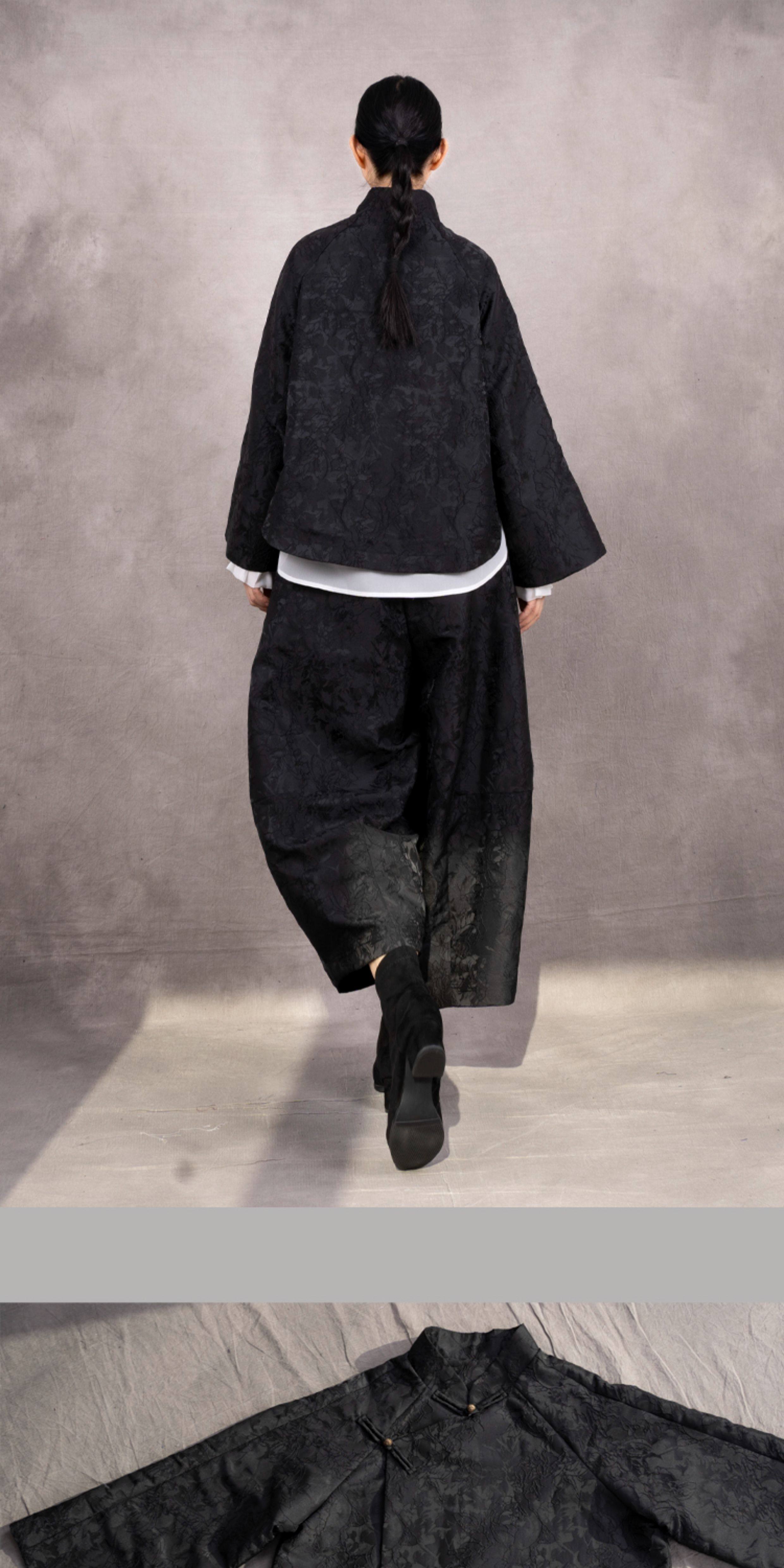| Color classification | Black Jacquard Top, Black Jacquard Puff Pants, Purple Jacquard Top, Purple Jacquard Puff Pants, White Chiffon Perspective Shirt |