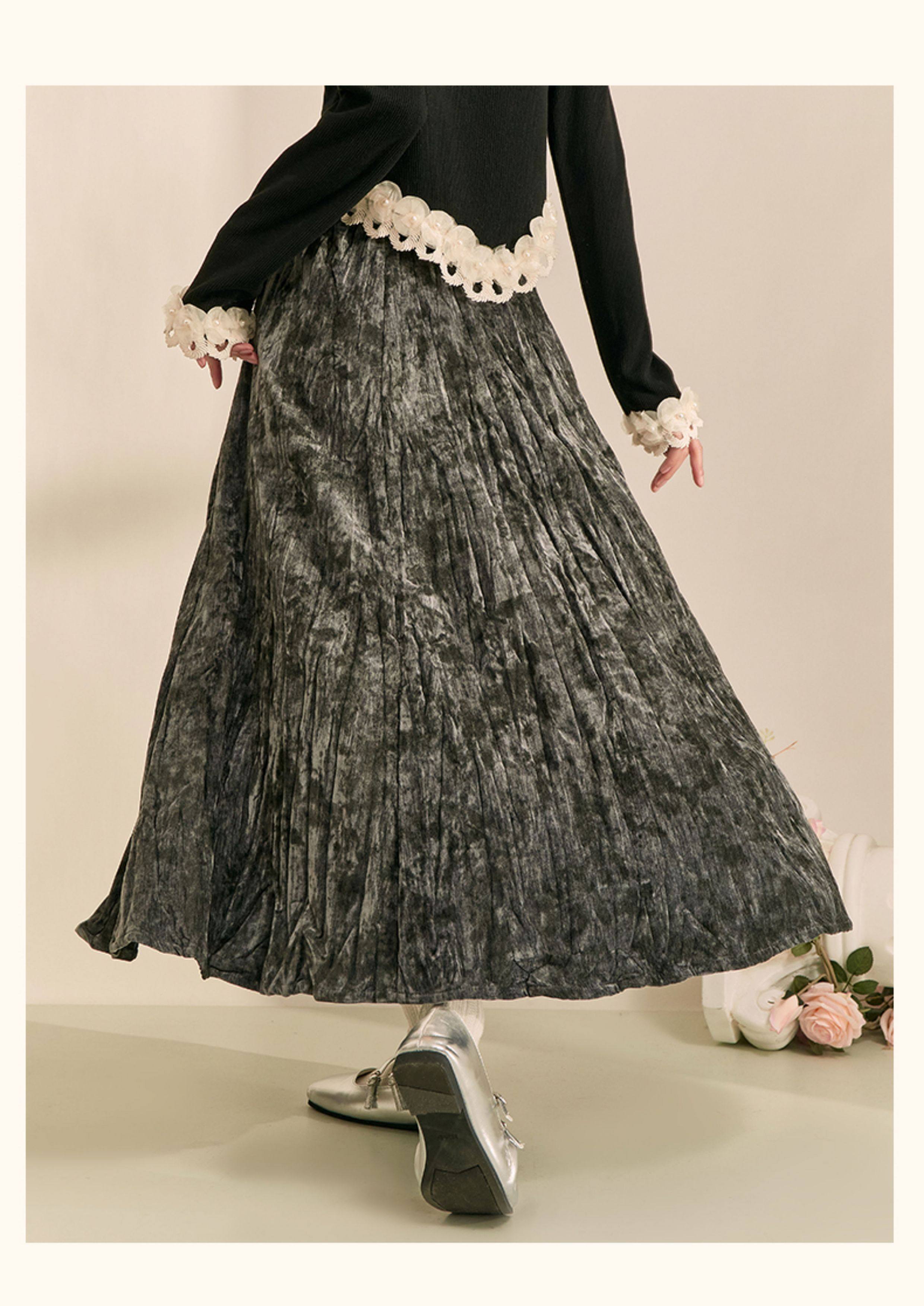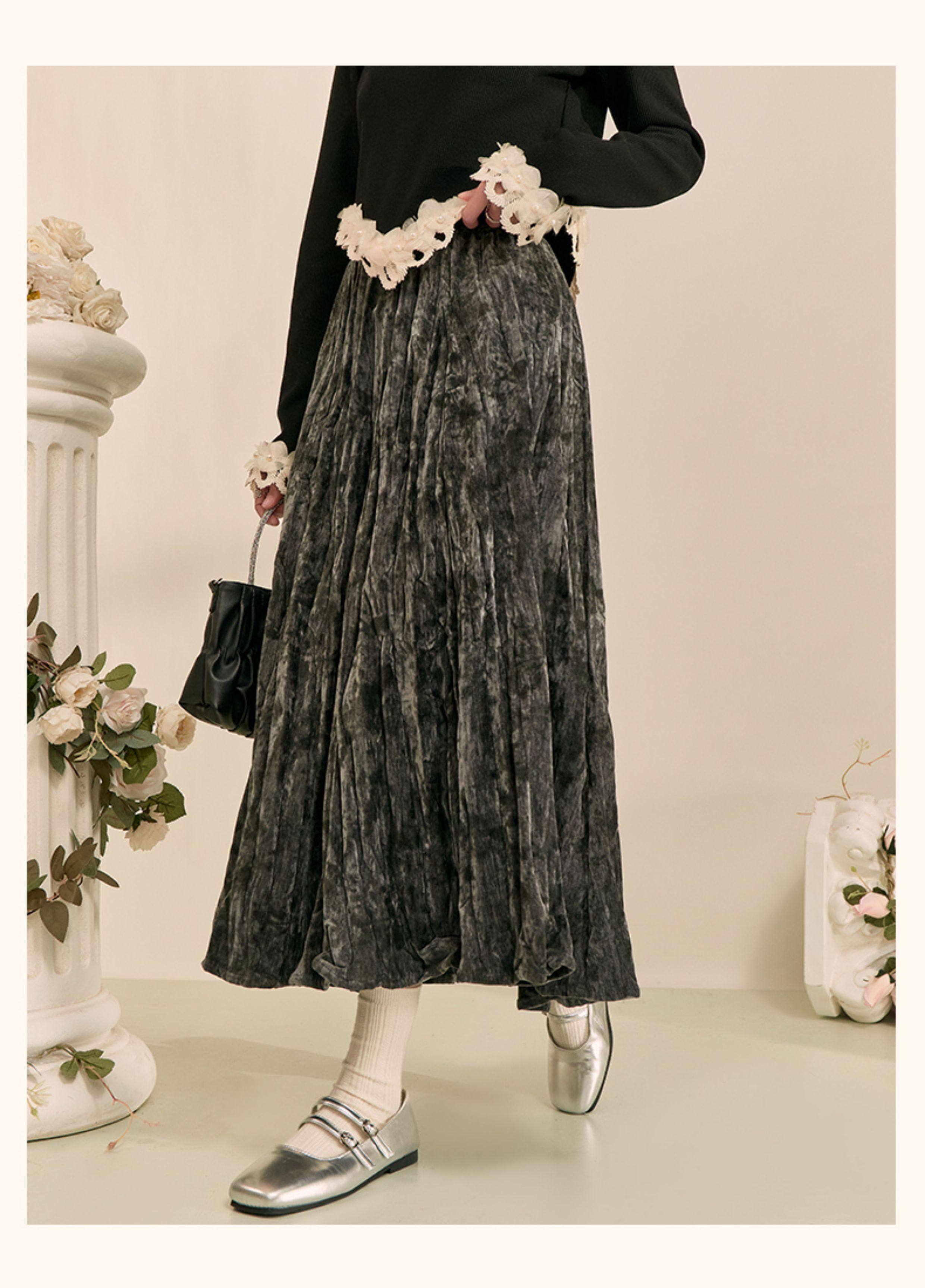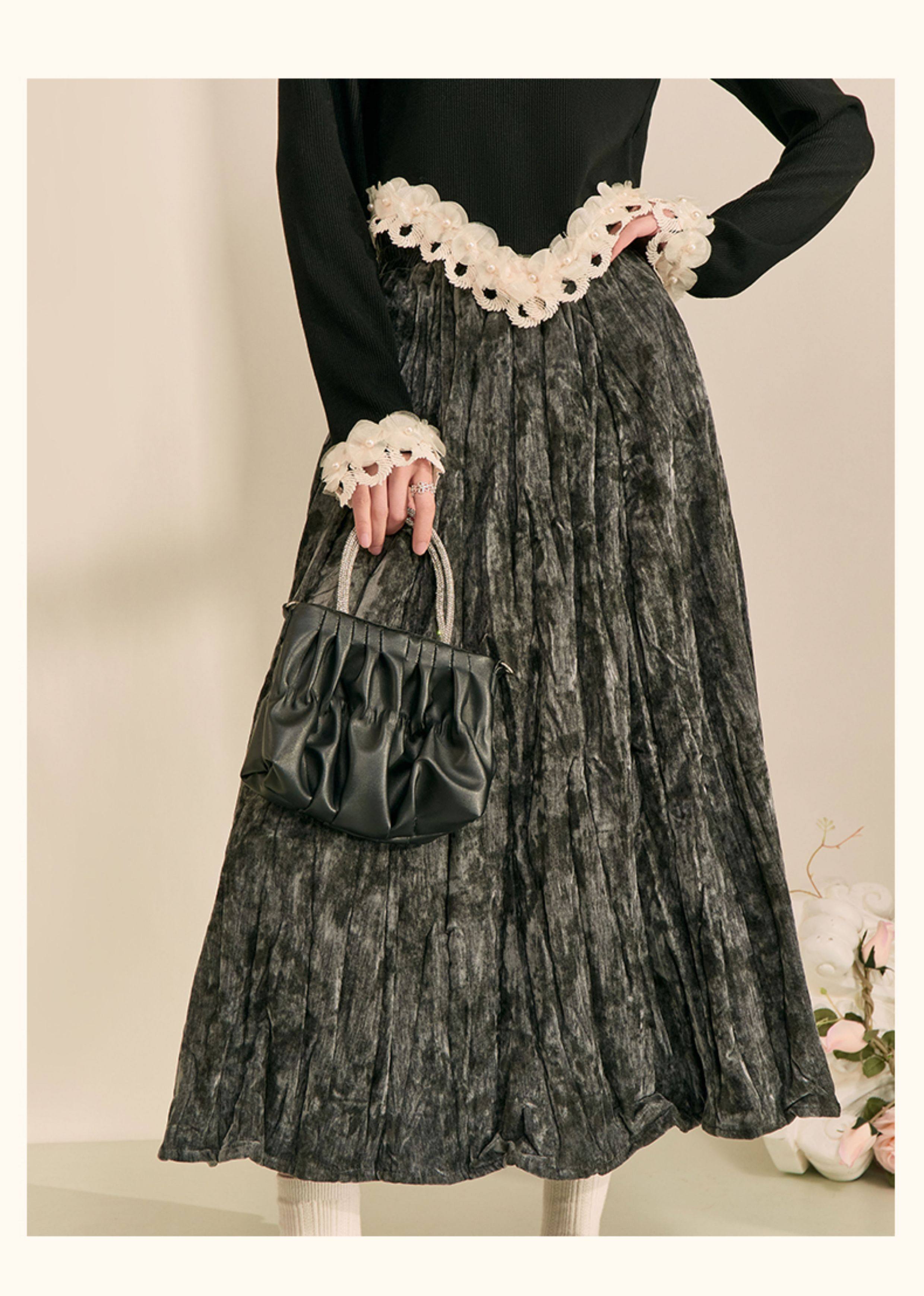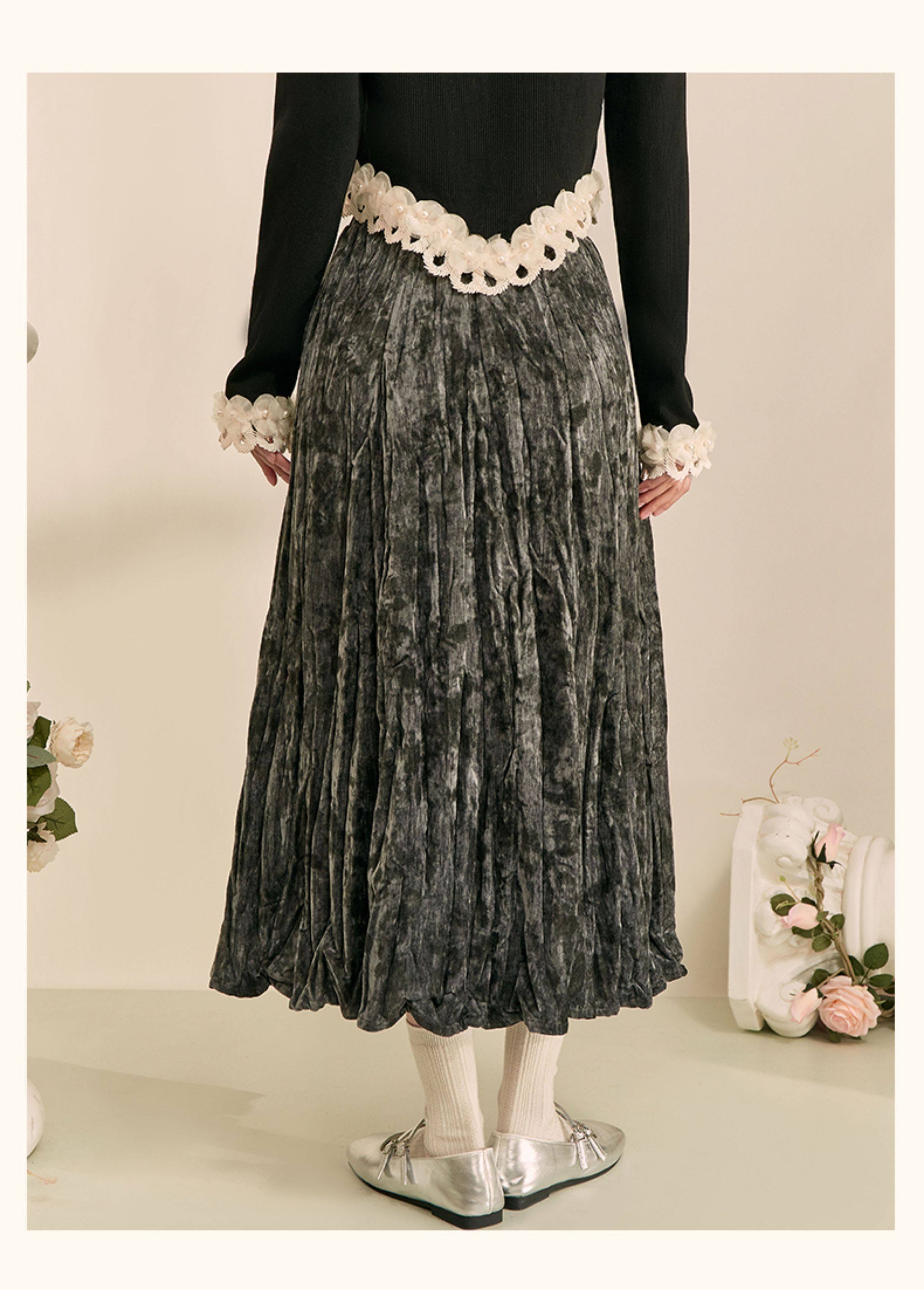 ASAYA5174 – Velvet Cloud Pleated Skirt ☁️🖤