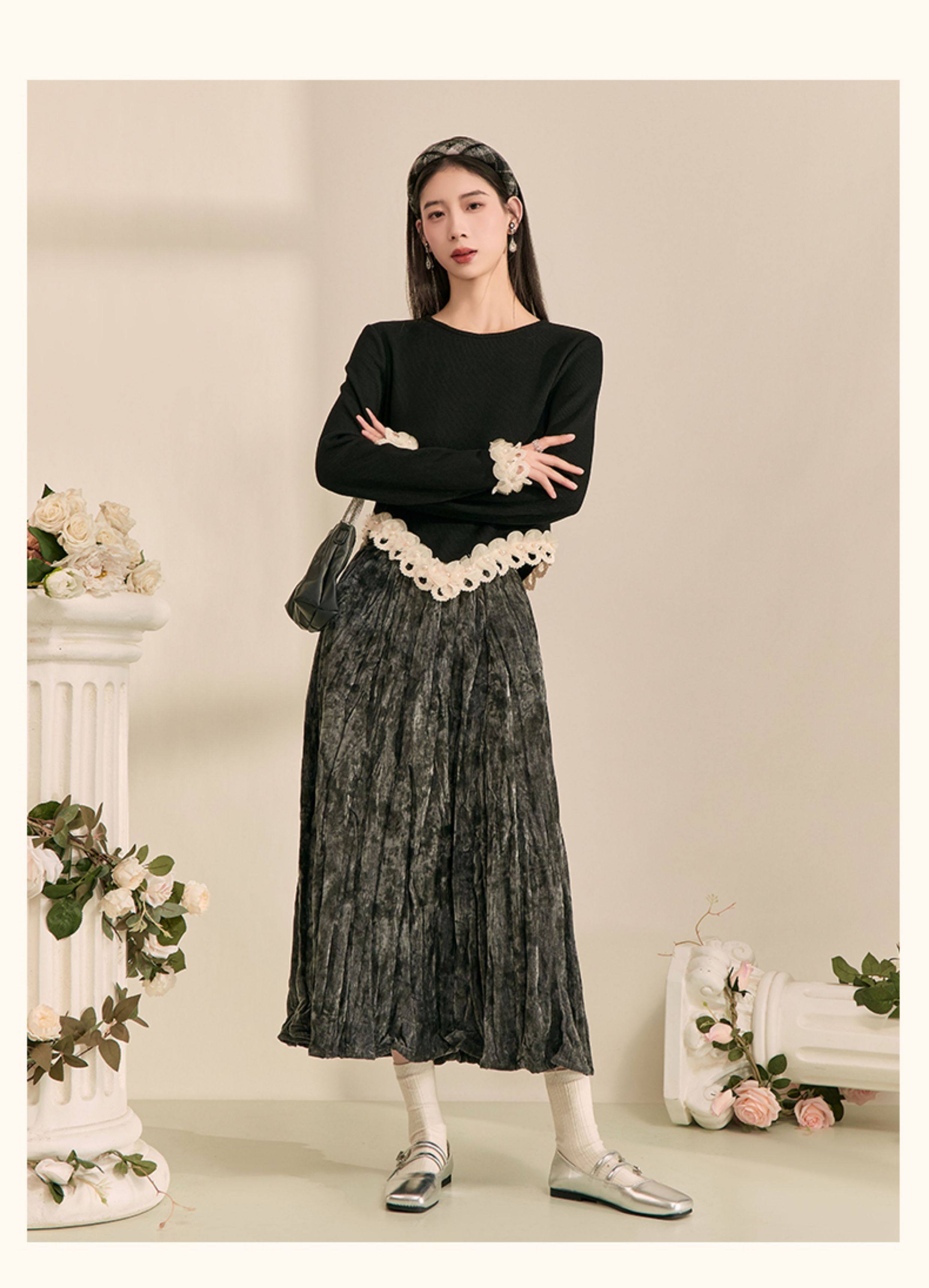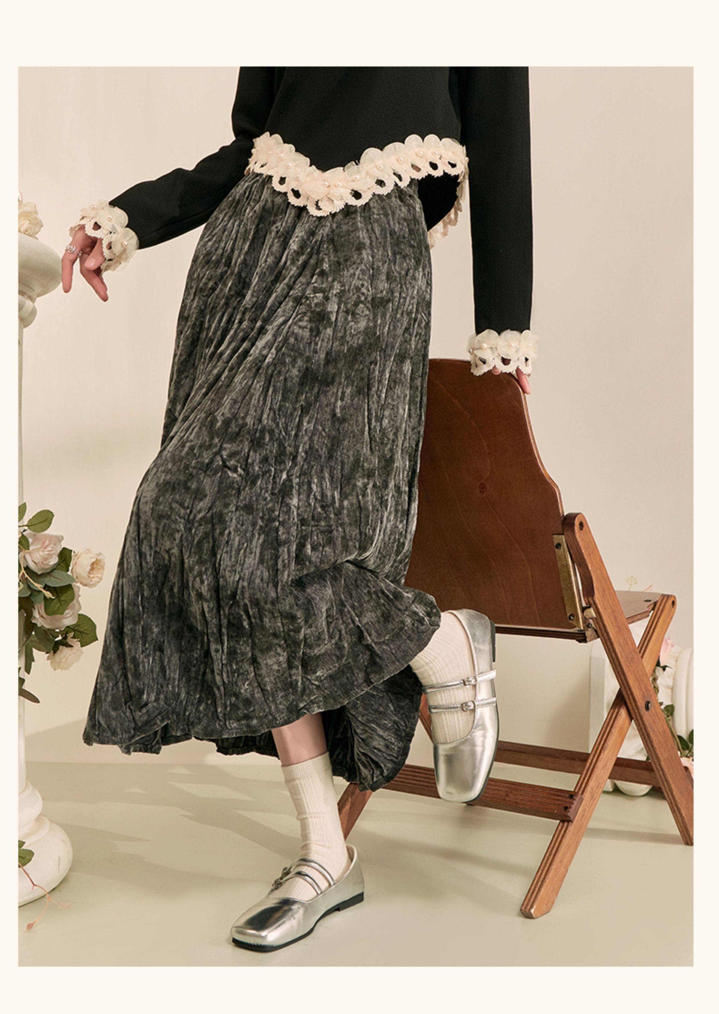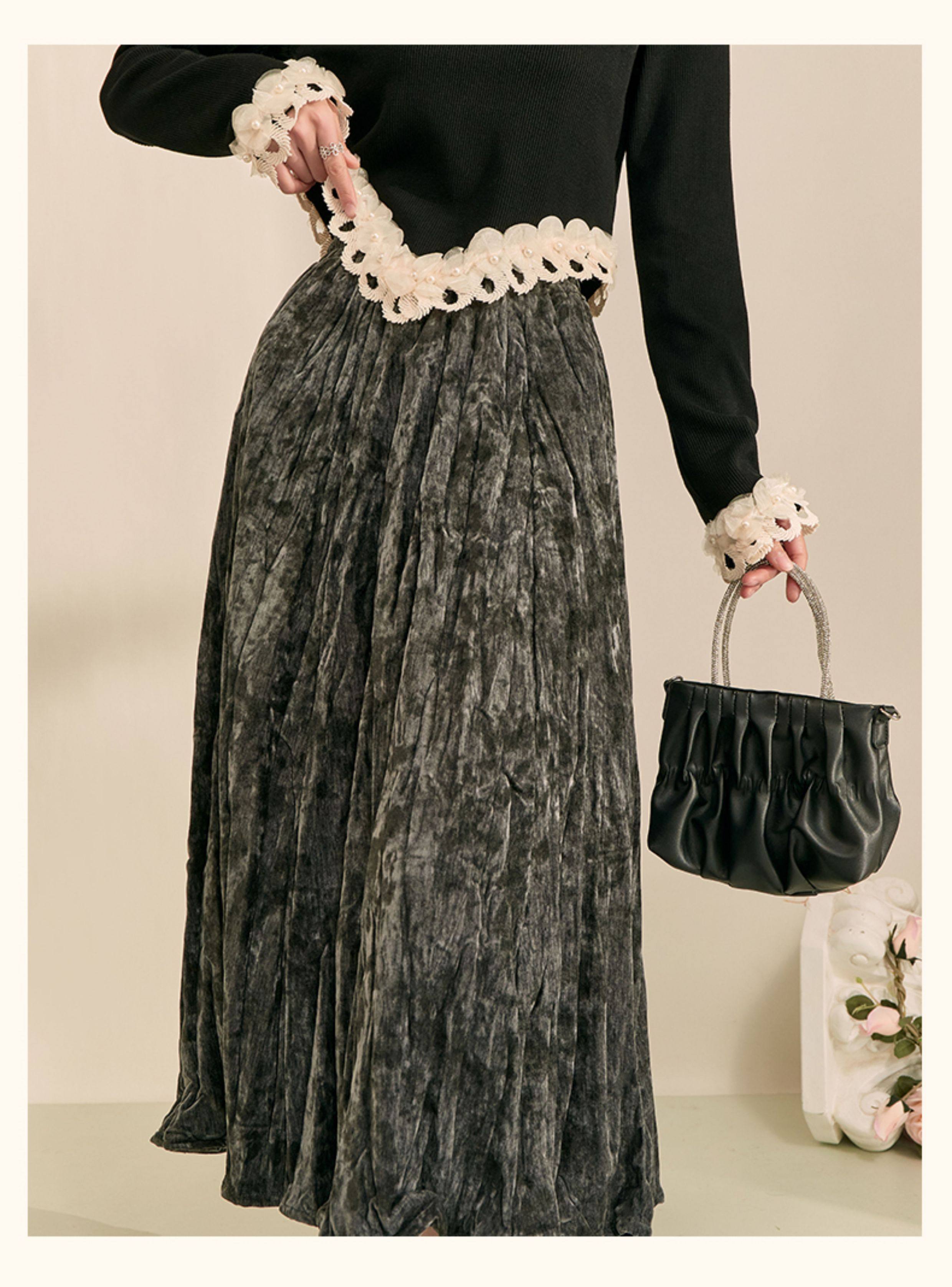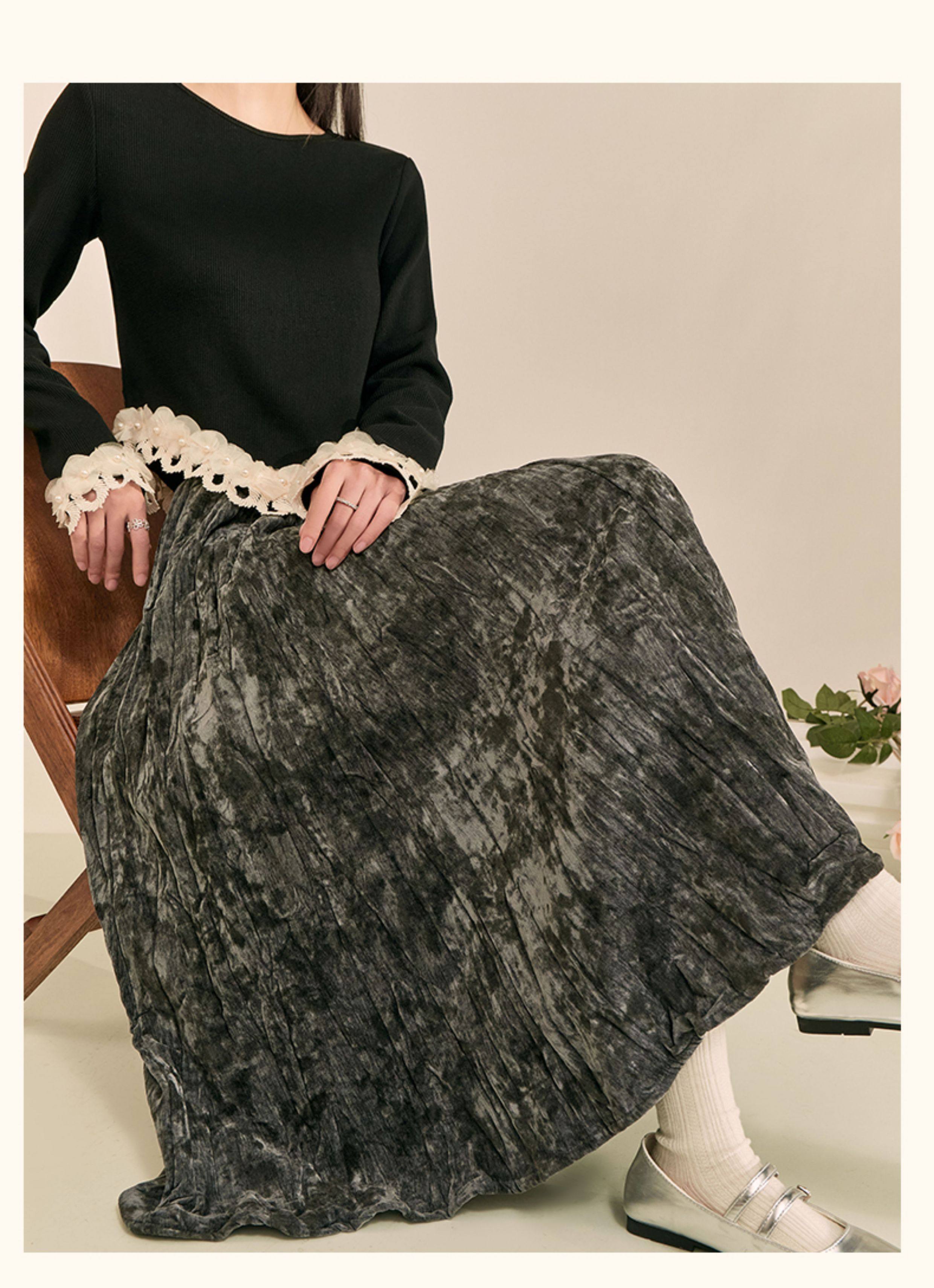 ASAYA5174 – Velvet Cloud Pleated Skirt ☁️🖤