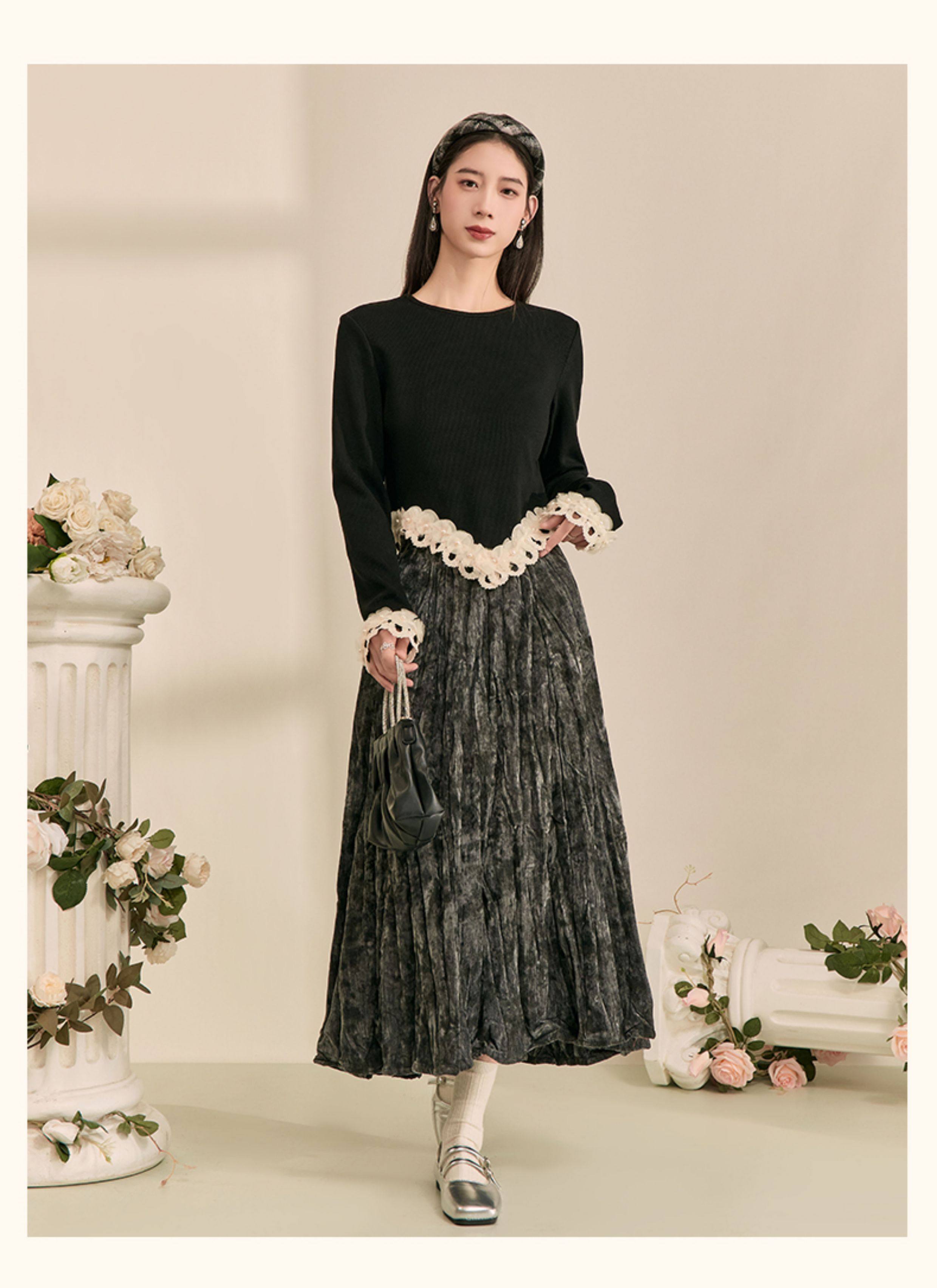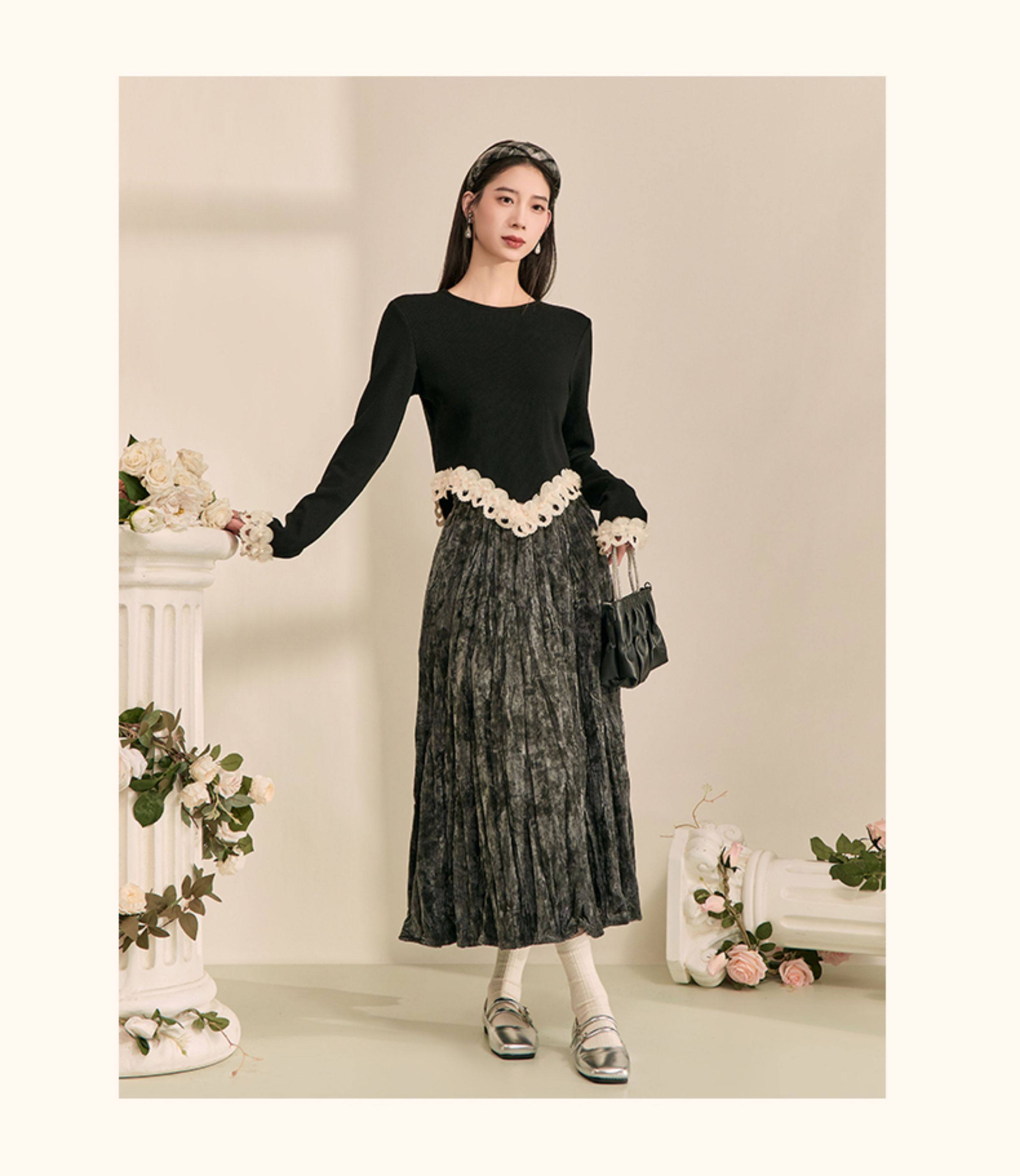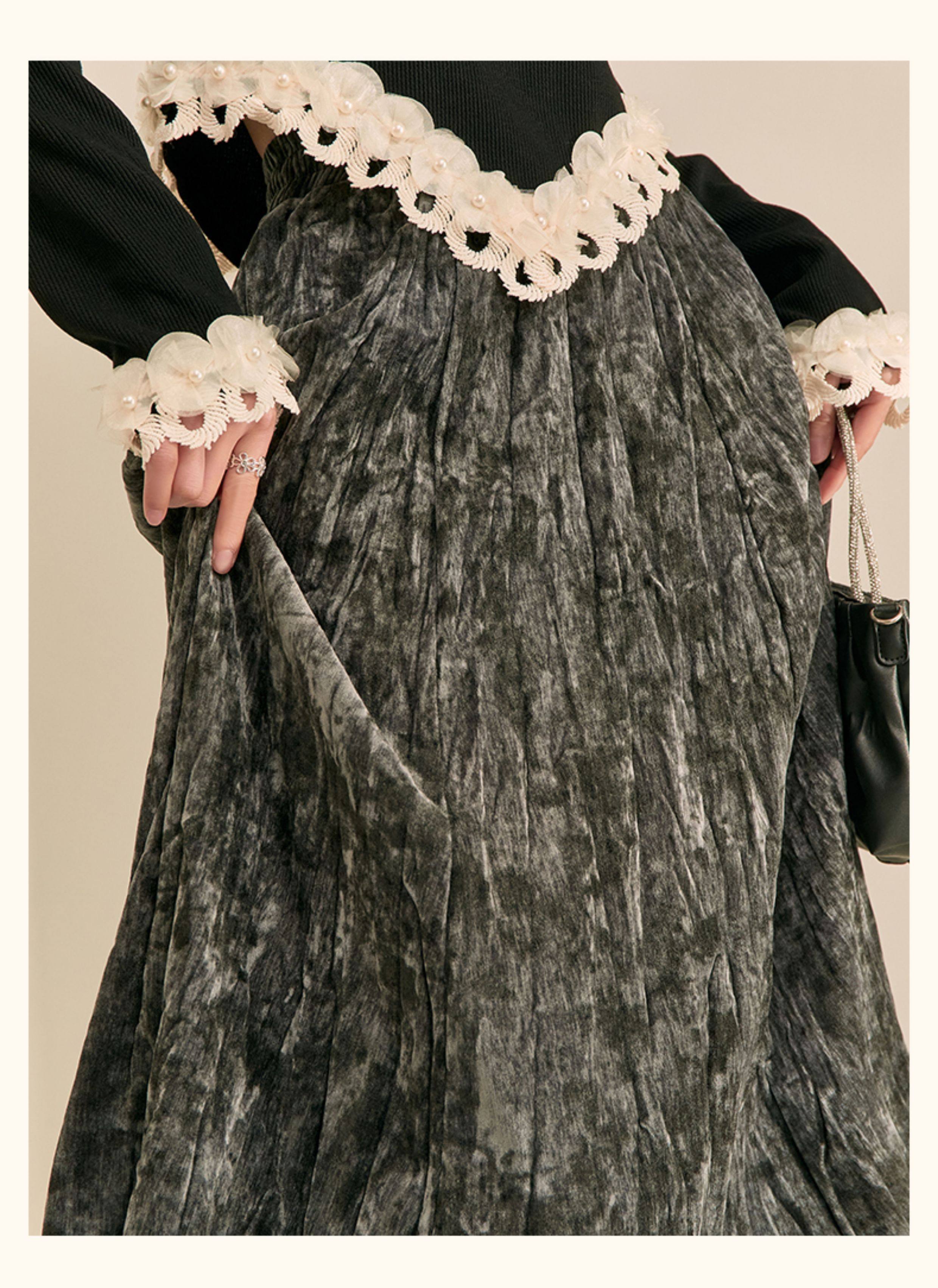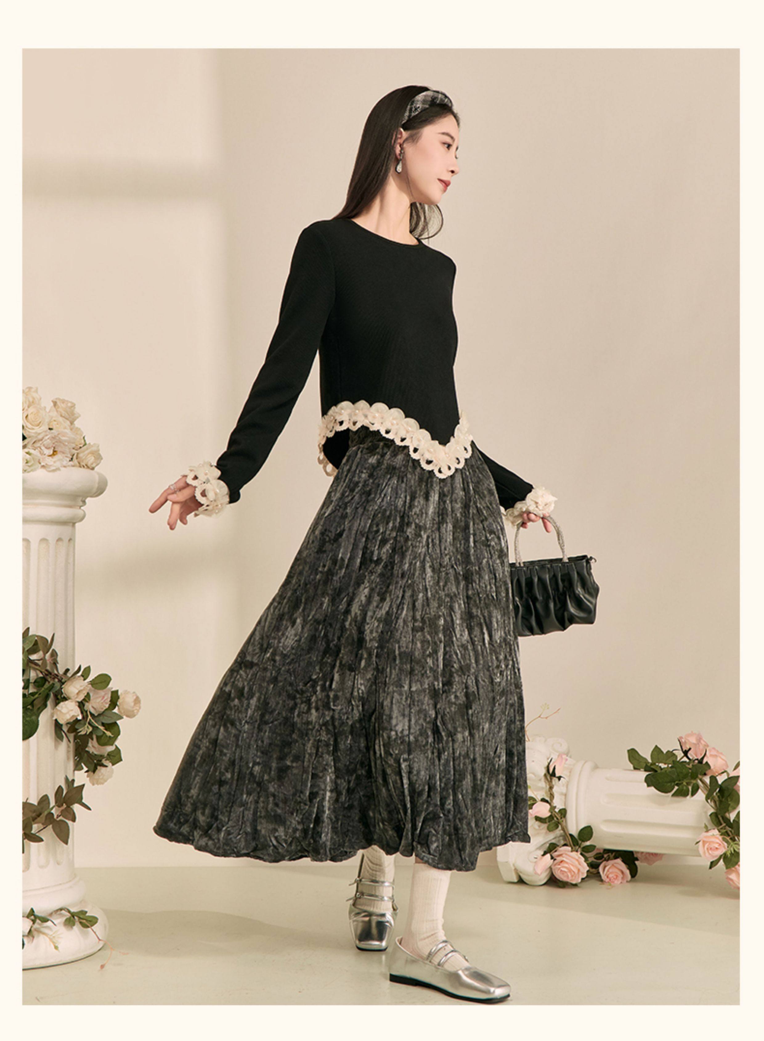 ASAYA5174 – Velvet Cloud Pleated Skirt ☁️🖤