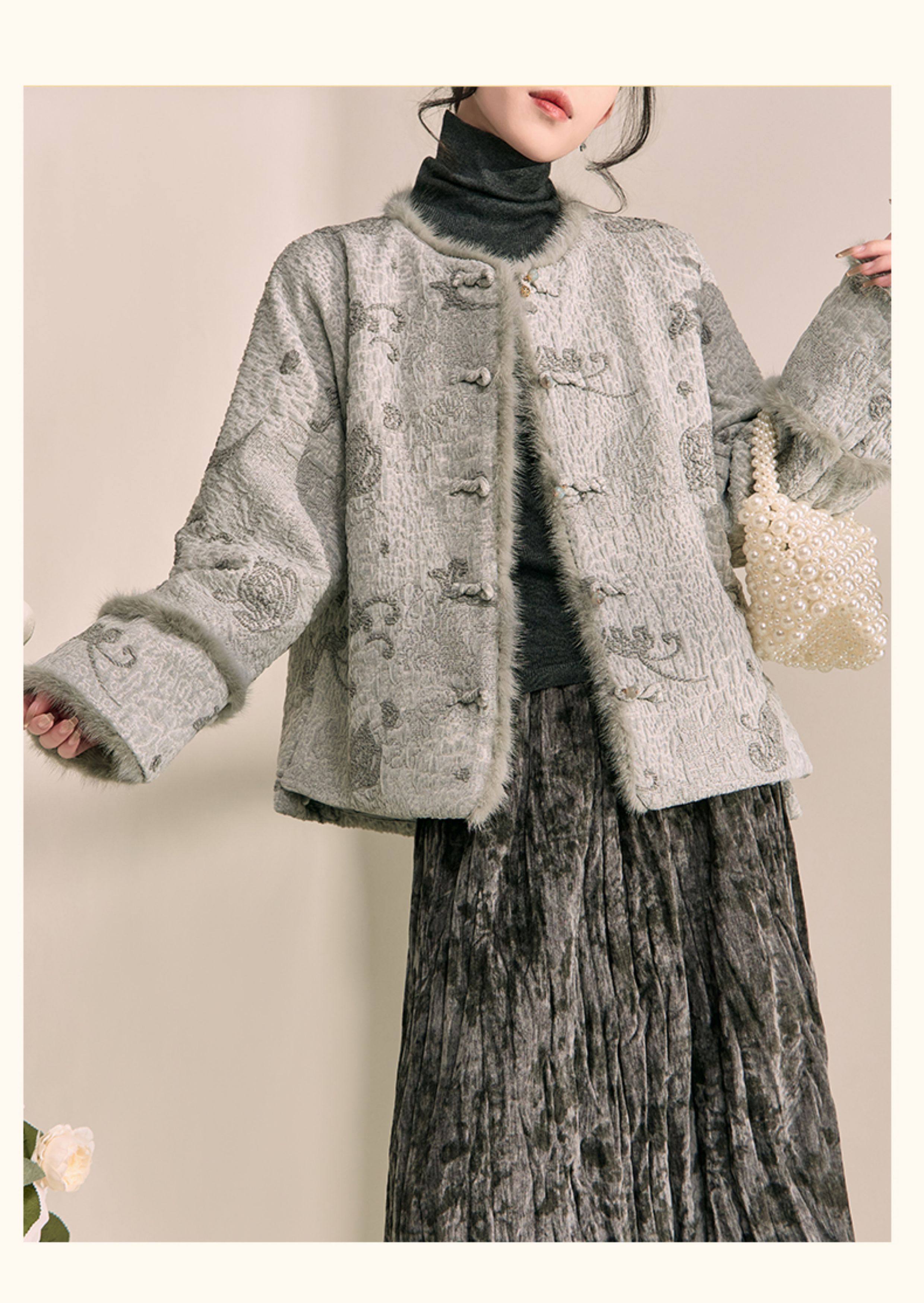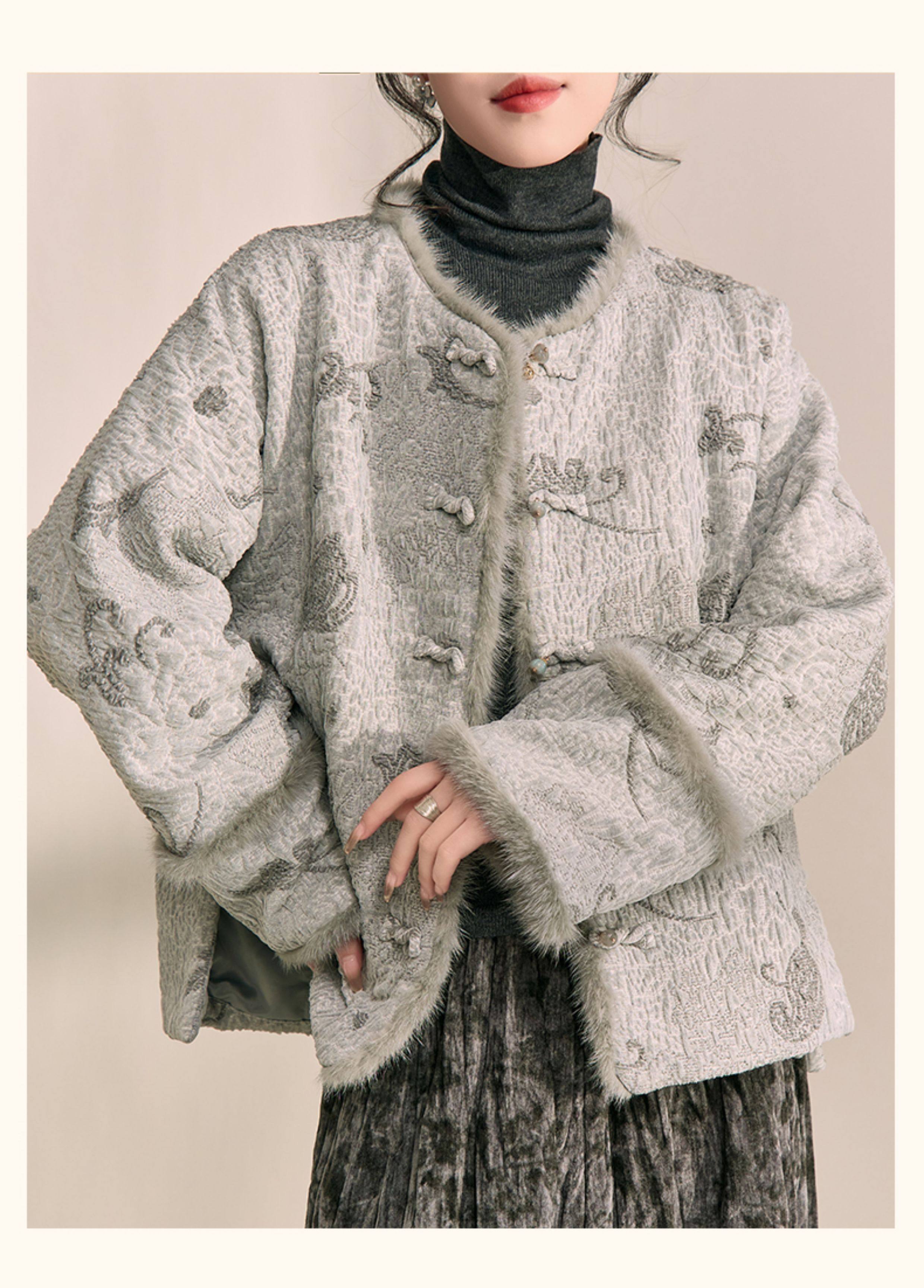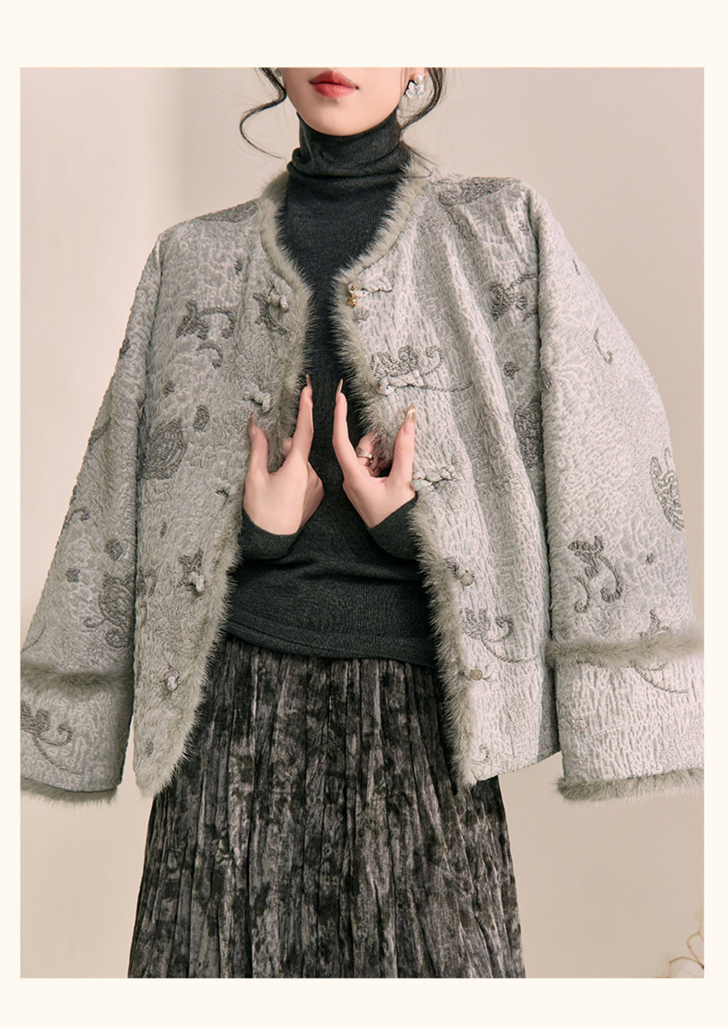 ASAYA5173 – Frosted Garden Brocade Jacket ❄️🕊️