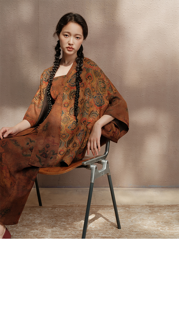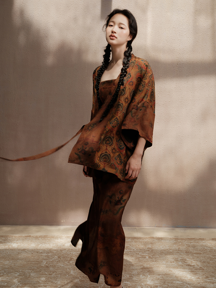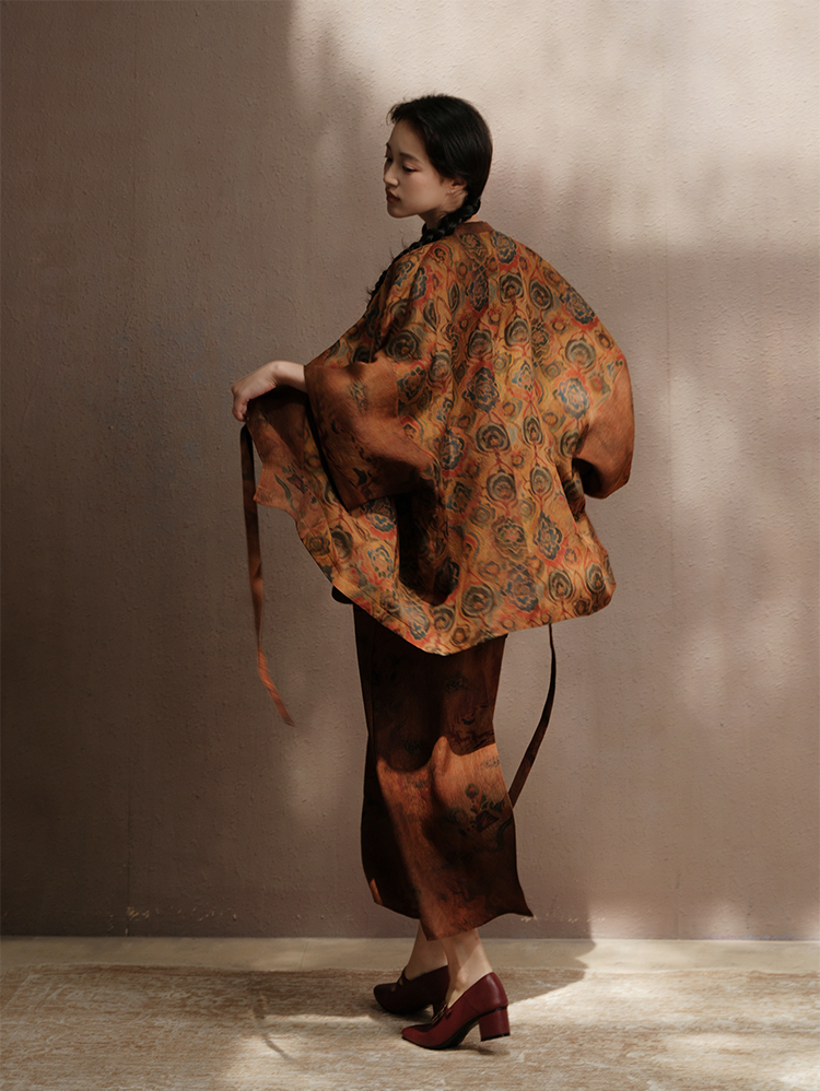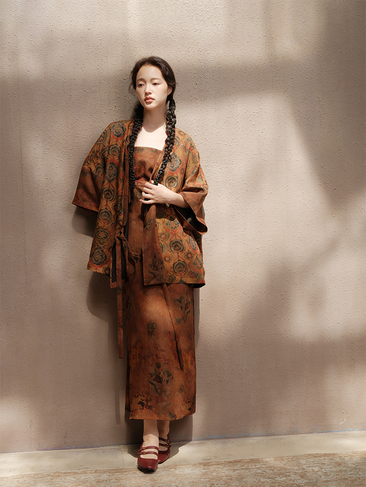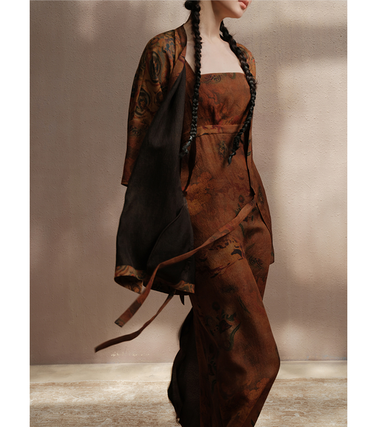 ASAYA3675 Luoshenfu Chinese painting print style coat with overlapping placket and slim fit dress (Sold Seperately)