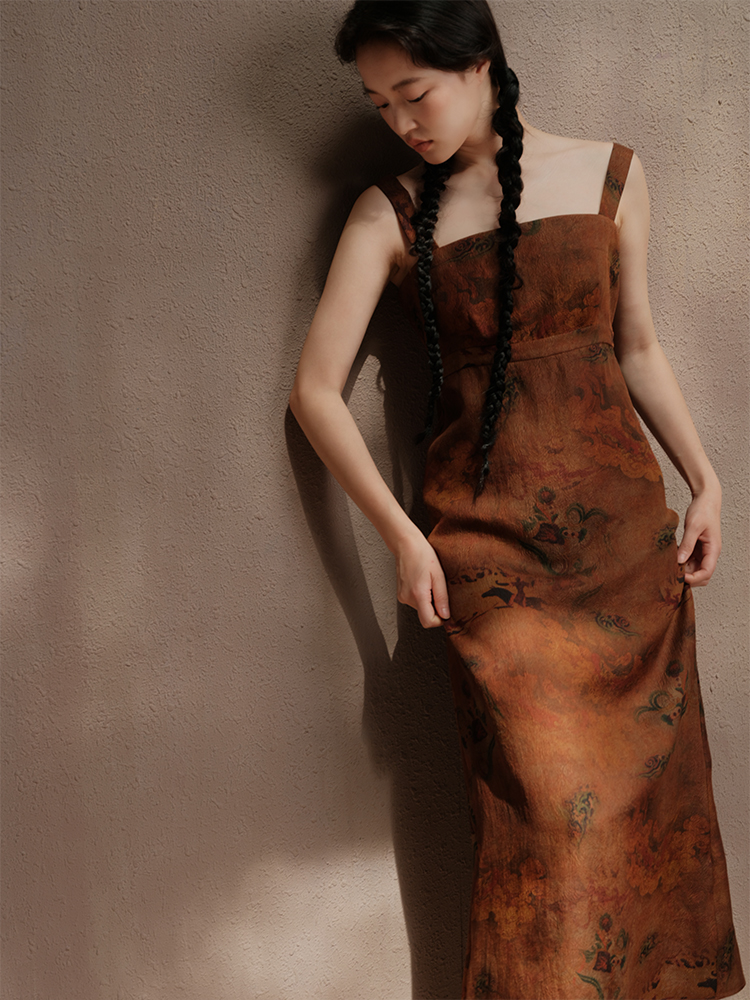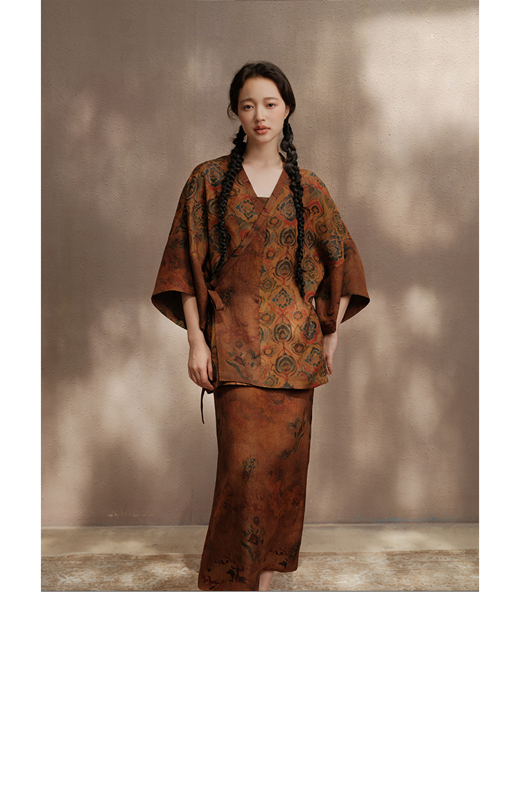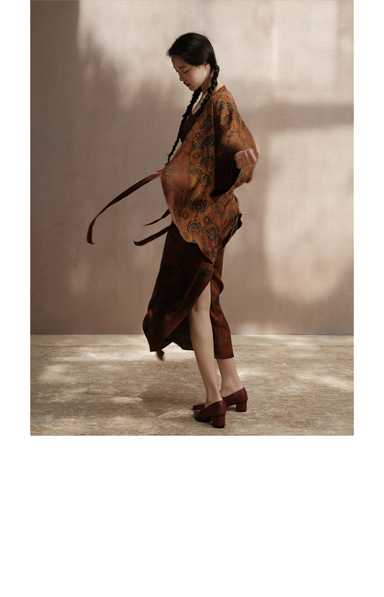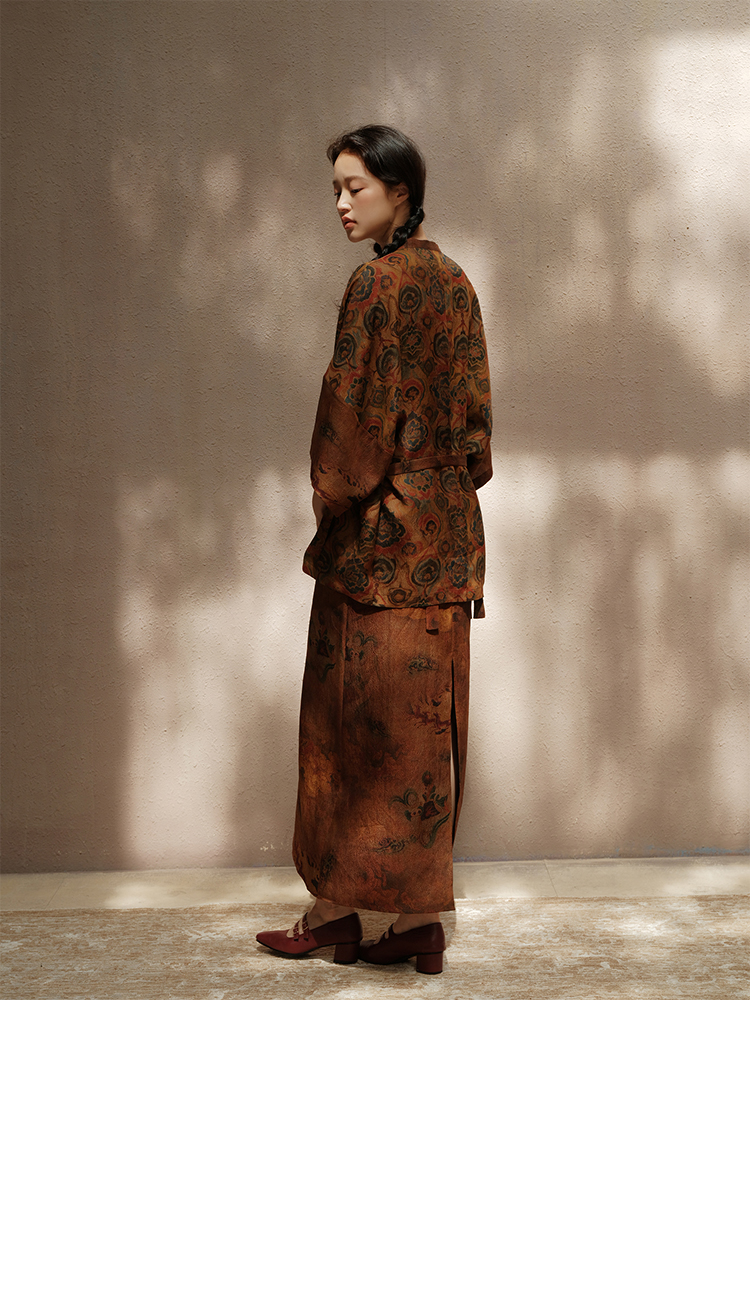 ASAYA3675 Luoshenfu Chinese painting print style coat with overlapping placket and slim fit dress (Sold Seperately)