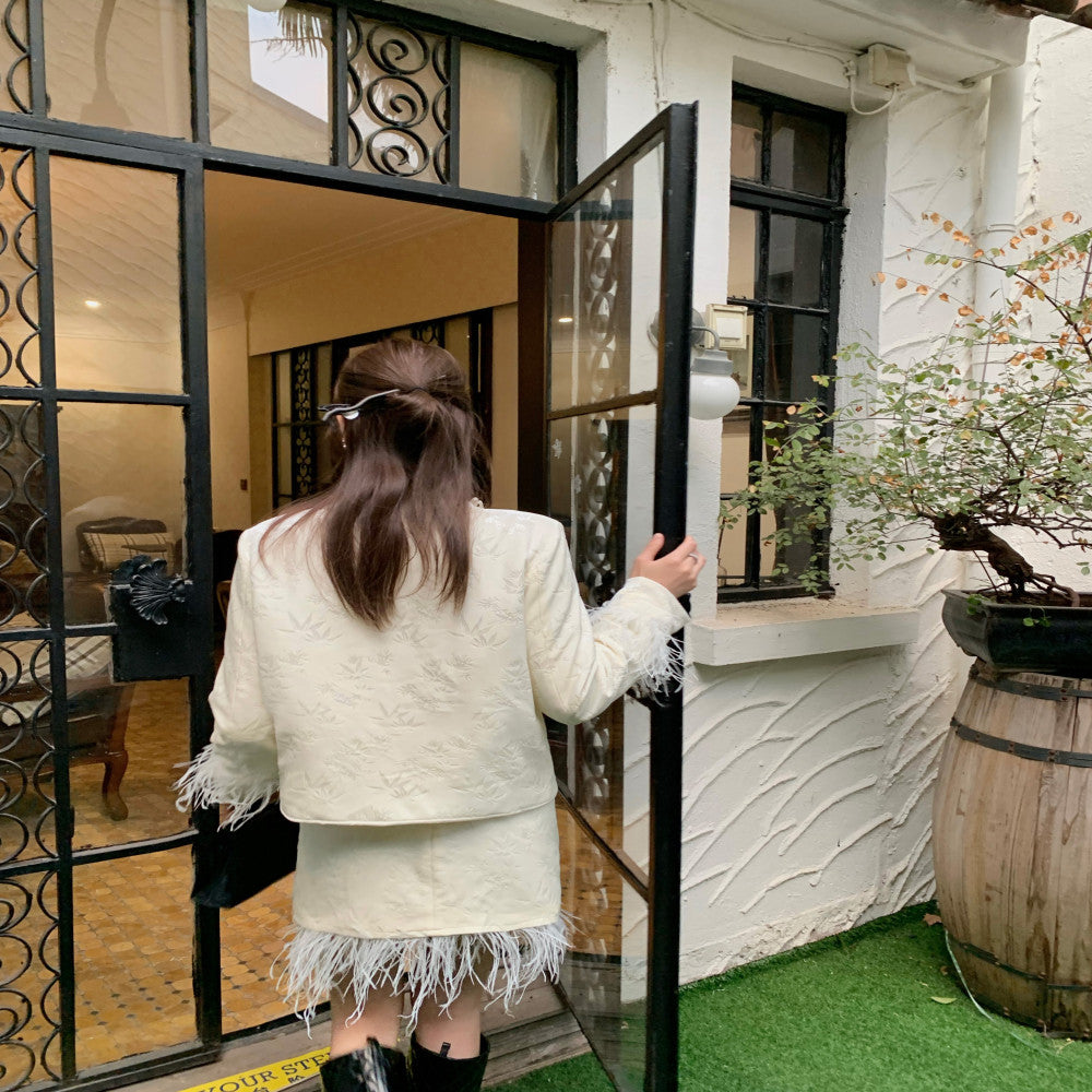 ASAYA4521 - White Feather-Trim Embroidered Jacket 🤍✨
