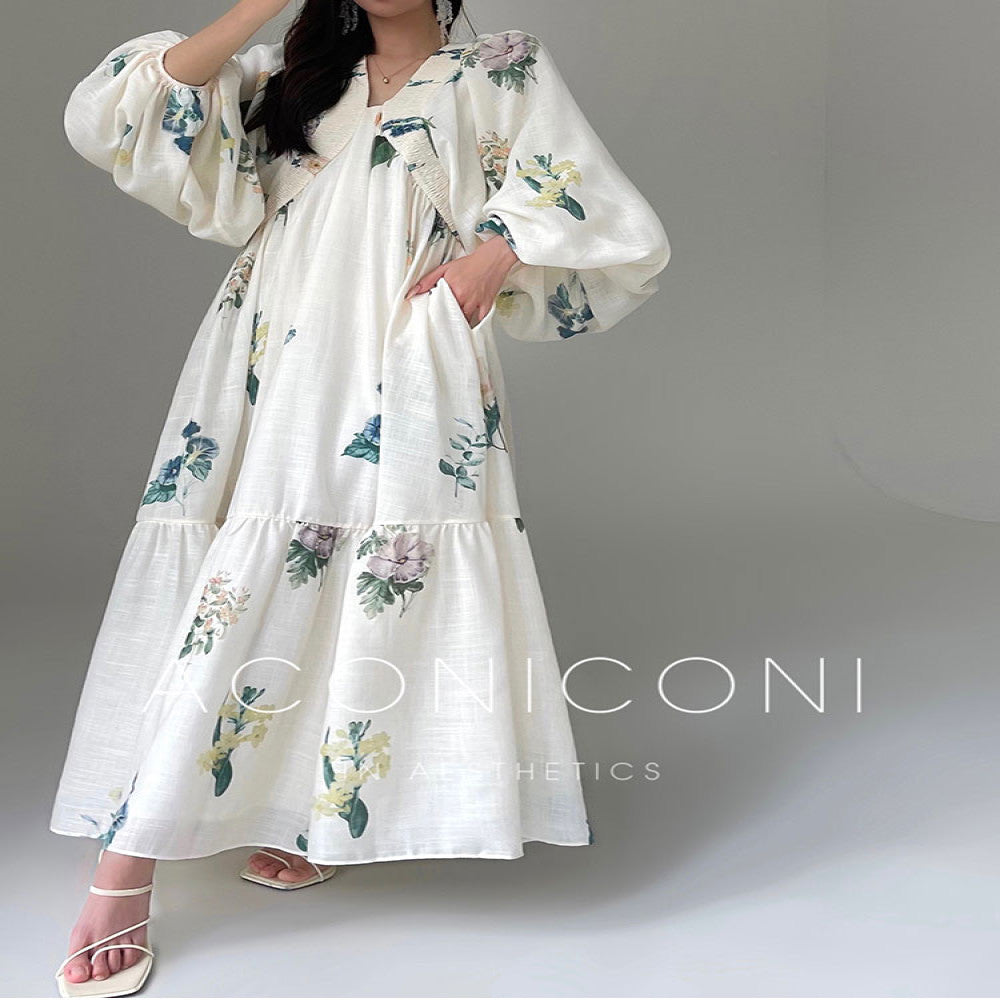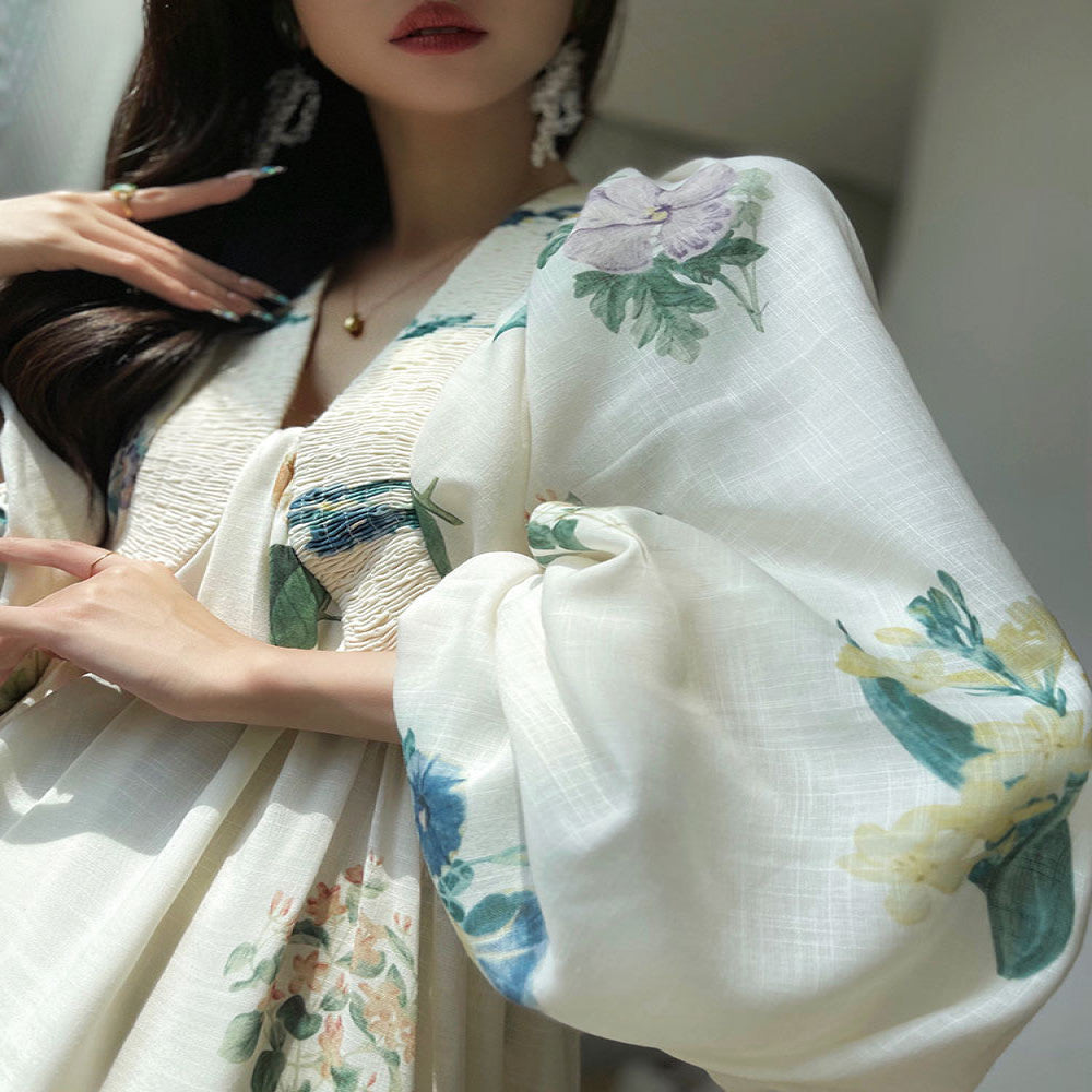 ASAYA3660 Tingting Qingyao French retro printed holiday dress