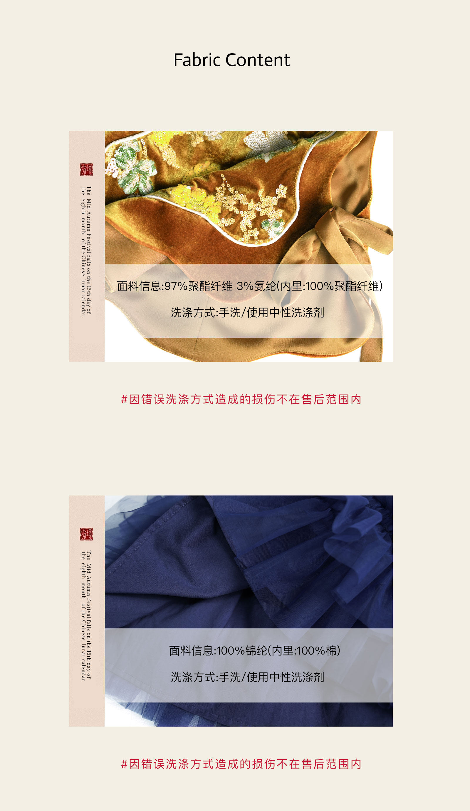 | Material composition | Polyester fiber, polyurethane elastic fiber (spandex), polyamide fiber (nylon), cotton |