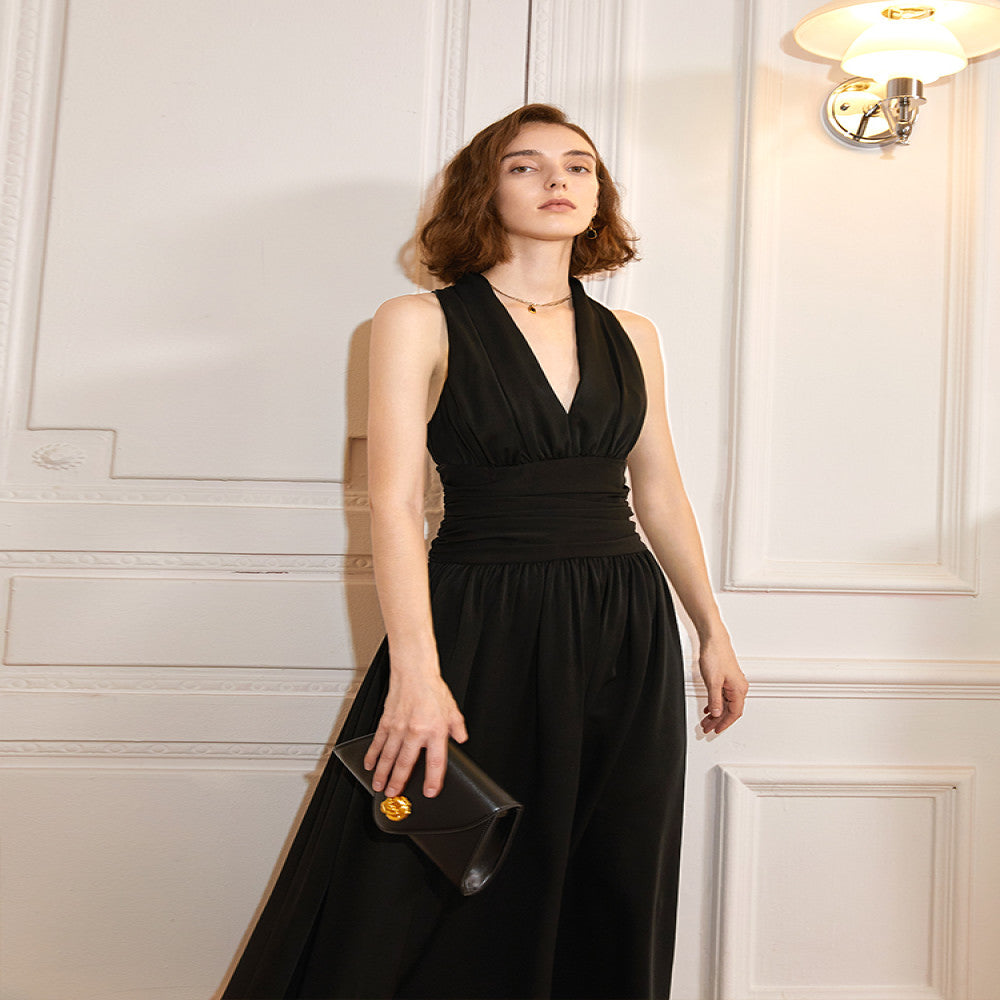 ASAYA3591 French retro Hong Kong style V-neck dress