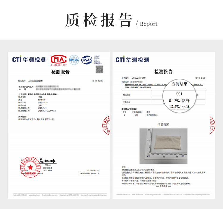 | Material composition | Viscose fiber (viscose) 81.2%, Linen 18.8% |