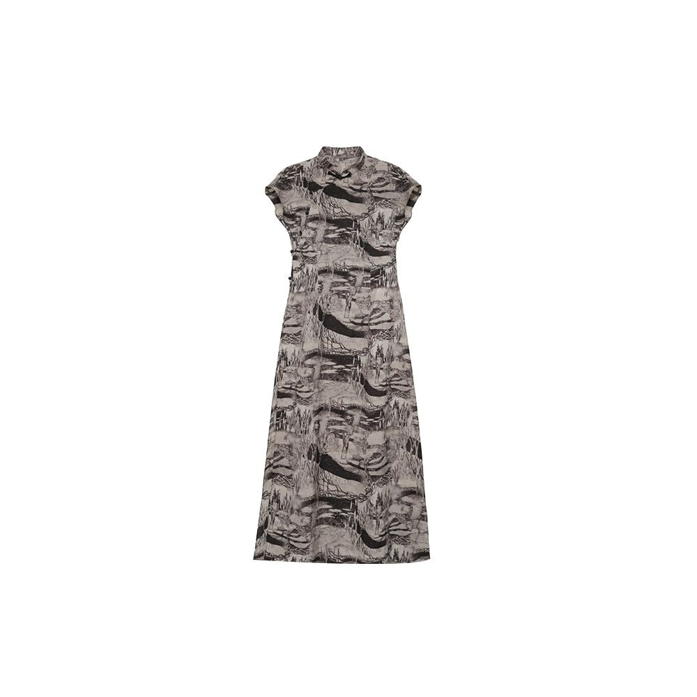 Asaya649- APOZi Ink Mark Series New Chinese style High slit Improved Cheongsam Dress Women s Abstract Printed Retro Long Dress