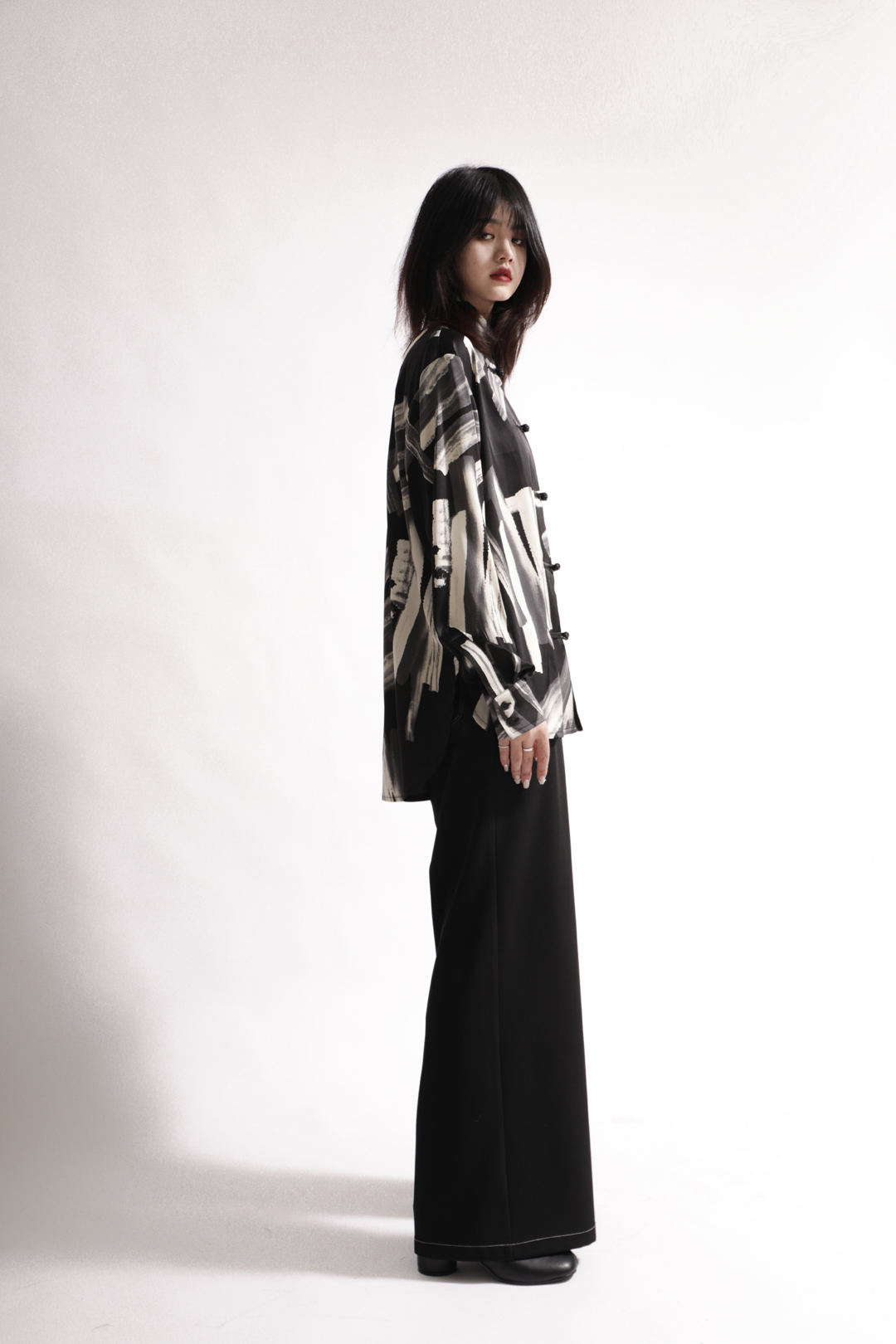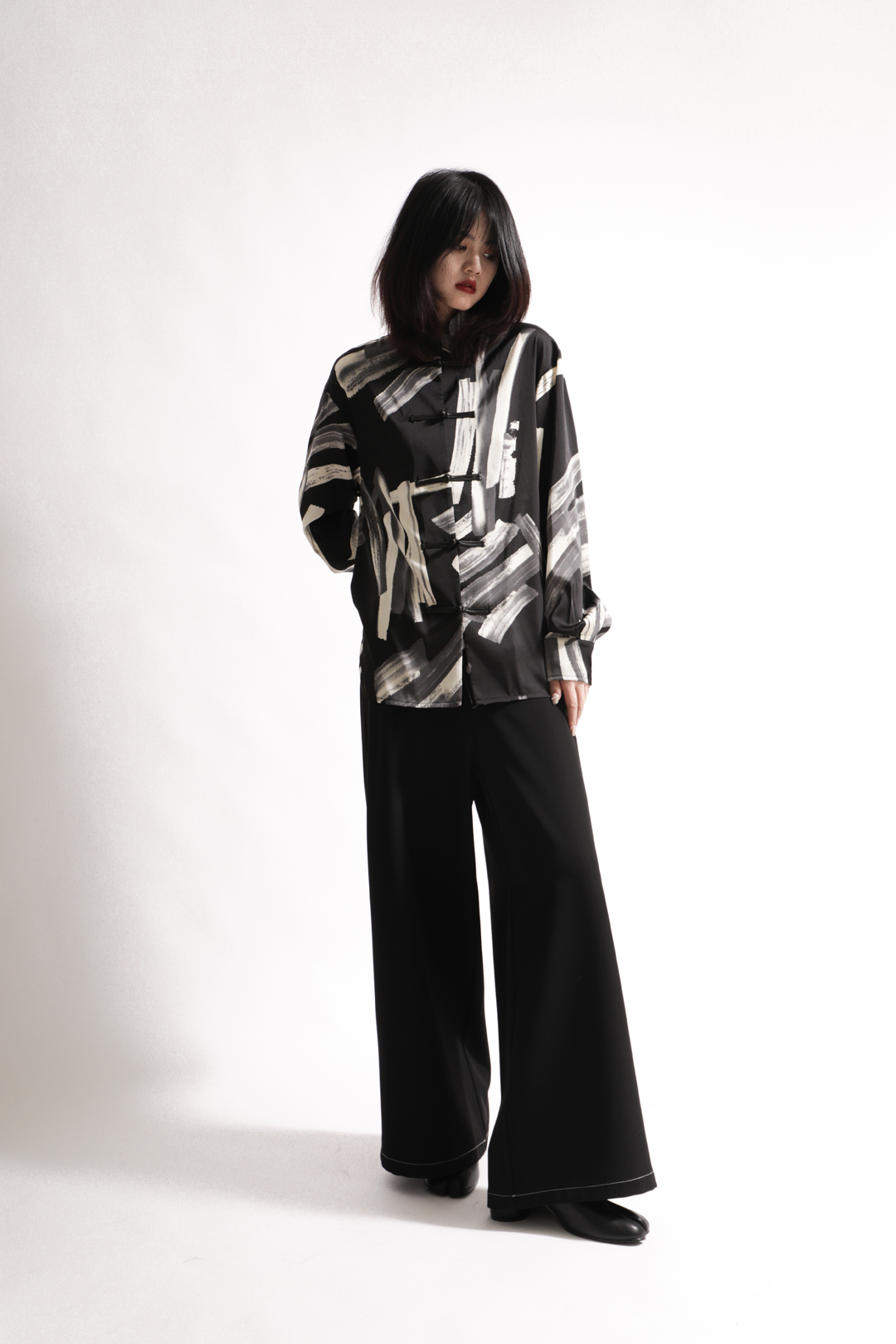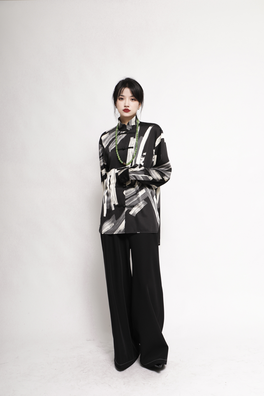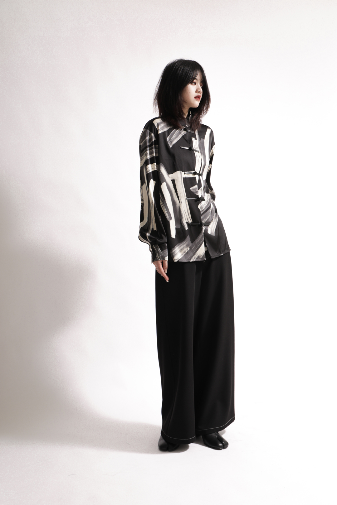 Asaya574 - APOZi textured series unisex new Chinese style printed stand up collar button up shirt for spring and autumn new vintage shirt