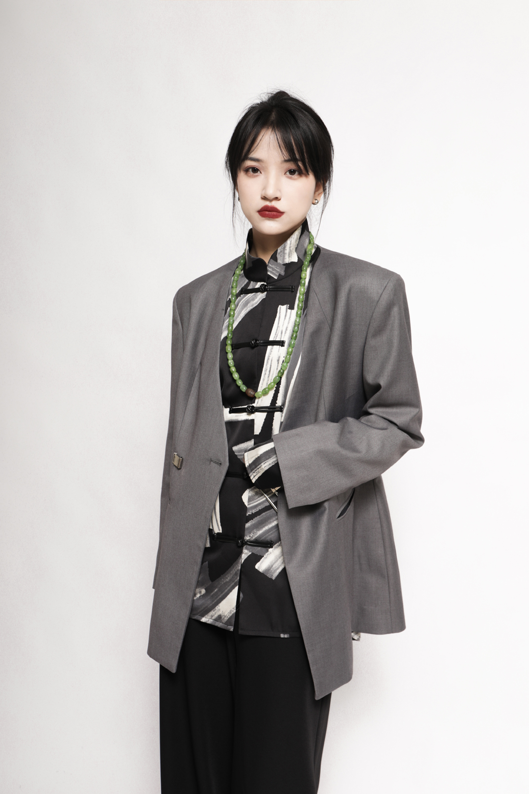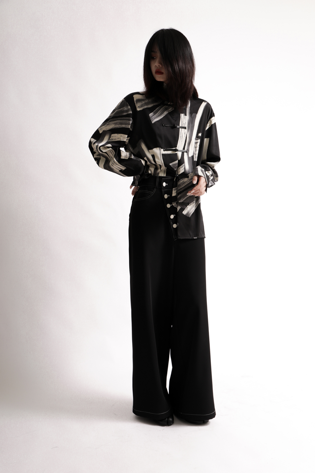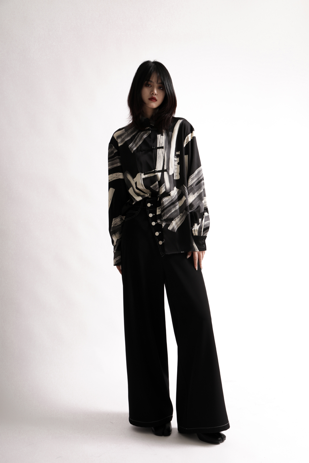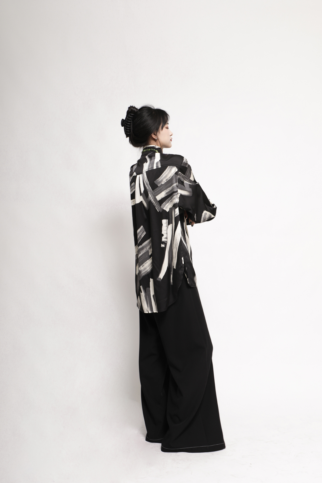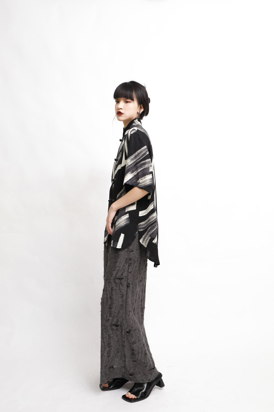Asaya574 - APOZi textured series unisex new Chinese style printed stand up collar button up shirt for spring and autumn new vintage shirt