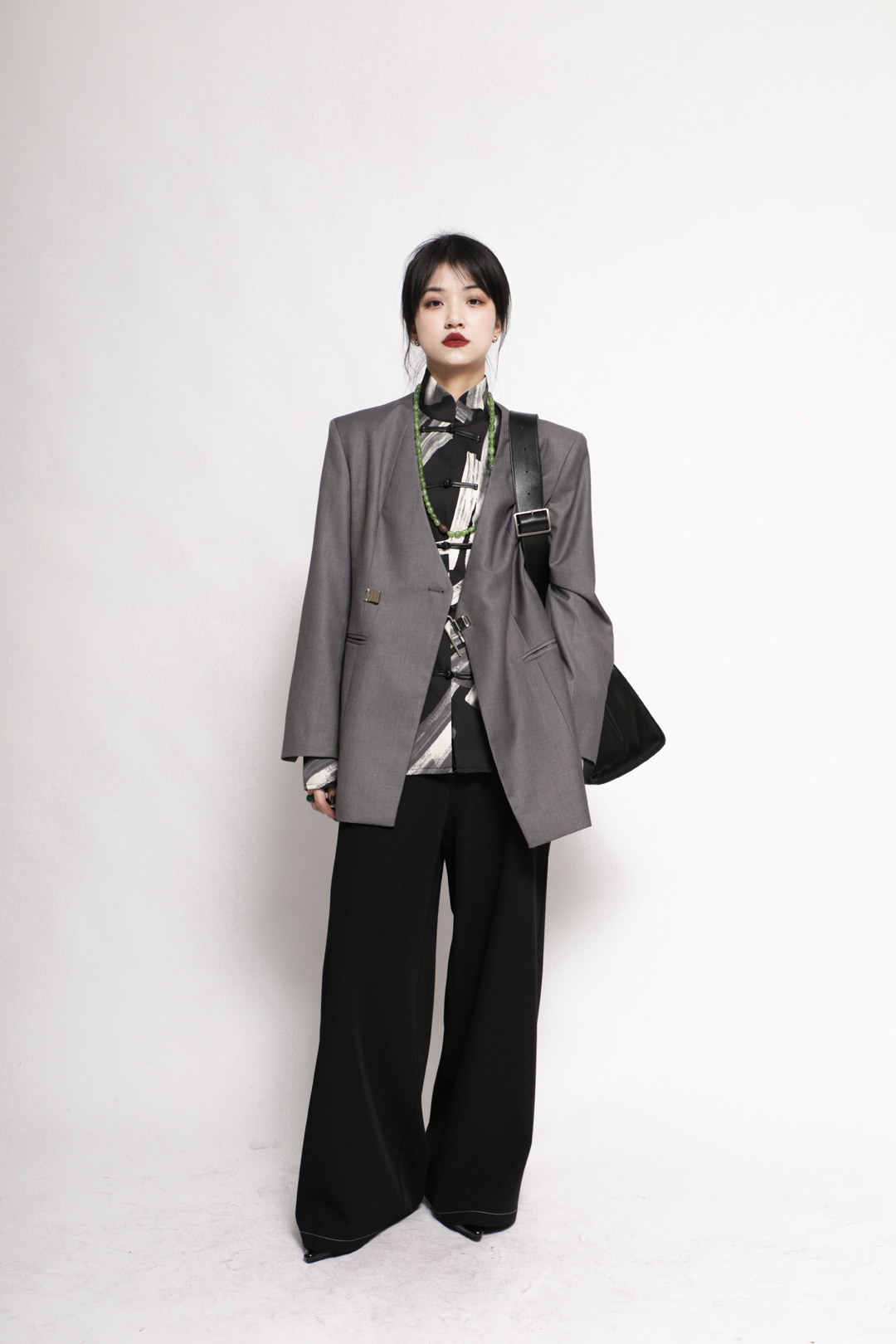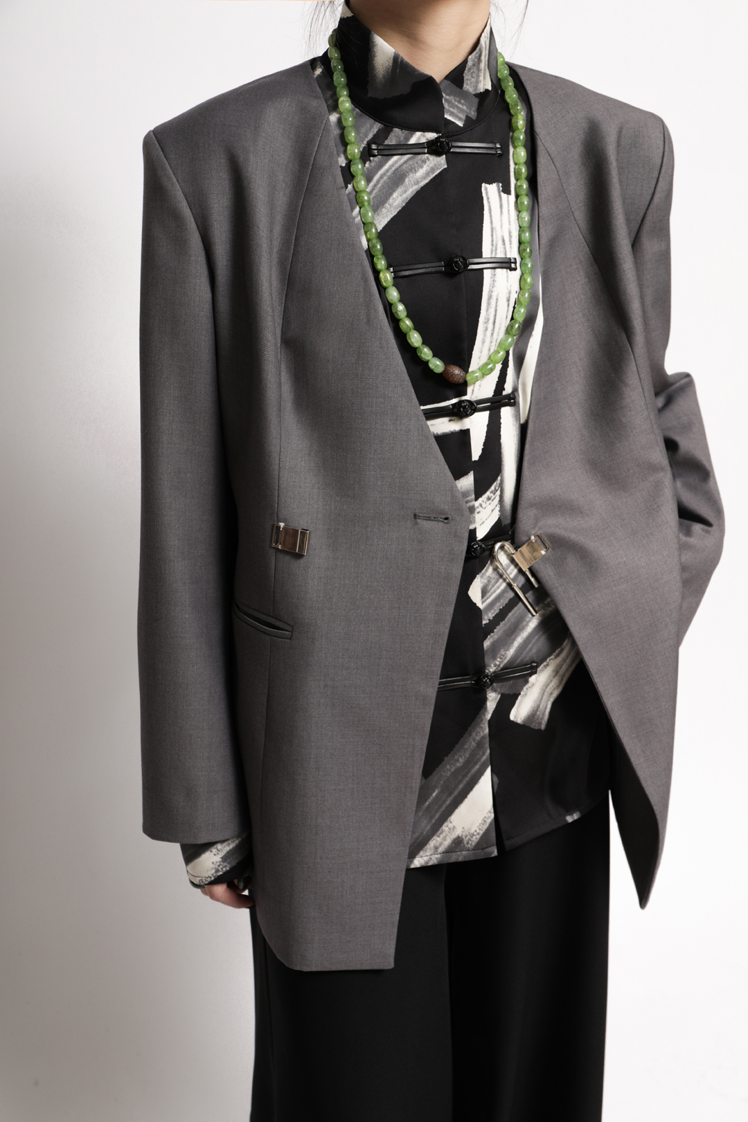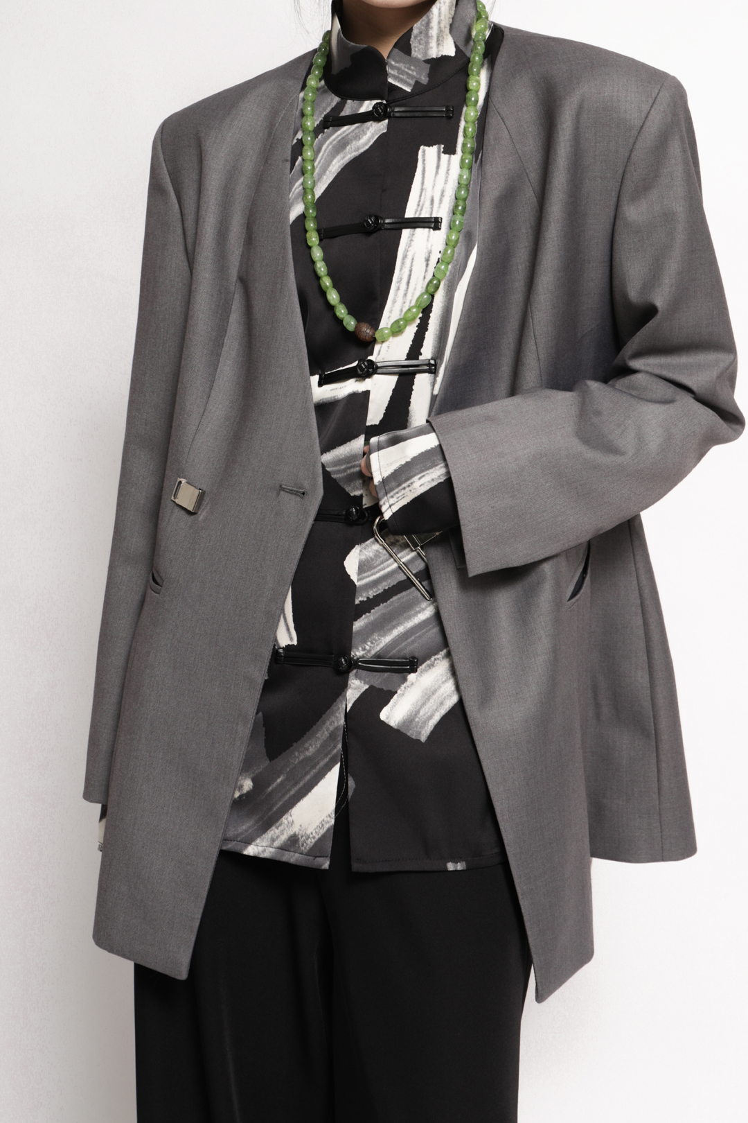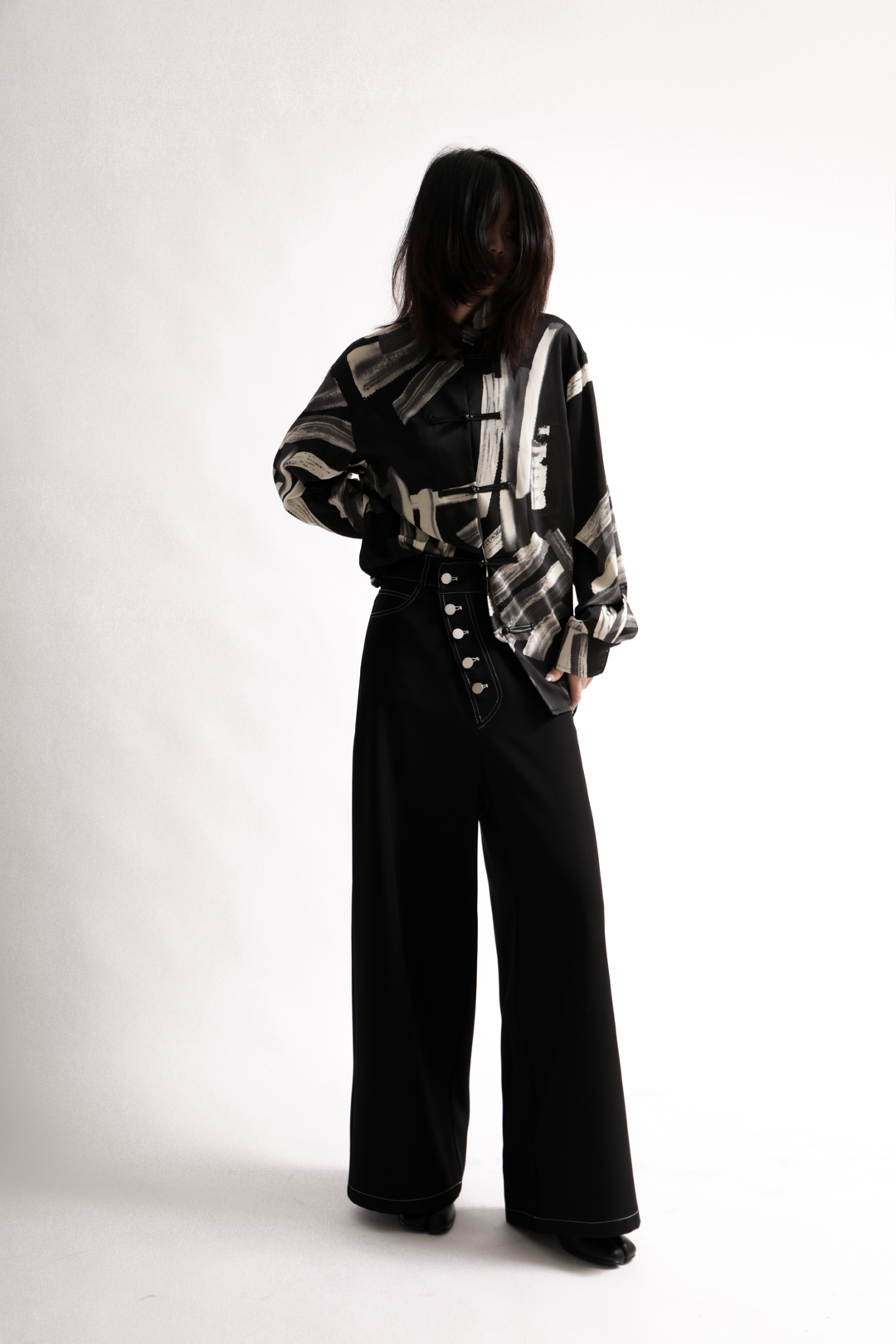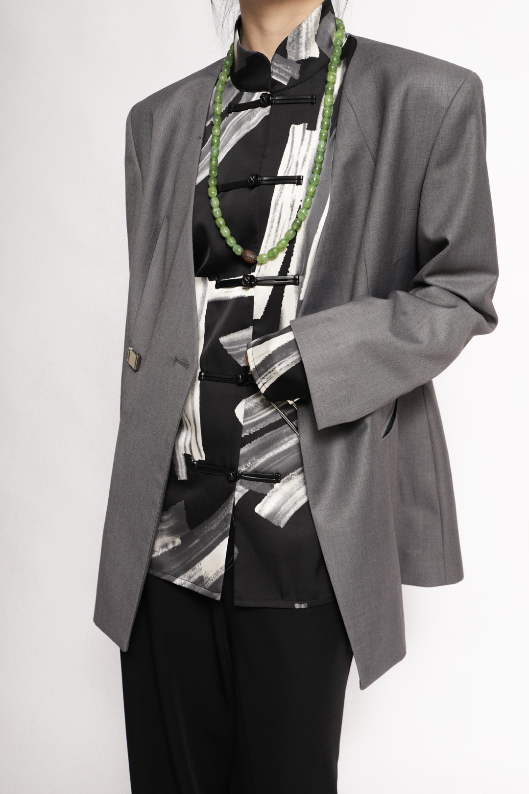 Asaya574 - APOZi textured series unisex new Chinese style printed stand up collar button up shirt for spring and autumn new vintage shirt