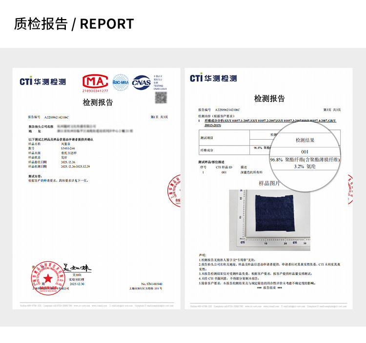 | Material composition | 聚酯纤维96.8% 聚氨酯弹性纤维(氨纶).% |