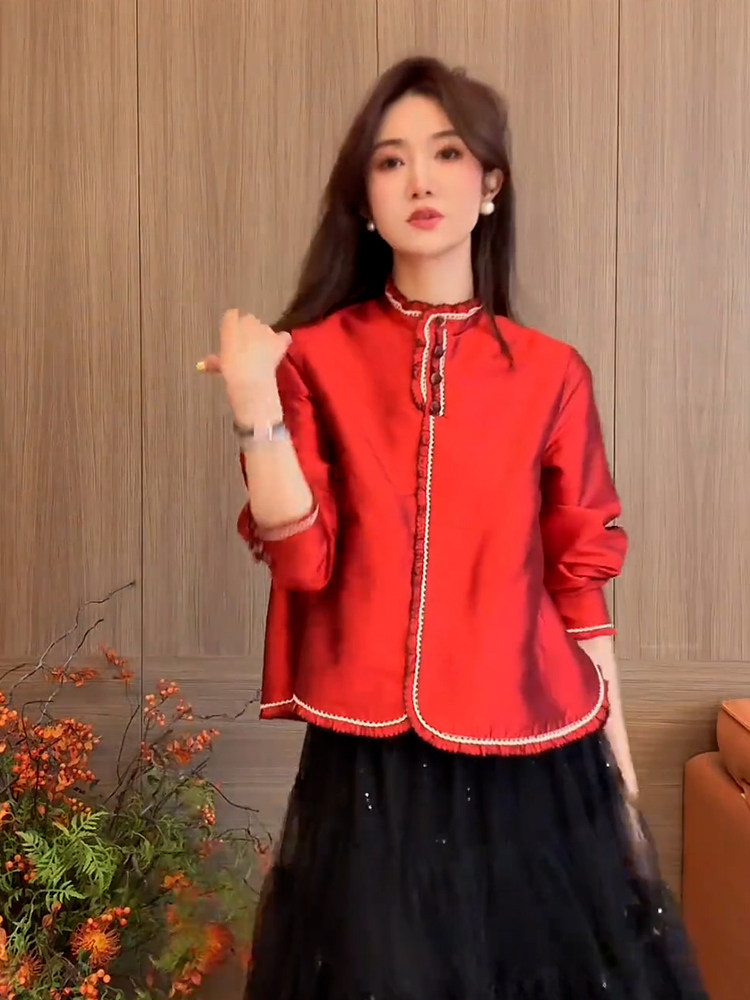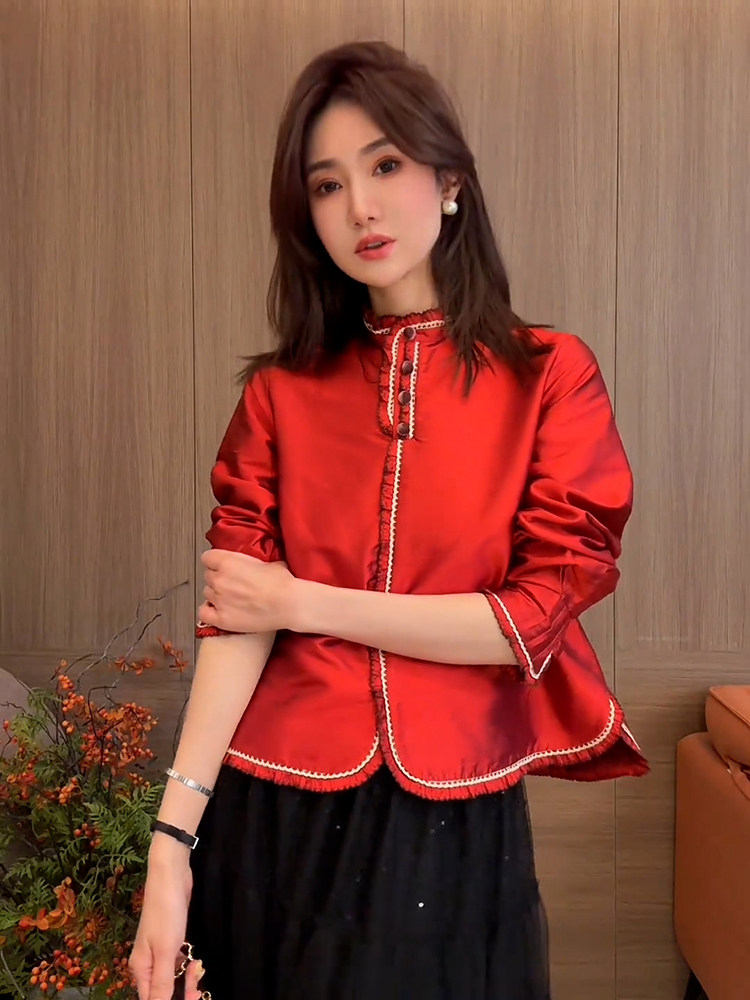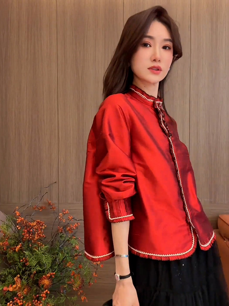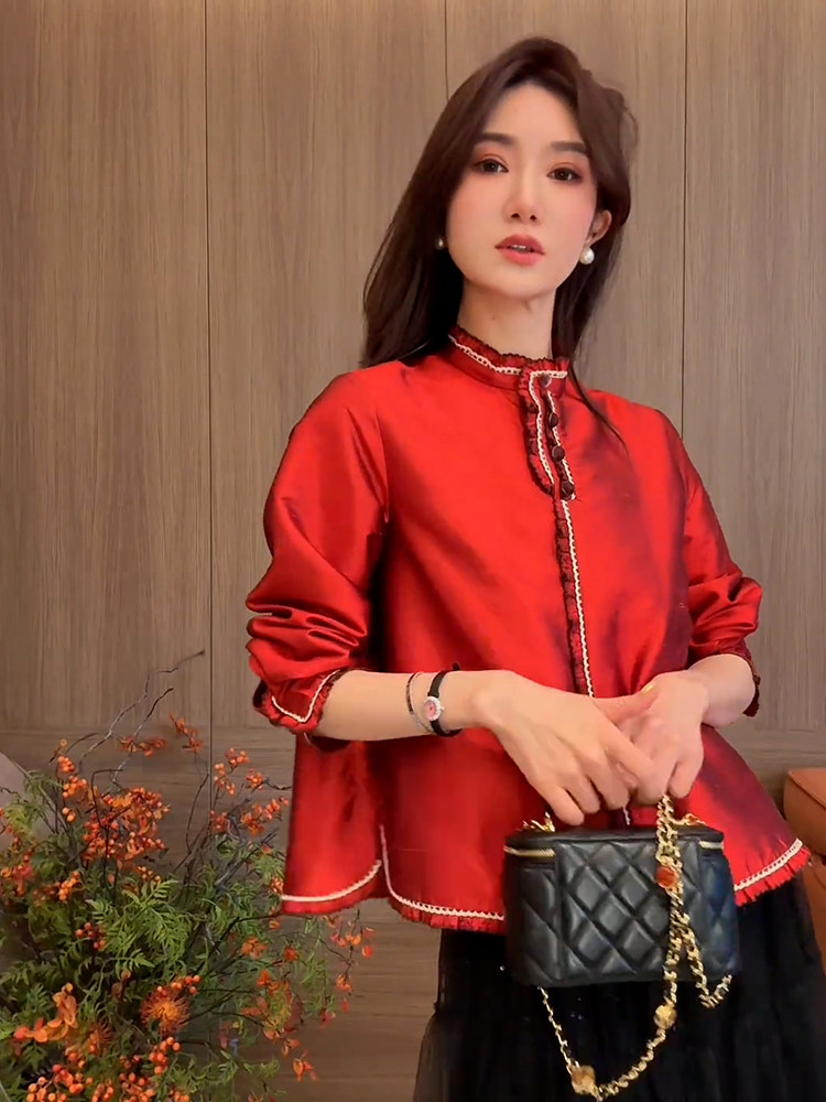 | color classification | Red shirt for spring 2025 new style, popular this year, beautiful temperament, small shirt, light luxury, high-end feeling, western-style, anti-aging, fairy like, floating top, unique and exquisite top, super beautiful and charming silk acetate satin shirt with various styles |
