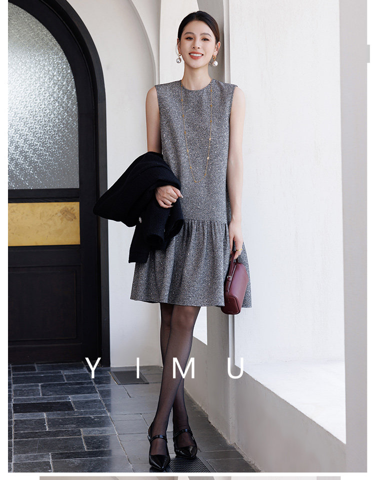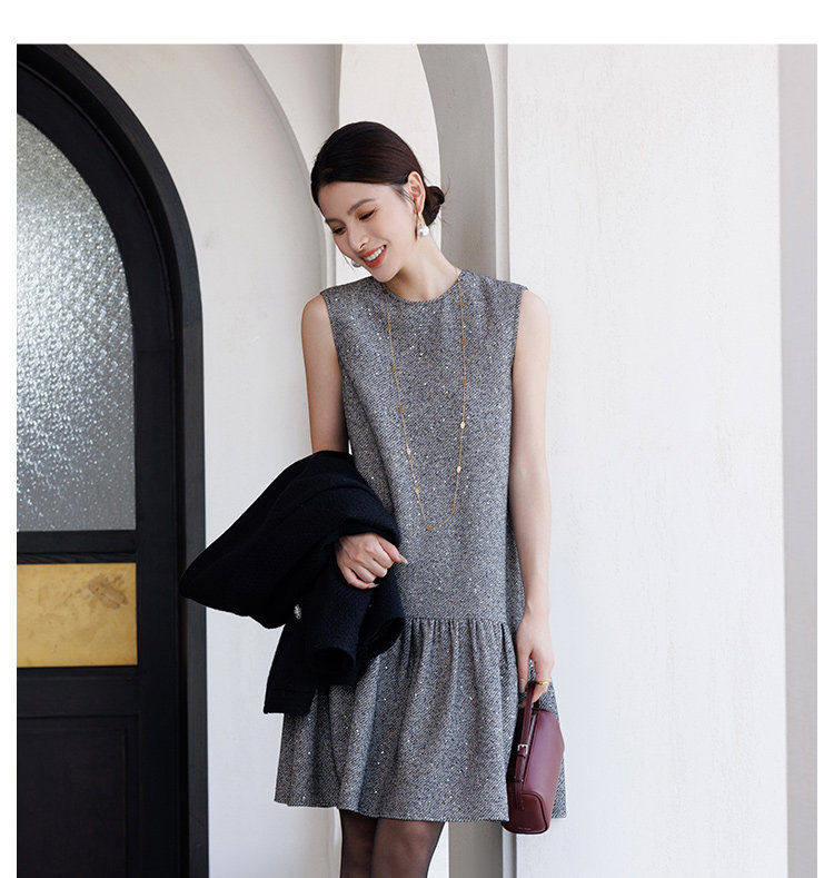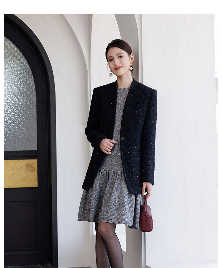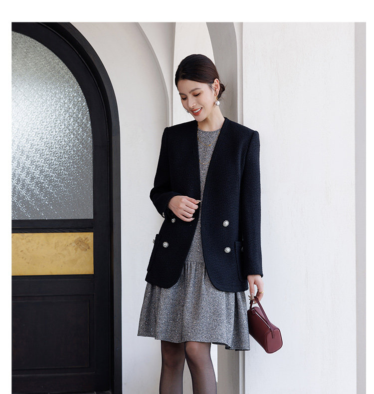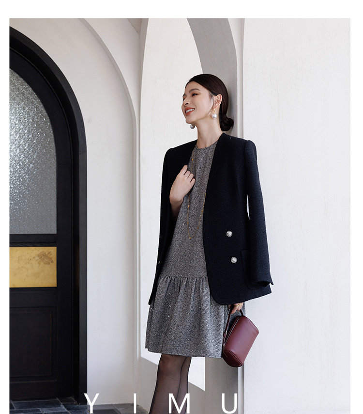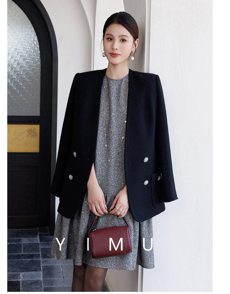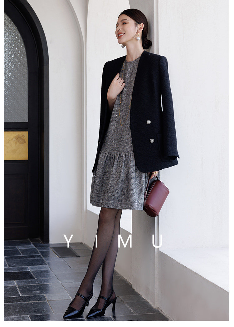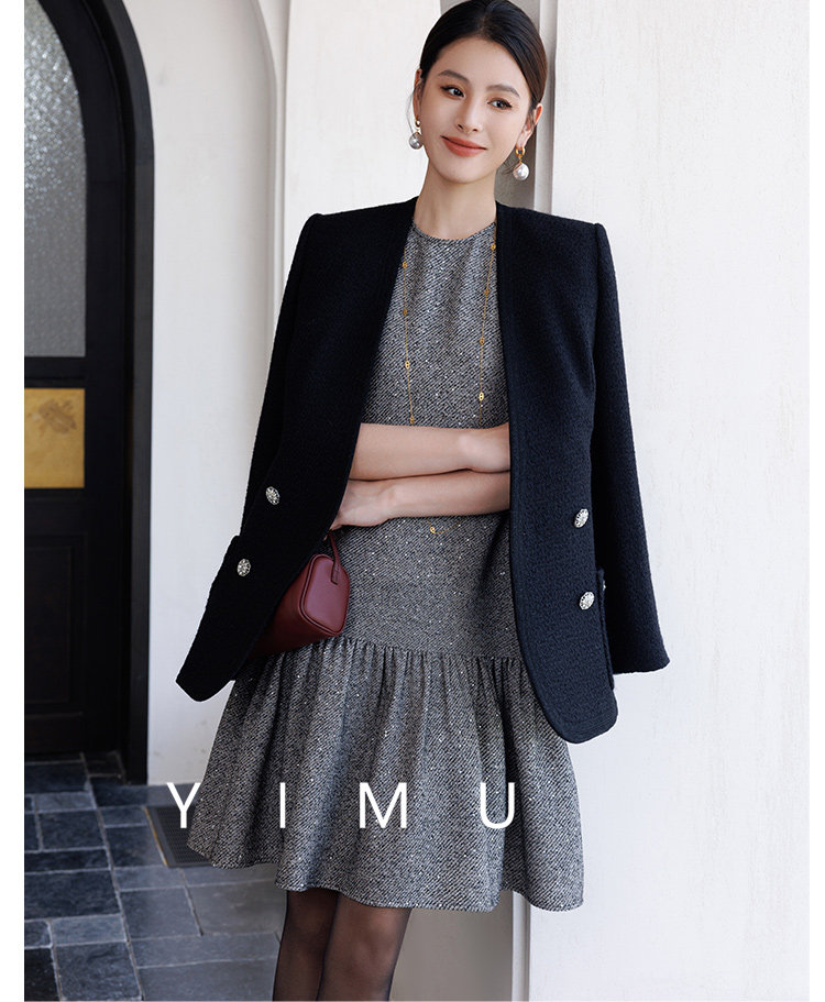 ASAYA5261 – Midnight Tweed Elegance Dress 🌙✨
