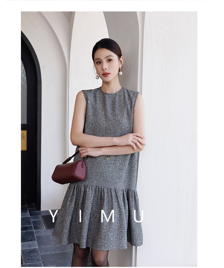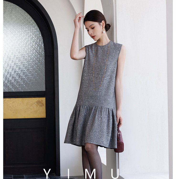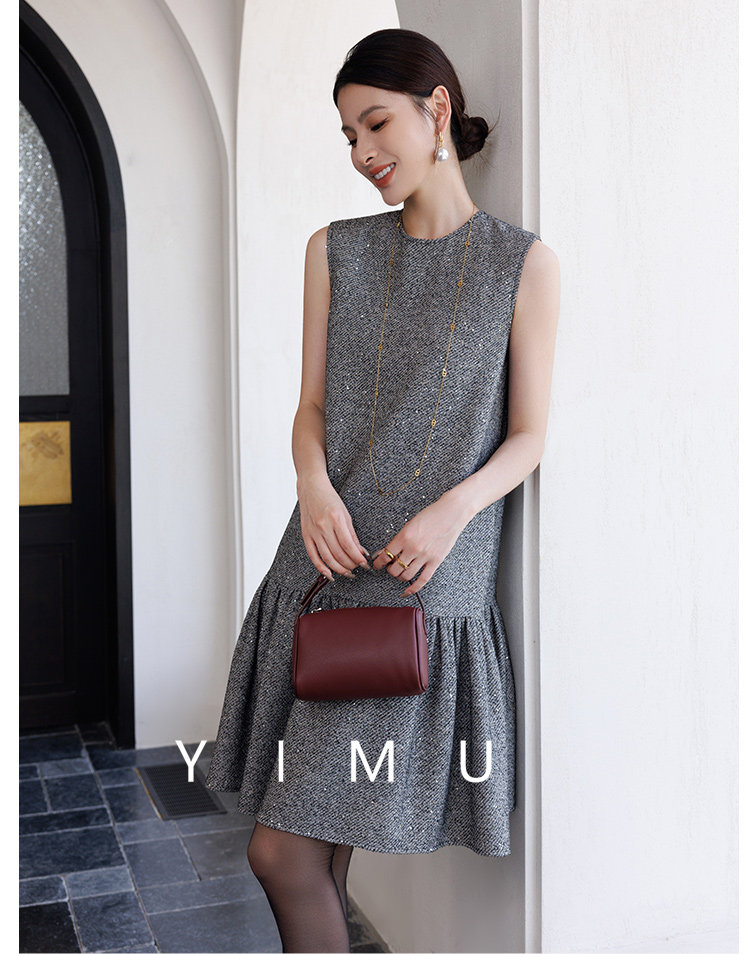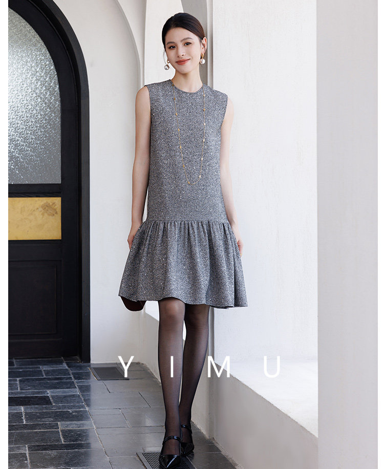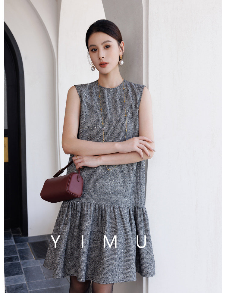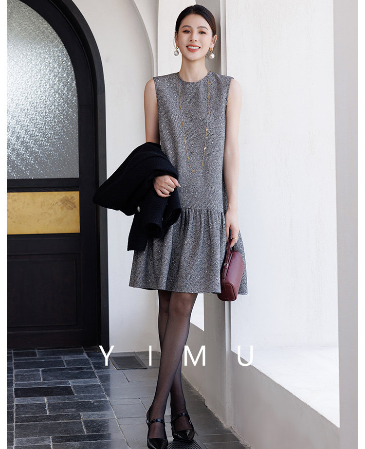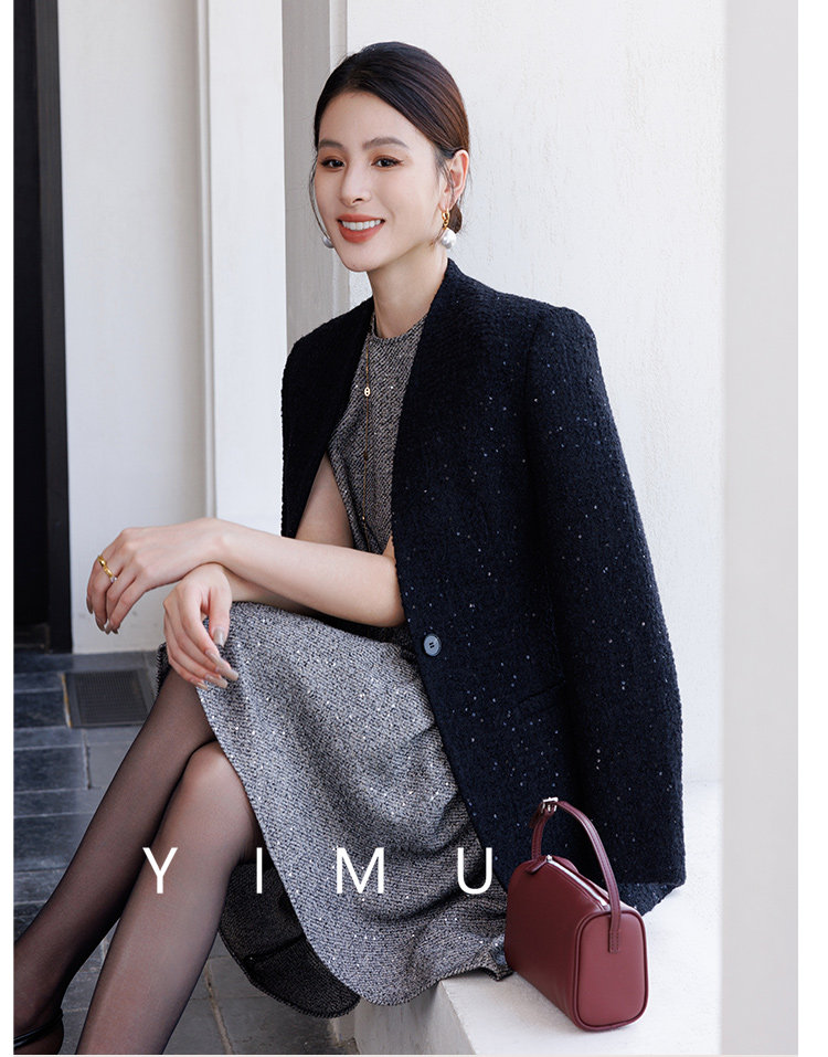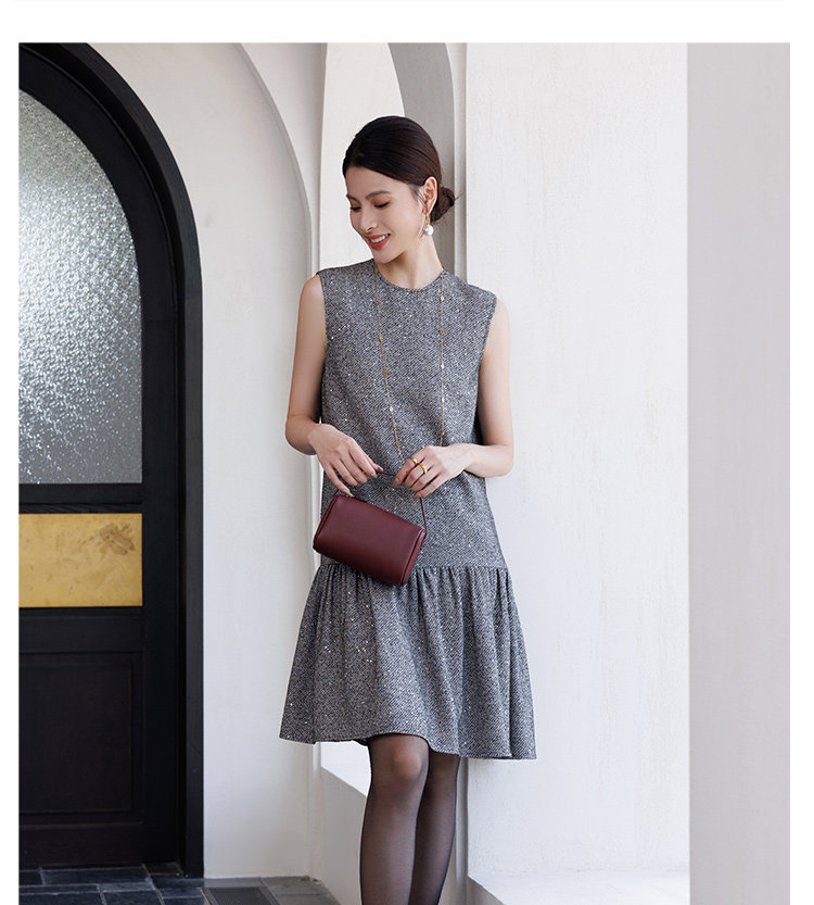 ASAYA5261 – Midnight Tweed Elegance Dress 🌙✨