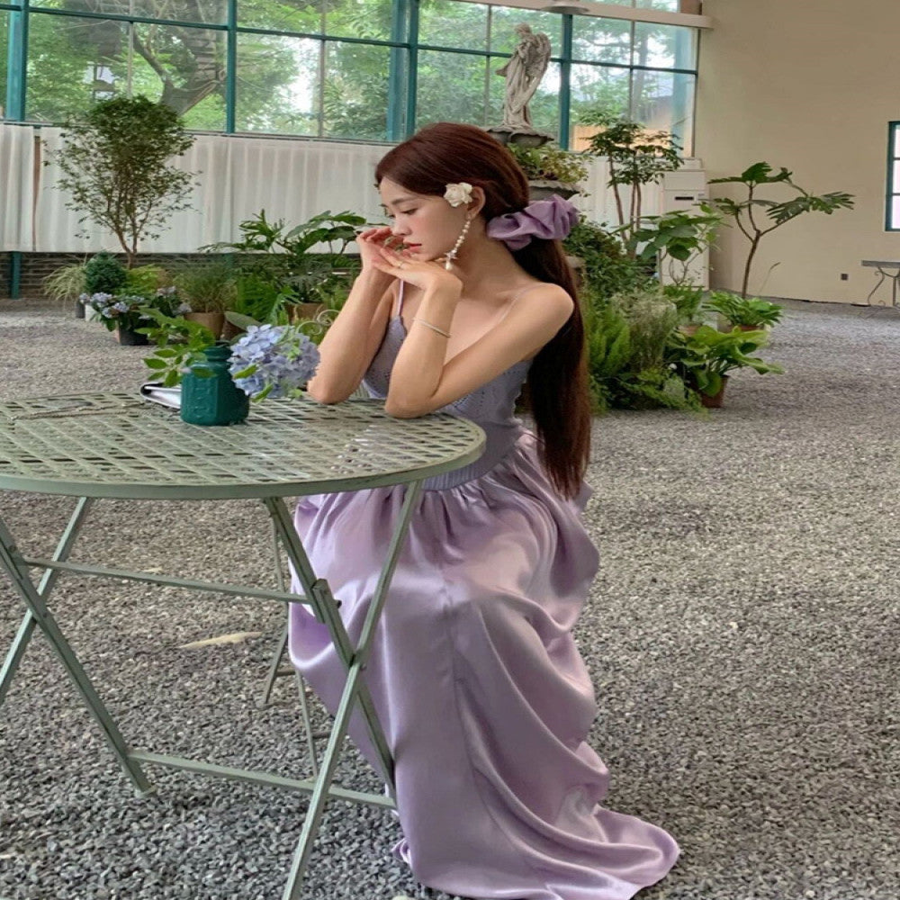 ASAYA2776 High-end light luxury niche party adult ceremony purple knitted splicing suspender dress