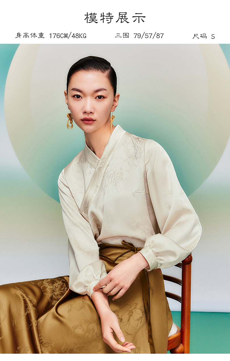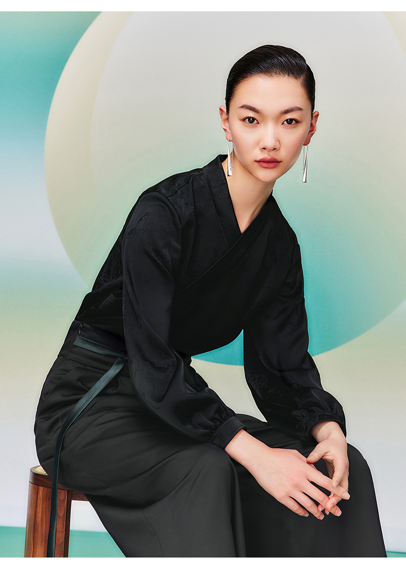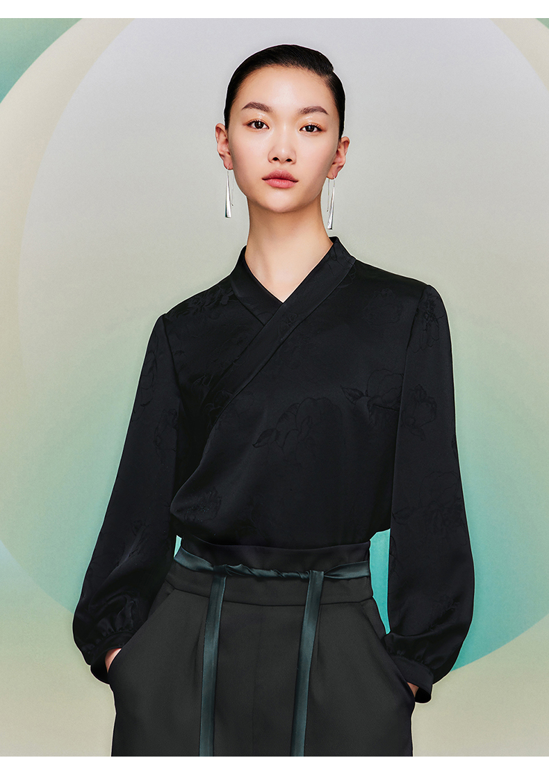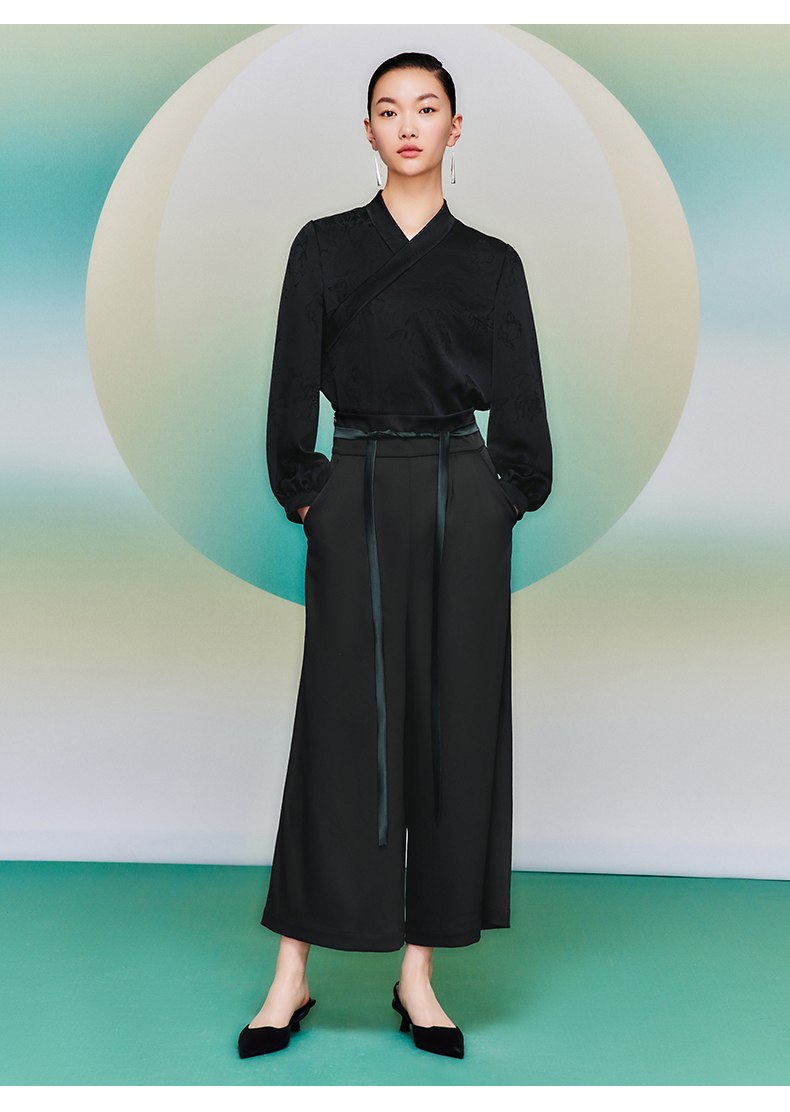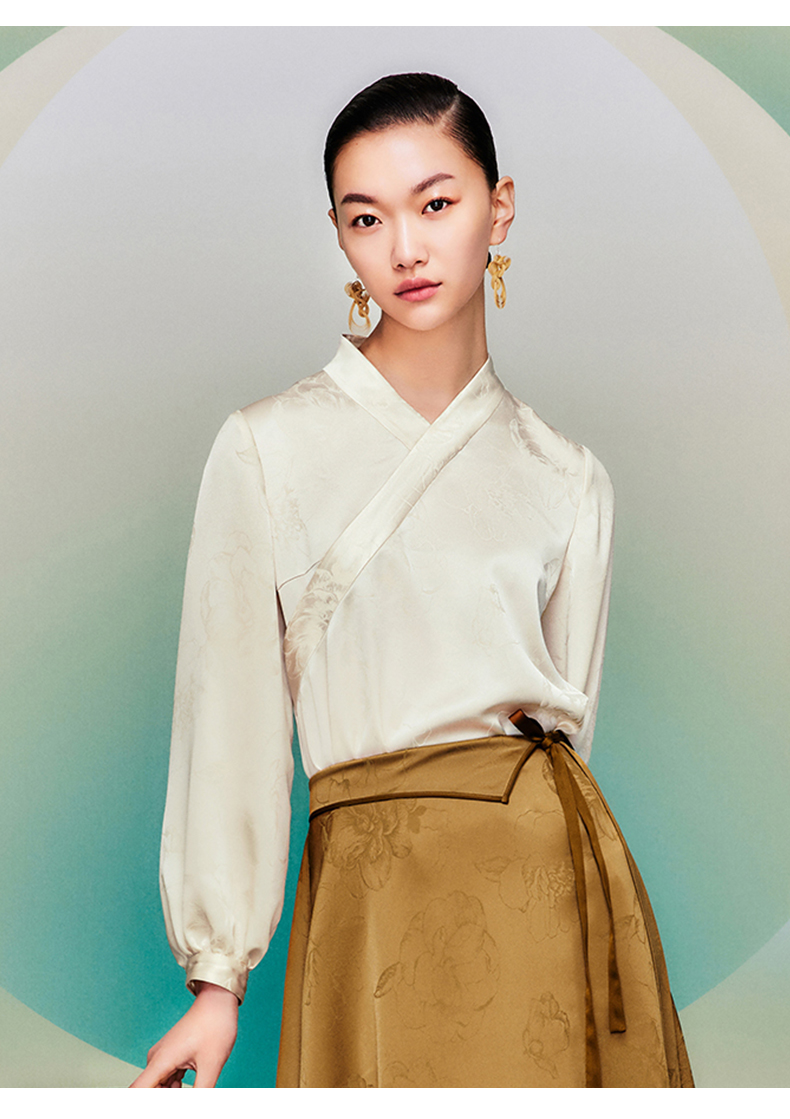 Asaya991 - Celebrity Style Huamu Shen New Chinese Style Acetate Jacquard Top Improved Hanfu Tea Suit Cross Collar Slant Lapel Bottom