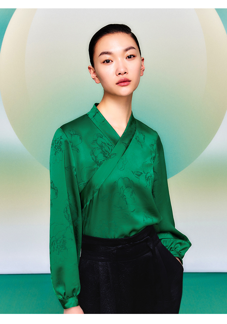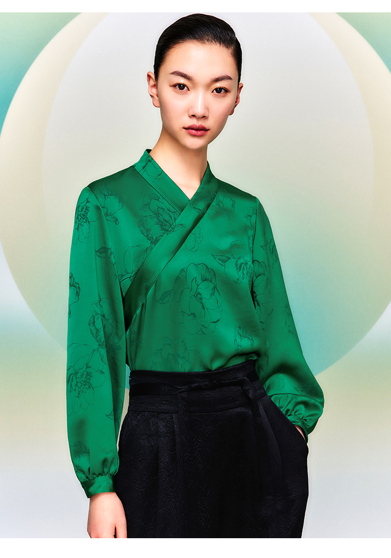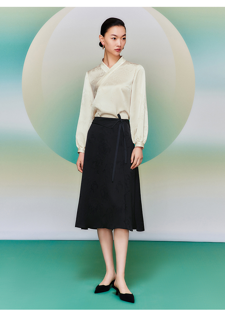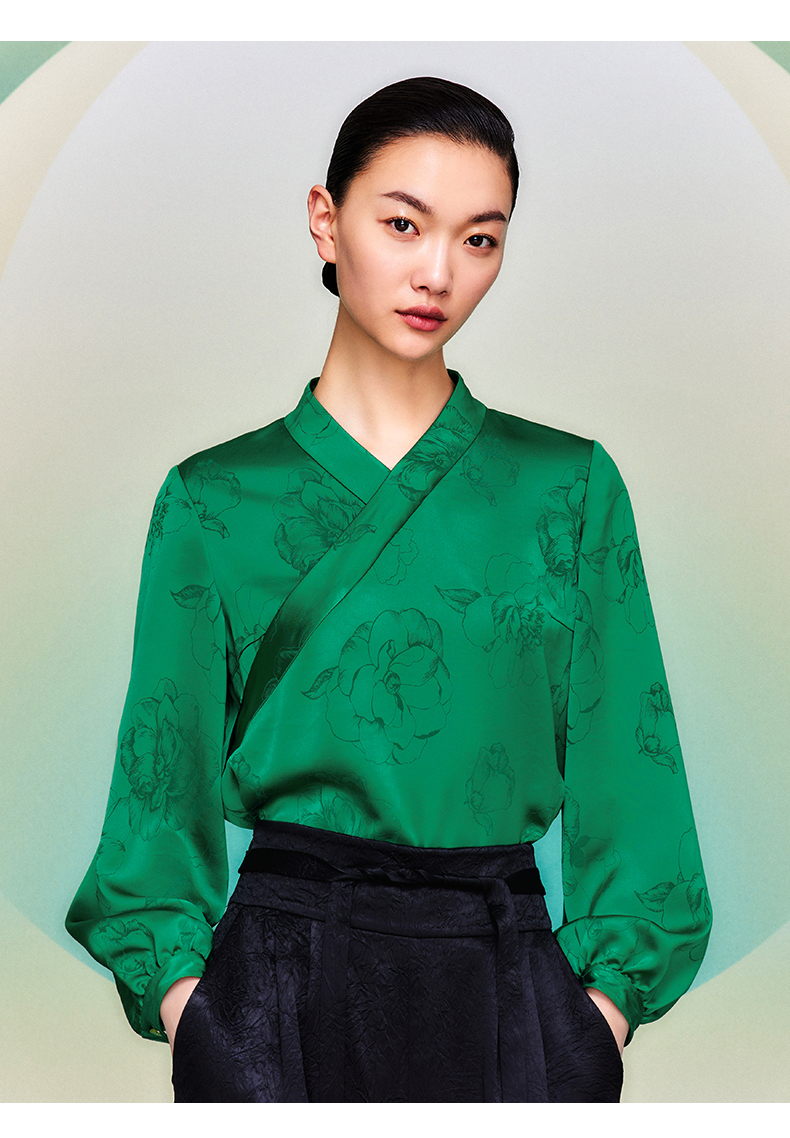 Asaya991 - Celebrity Style Huamu Shen New Chinese Style Acetate Jacquard Top Improved Hanfu Tea Suit Cross Collar Slant Lapel Bottom