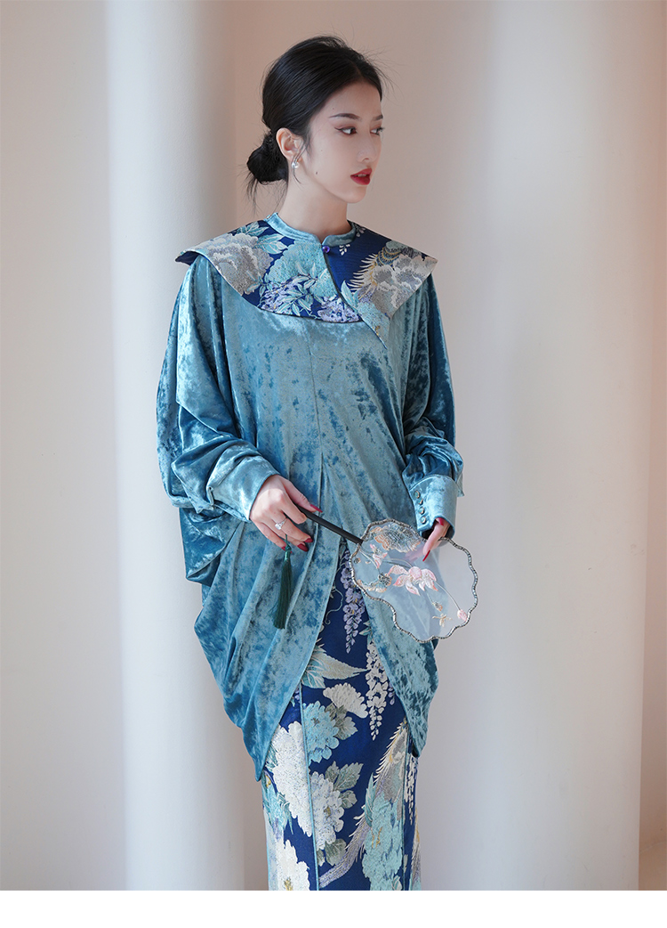 ASAYA3163 Chengyu Haute Couture [Feifeng Jinglan] New Chinese style gold velvet top jacquard vest skirt three-piece set