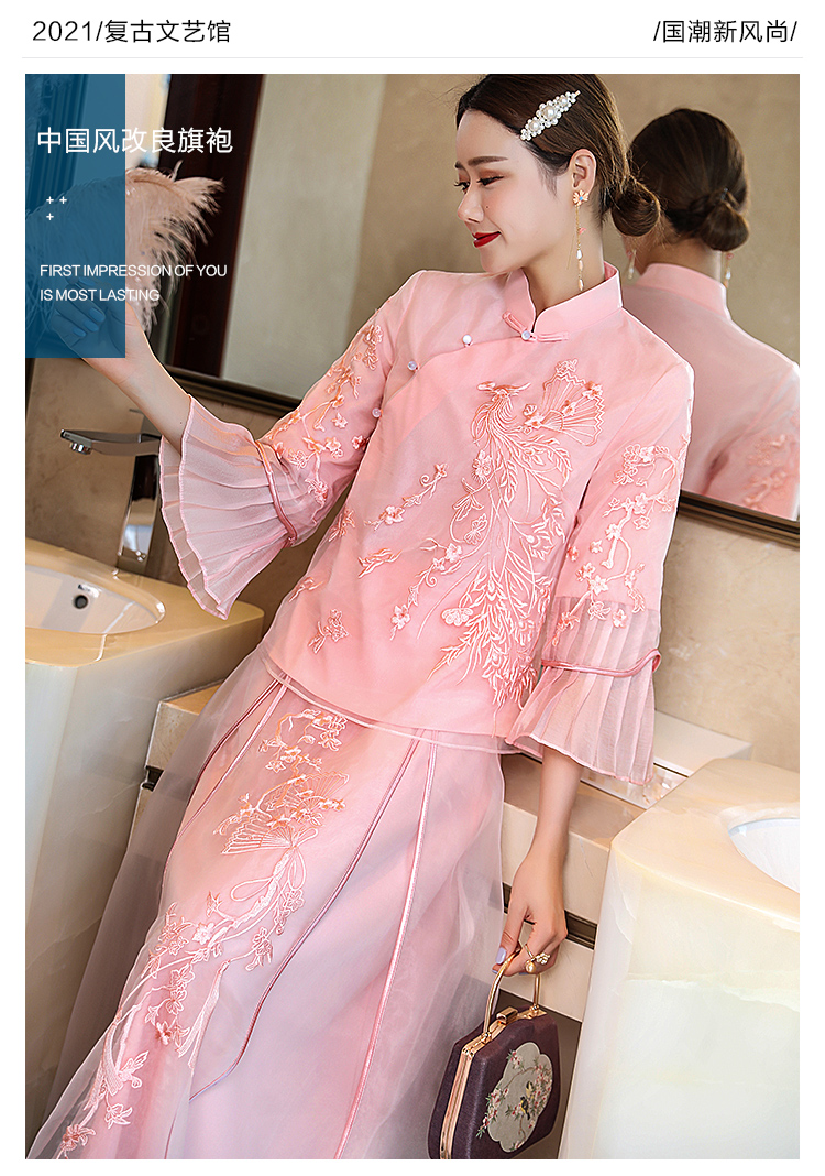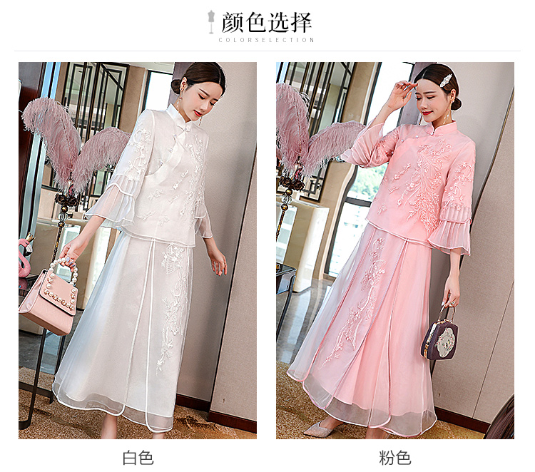 Asaya546 - Cheongsam young Tang suit two piece set Hanfu women s Chinese style summer retro top Zen tea suit fairy atmosphere