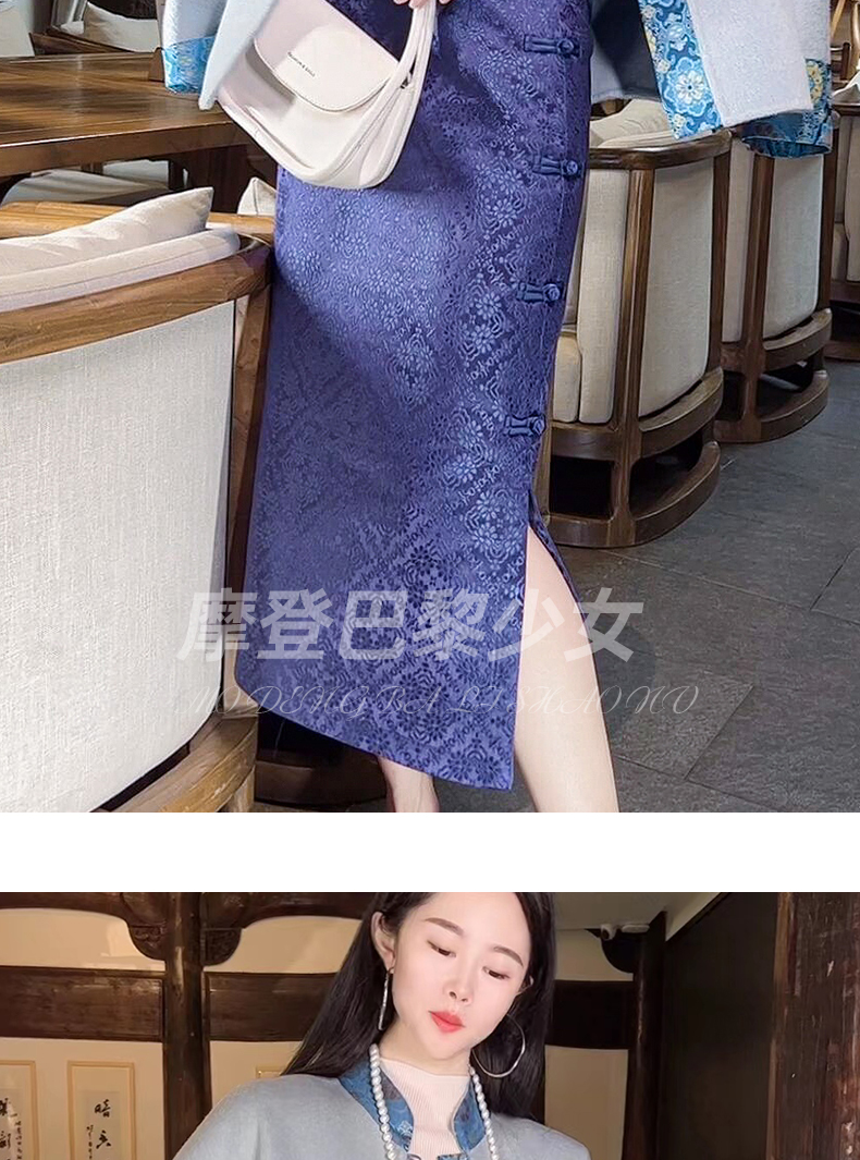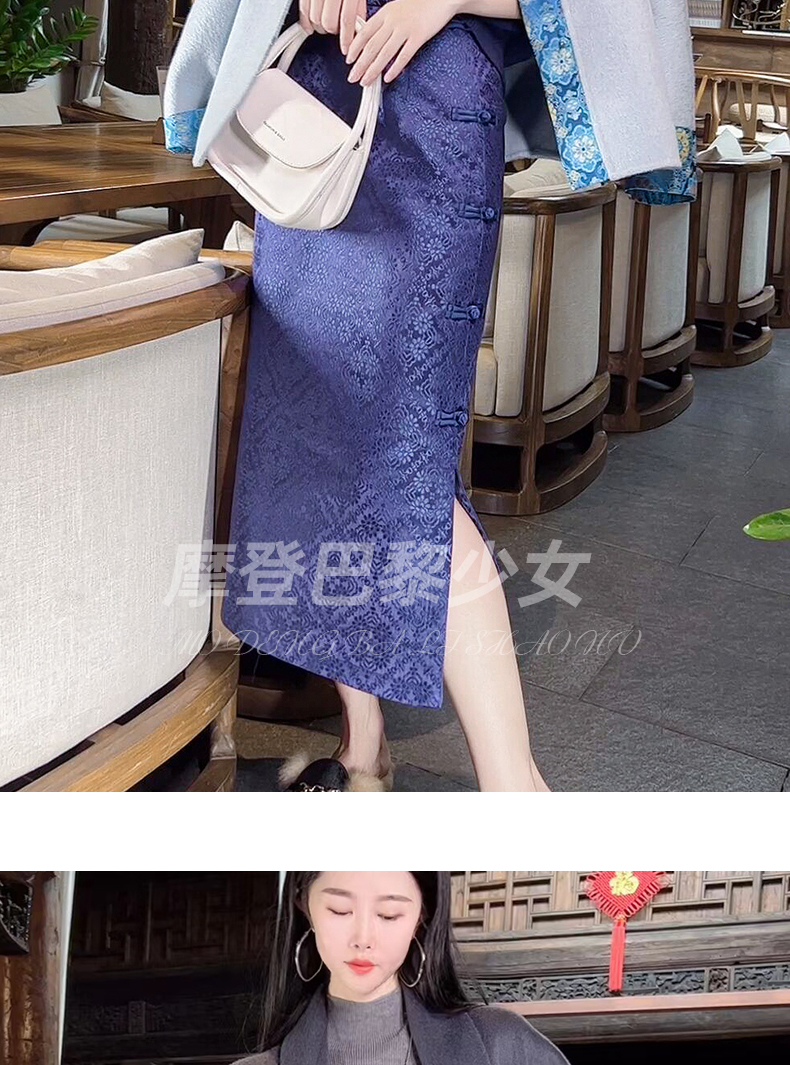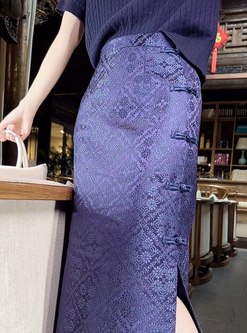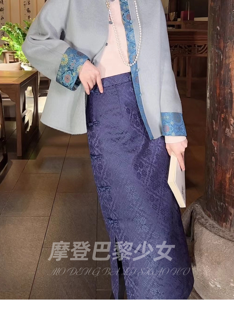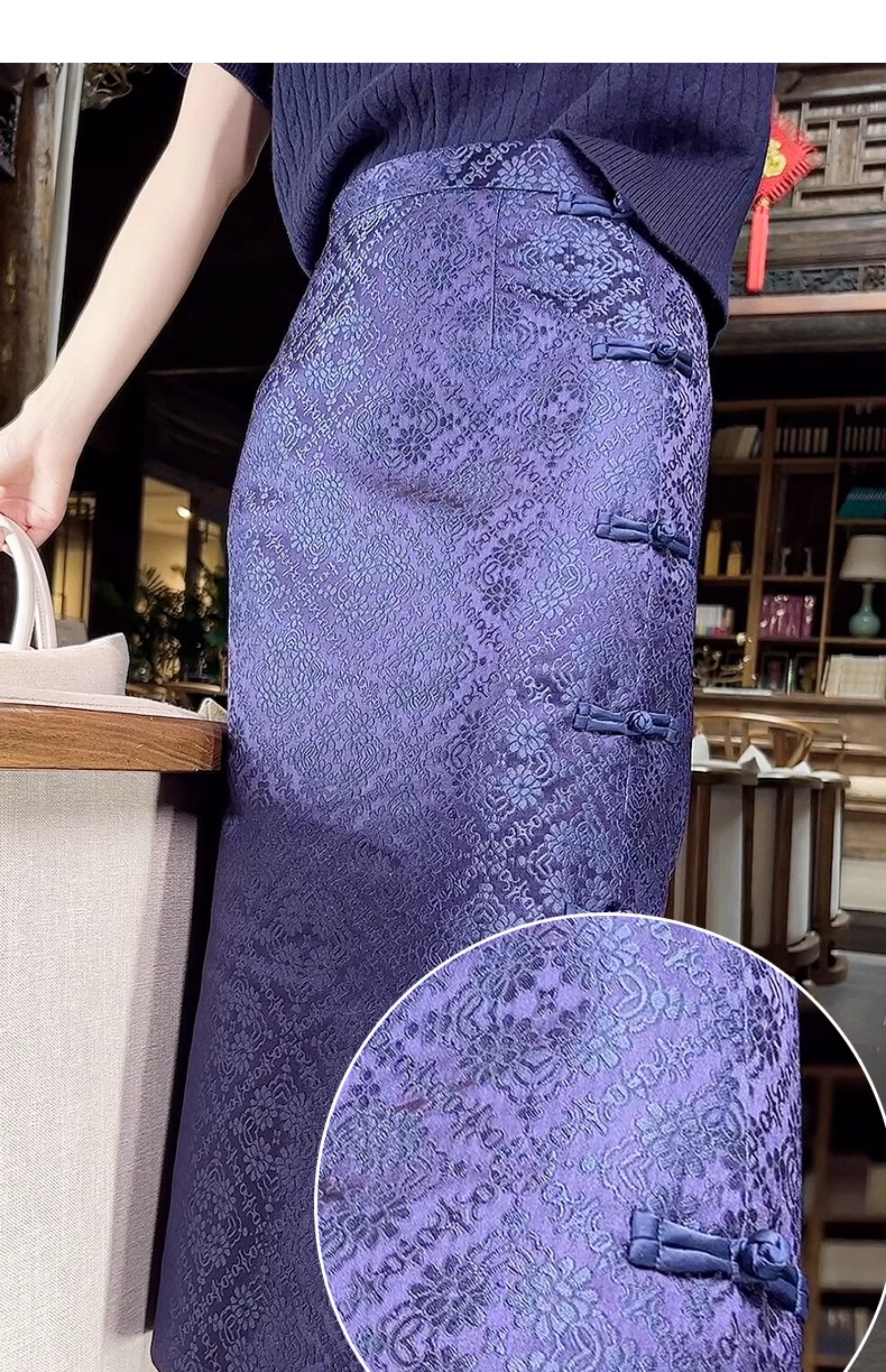 ASAYA2753 Early Spring Retro High Waist Slit Jacquard Hip Cover Skirt