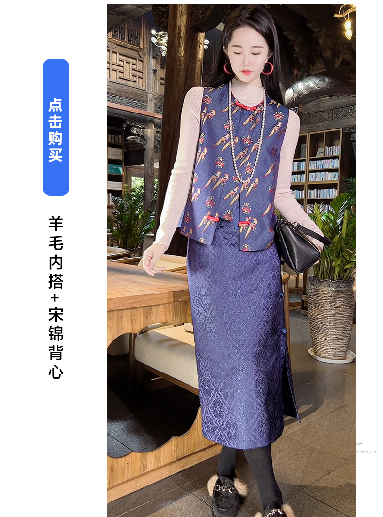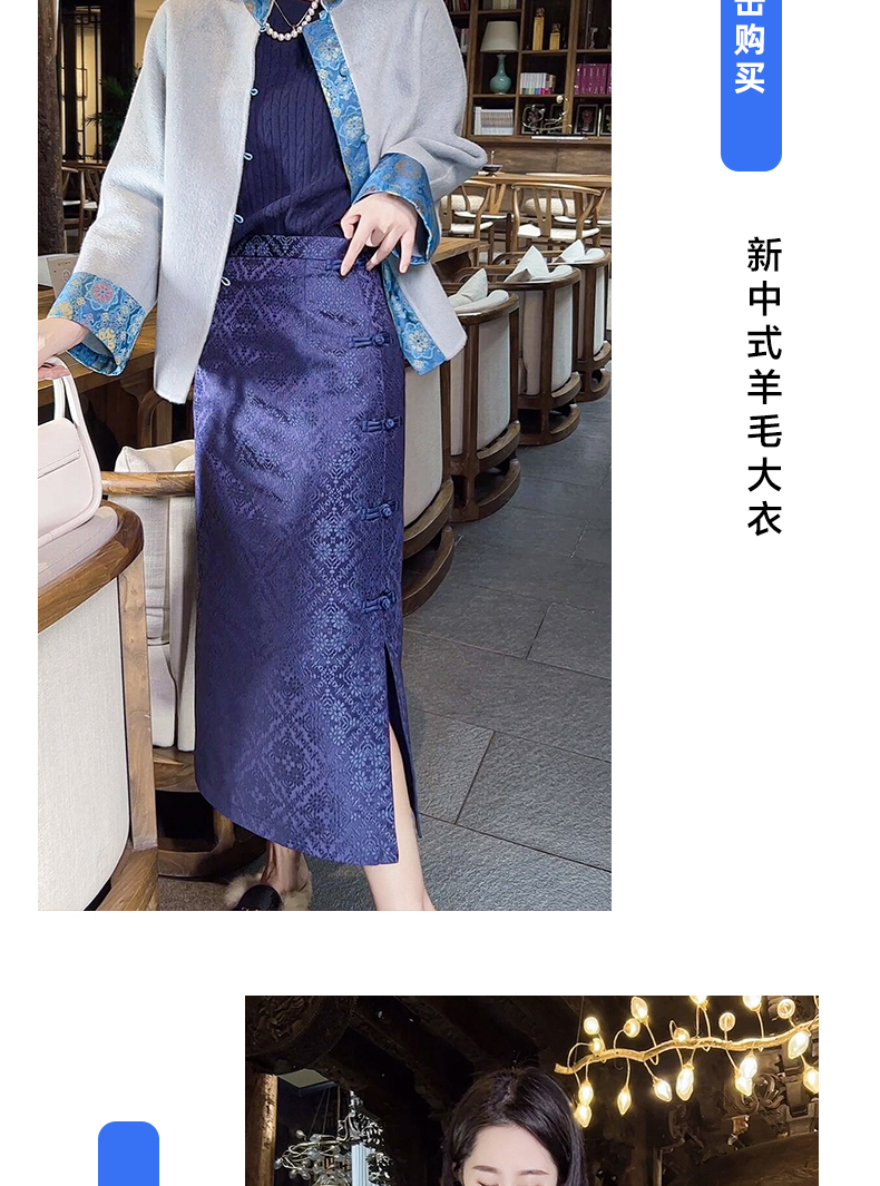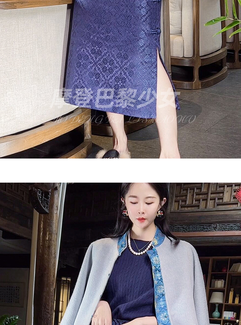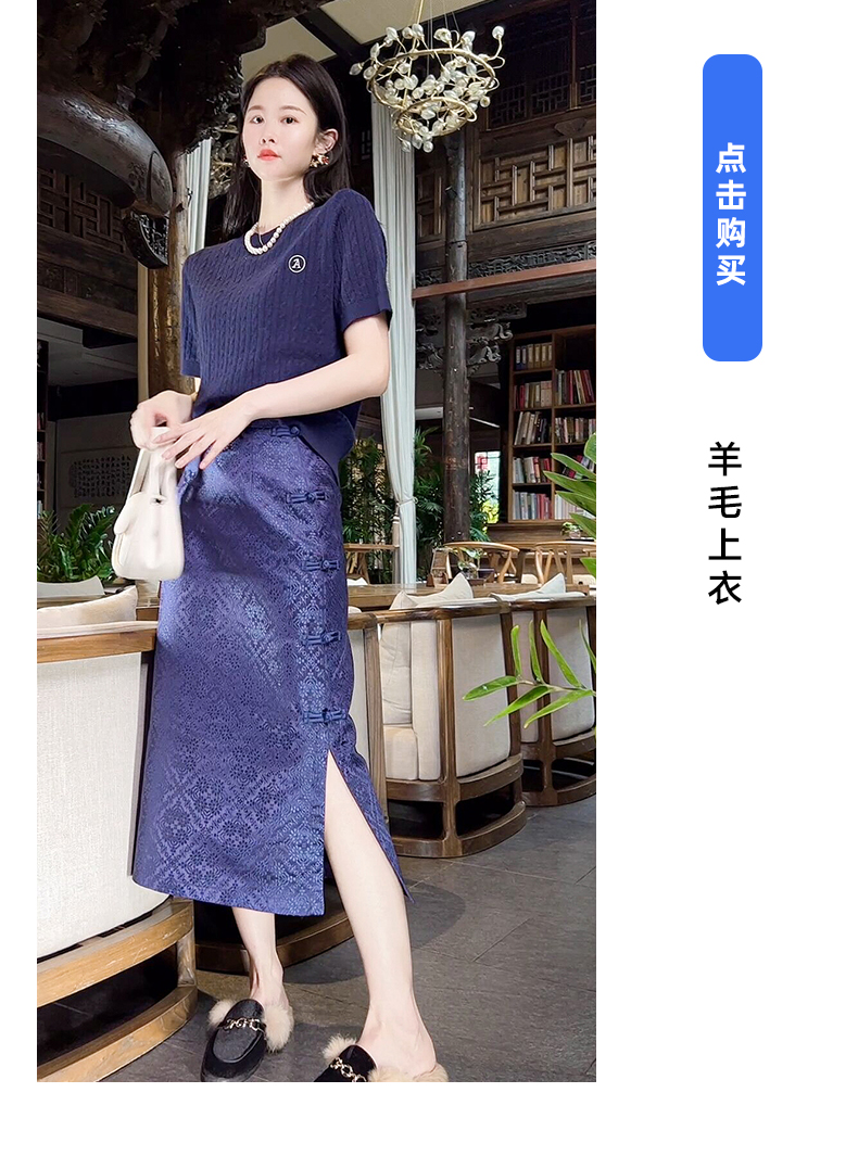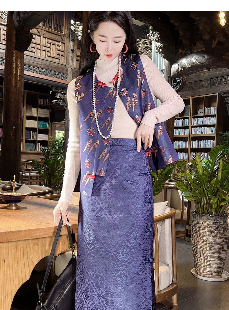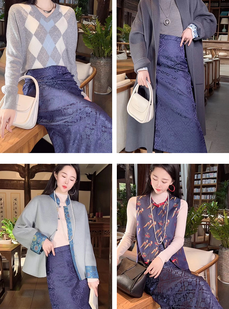 ASAYA2753 Early Spring Retro High Waist Slit Jacquard Hip Cover Skirt