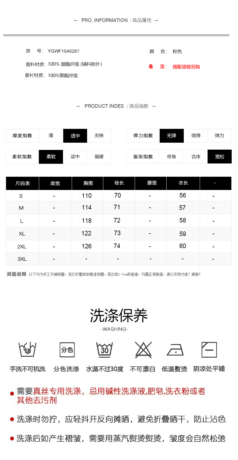 | Material composition | Acetate fiber (acetate fiber) 100% |