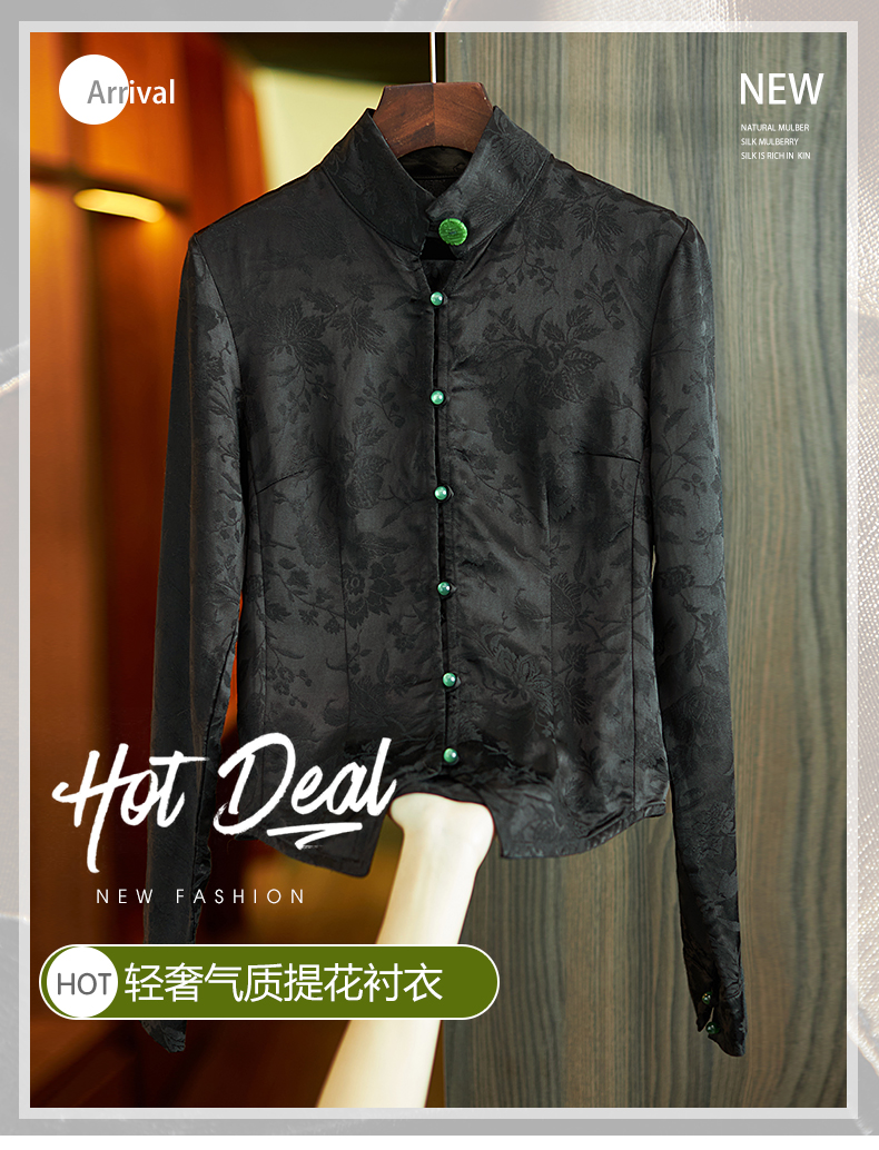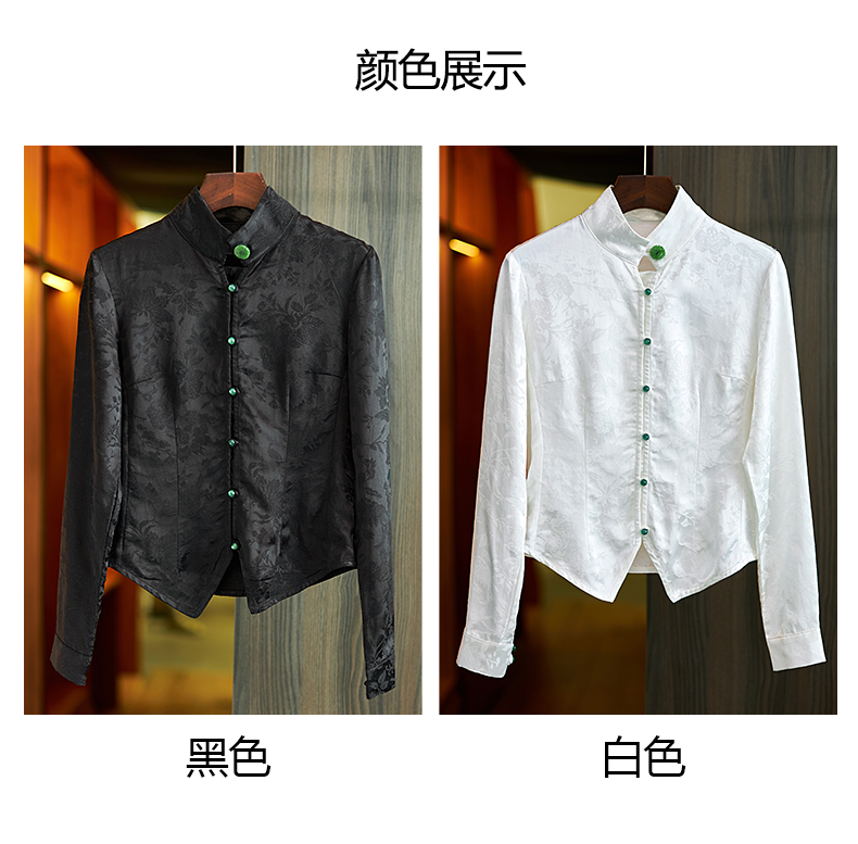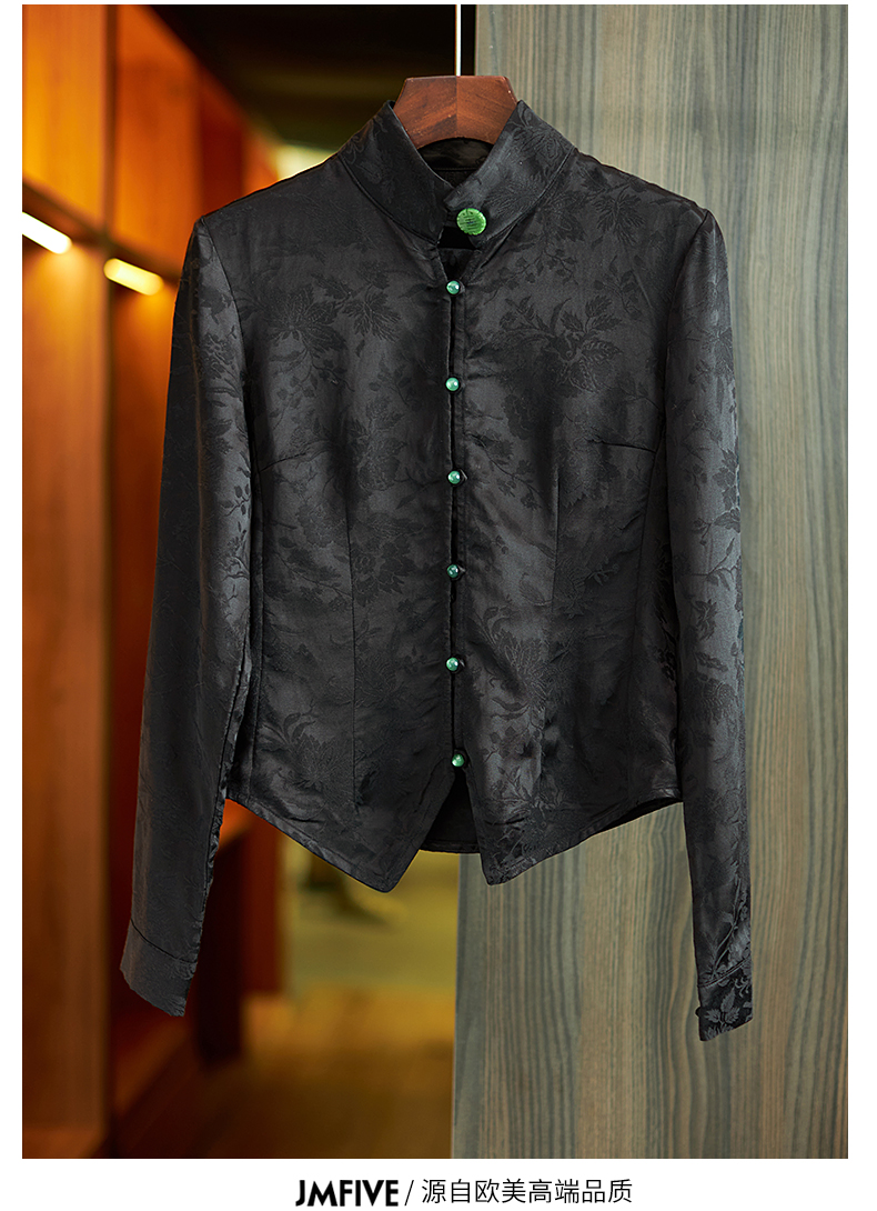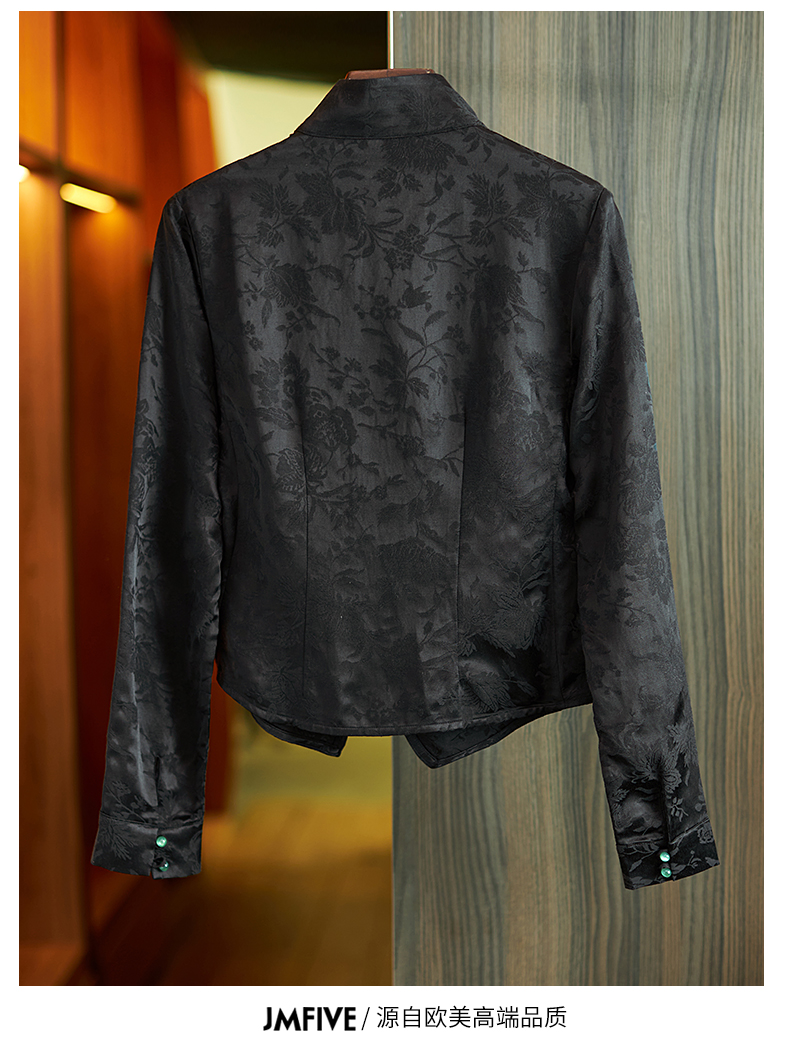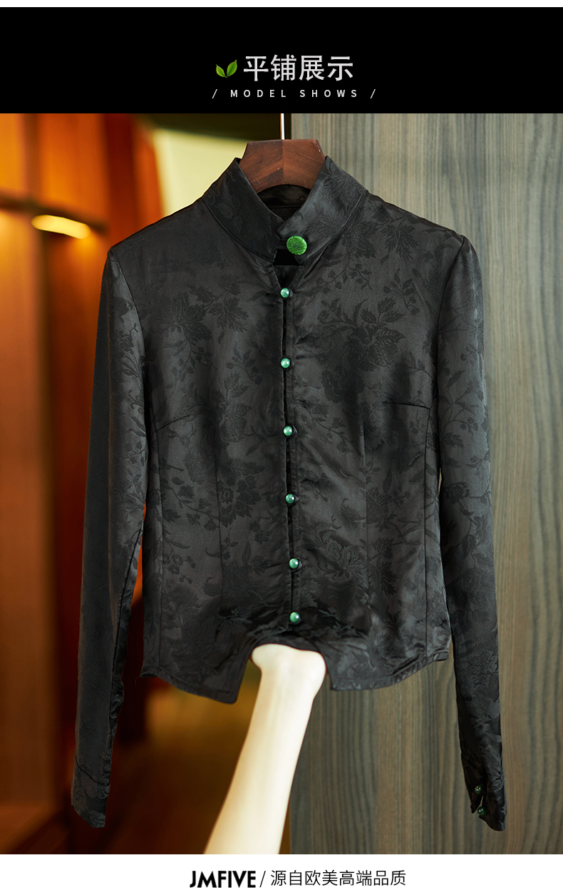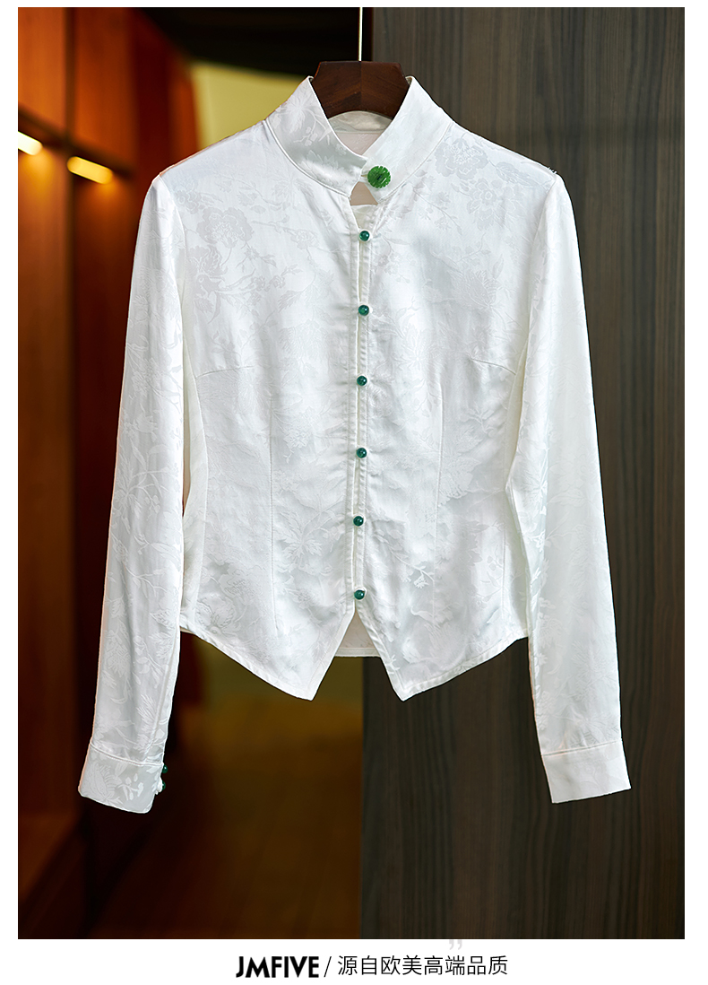 Asaya686 - Chinese style retro jacquard long sleeved shirt for women 2025 spring and autumn national trend new Chinese style jacquard slim fit top for women