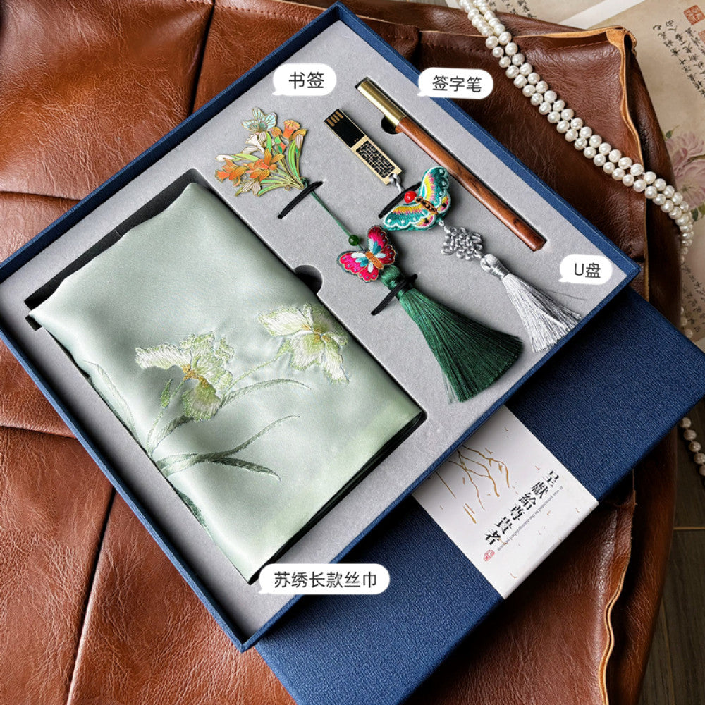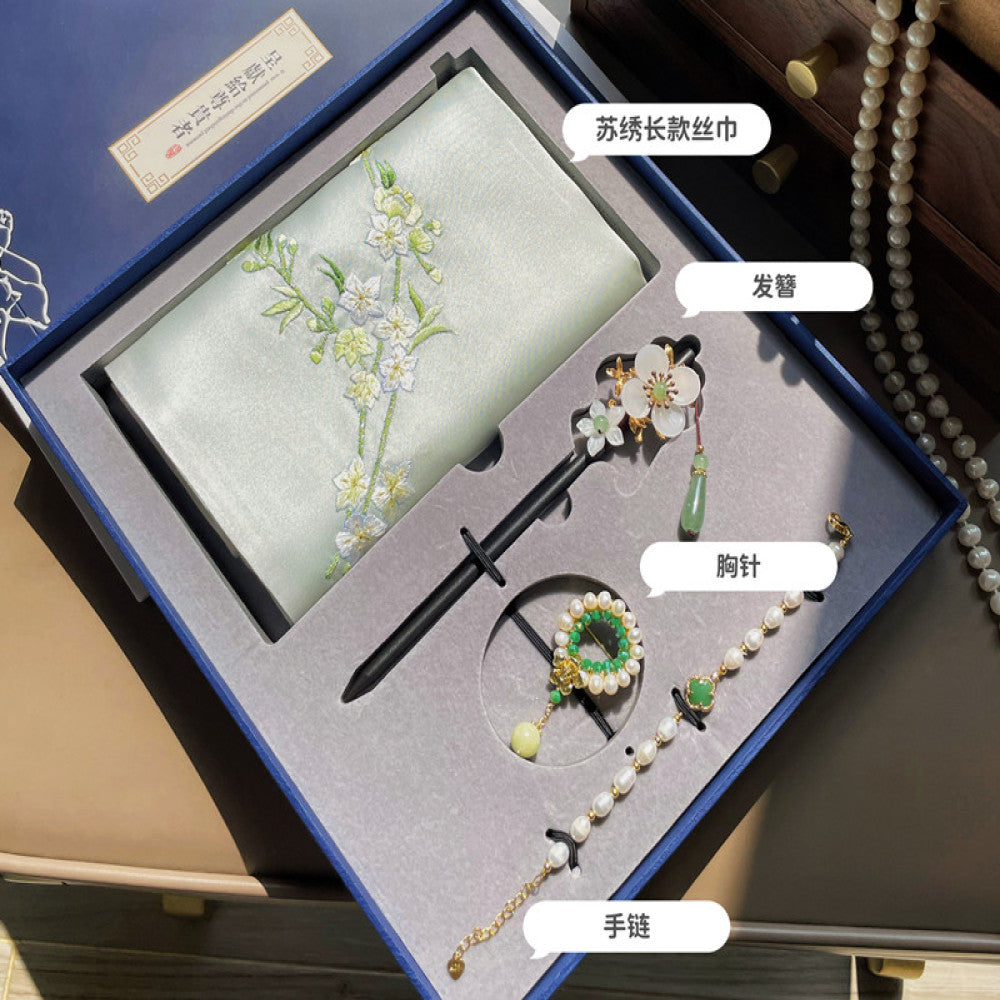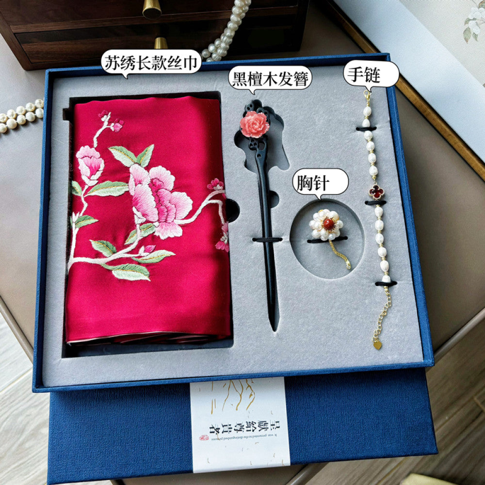 ASAYA3357 Chinese style Suzhou embroidery gift set hand-embroidered silk scarf four-piece holiday gift