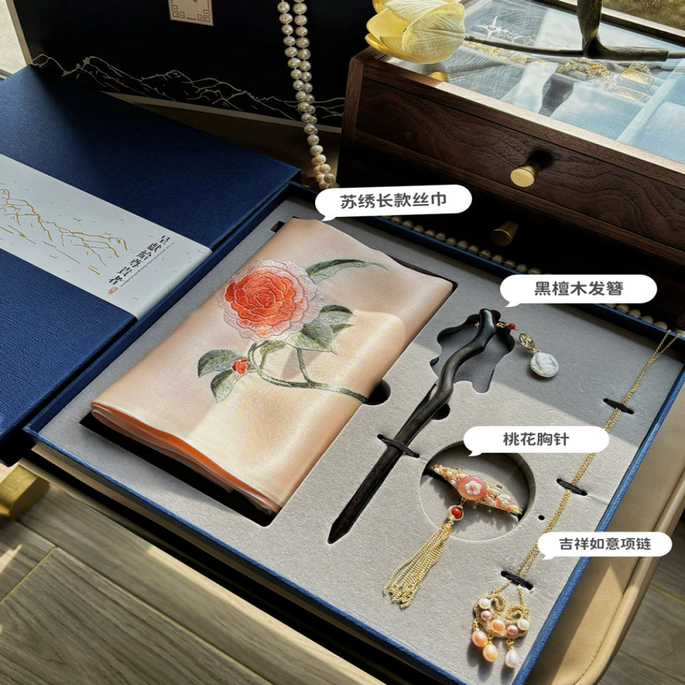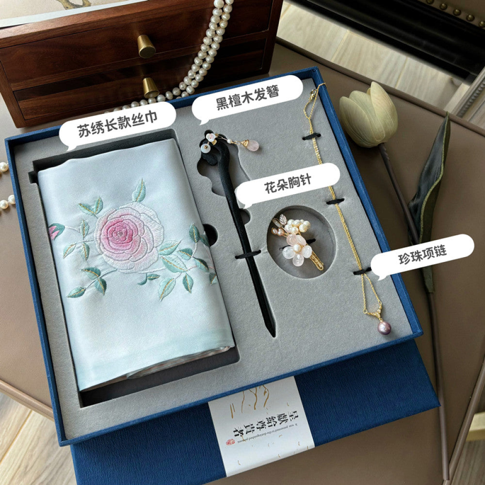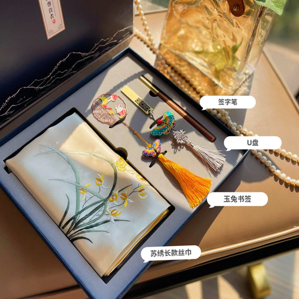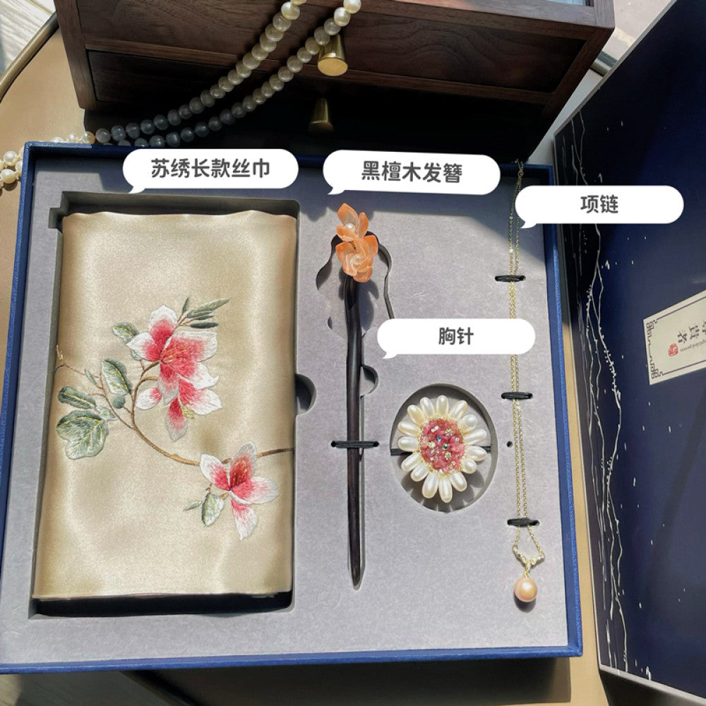 ASAYA3357 Chinese style Suzhou embroidery gift set hand-embroidered silk scarf four-piece holiday gift