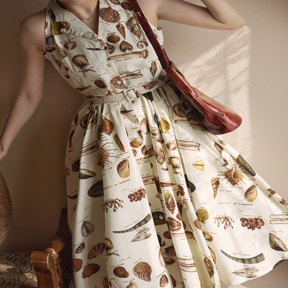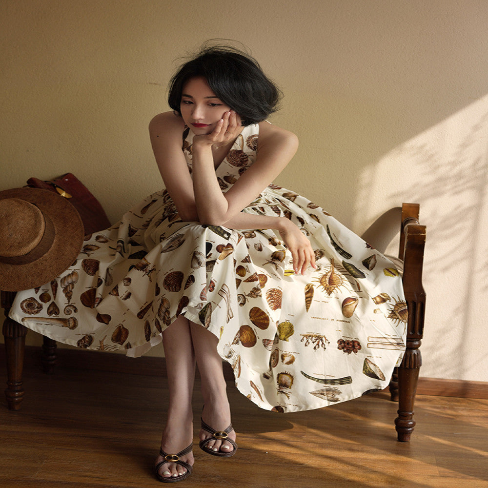 ASAYA4654 – Vintage Shell & Flora Halter Dress 🐚🌿✨