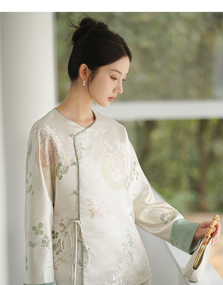 ASAYA3147 Spring New Style Tea Clothes Retro Song Brocade Jacquard Top