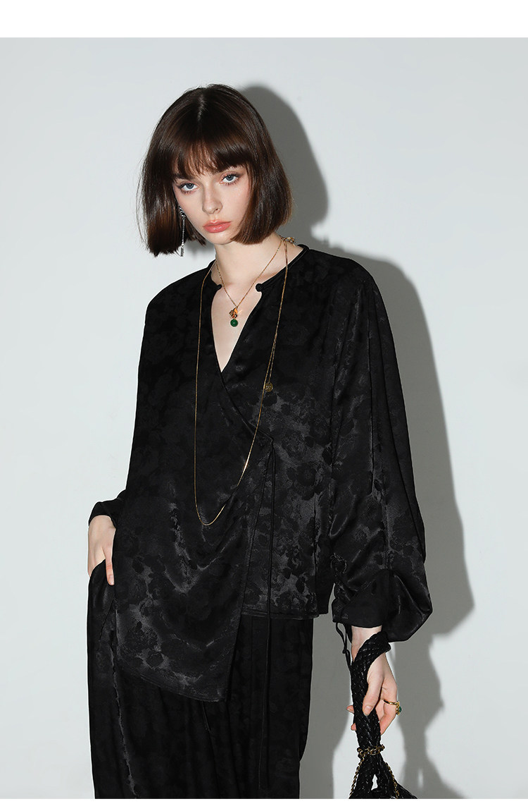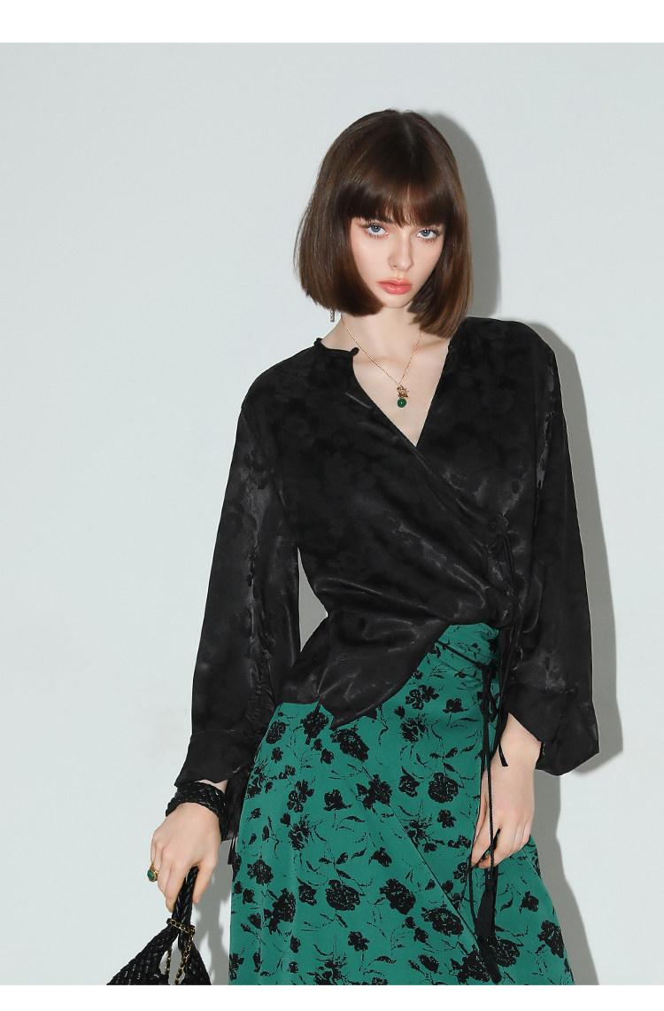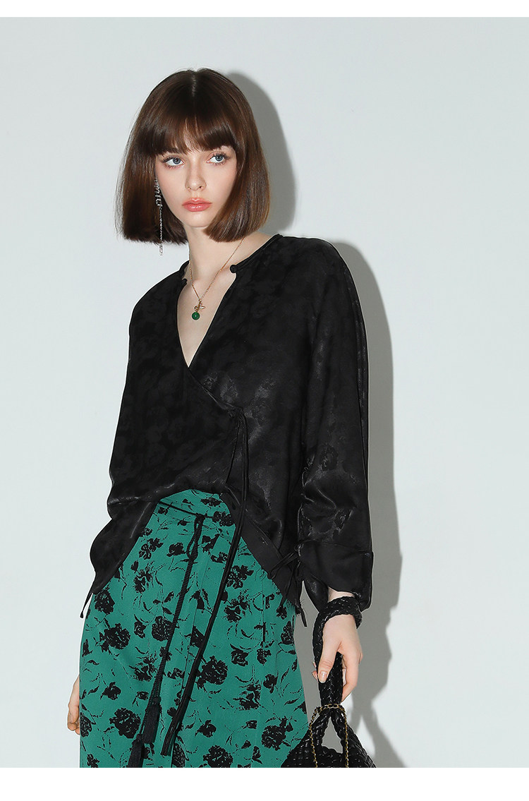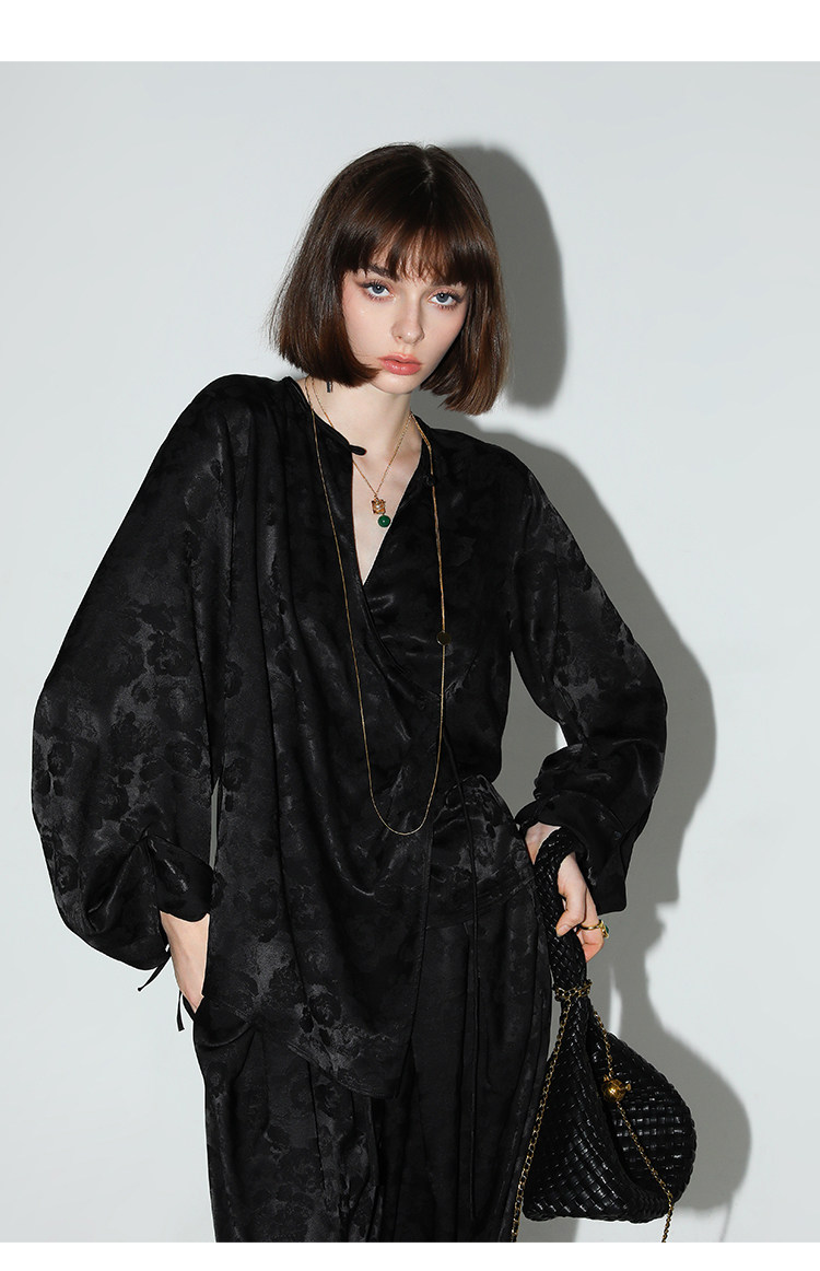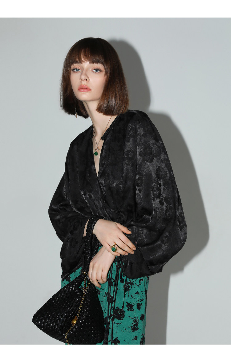 ASAYA5103 – Noir Whisper Wrap Blouse 🖤🌹