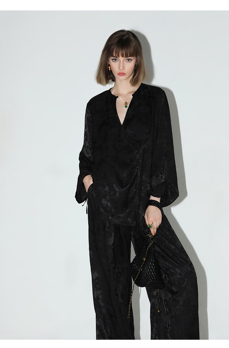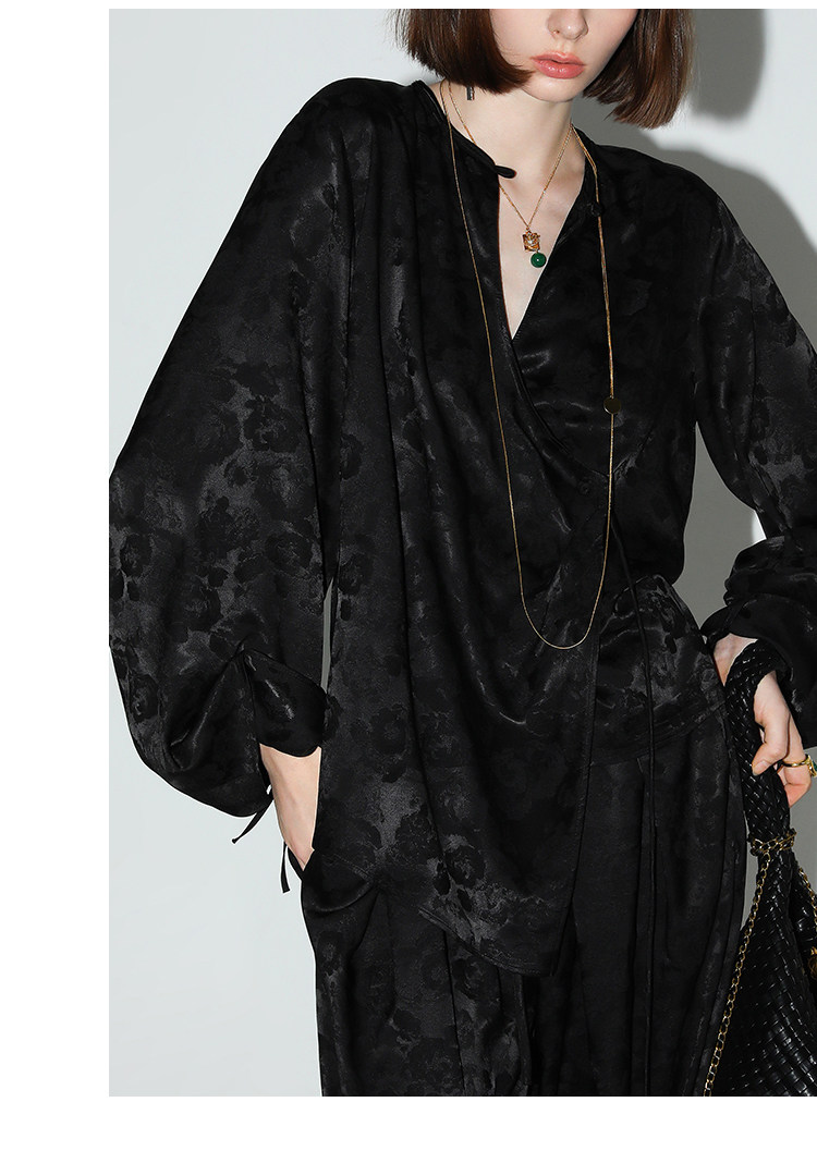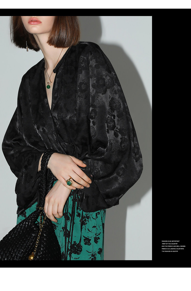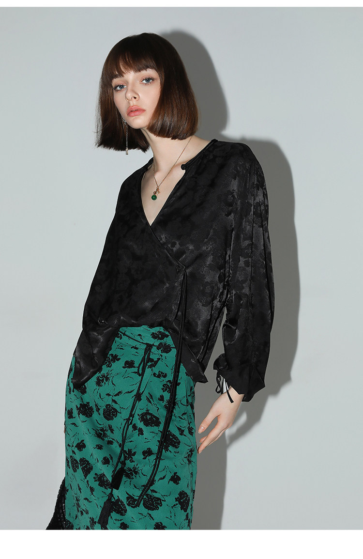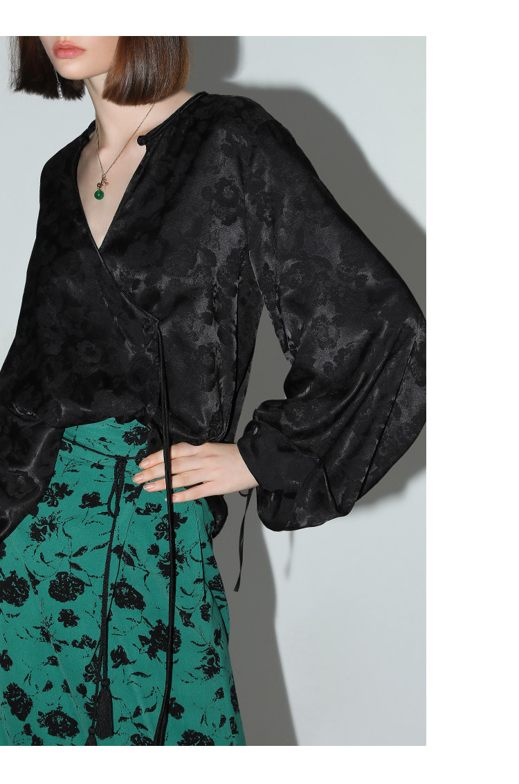 ASAYA5103 – Noir Whisper Wrap Blouse 🖤🌹
