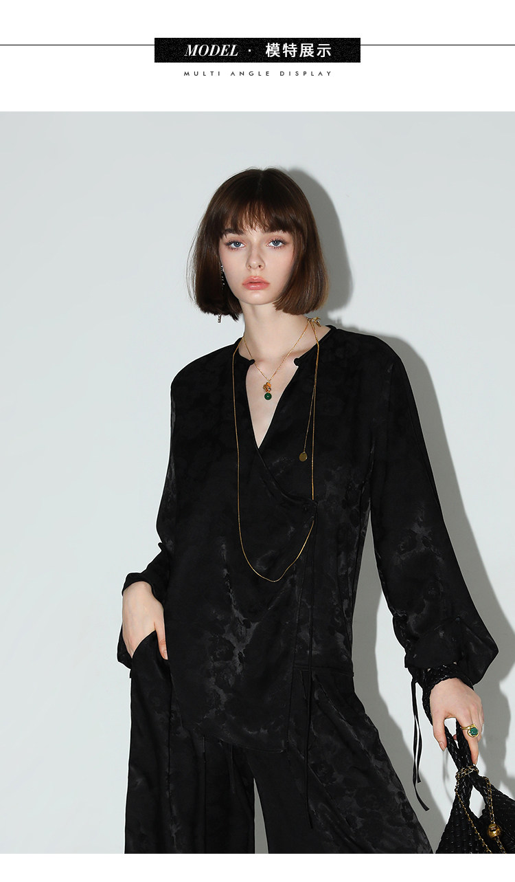 | Style details | Gathering, tie, Chinese knot button, jacquard |