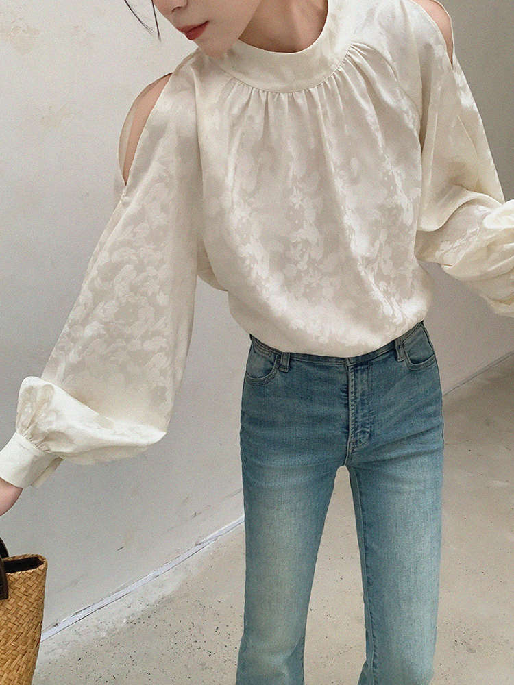 ASAYA3309 Dimple custom white off-shoulder stand collar