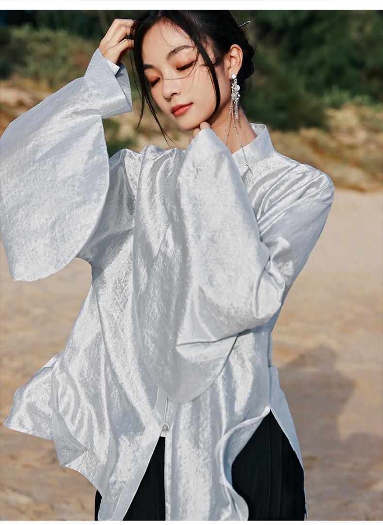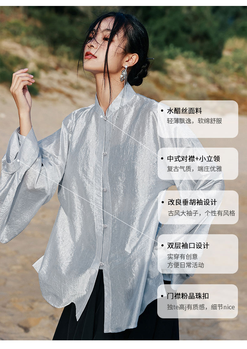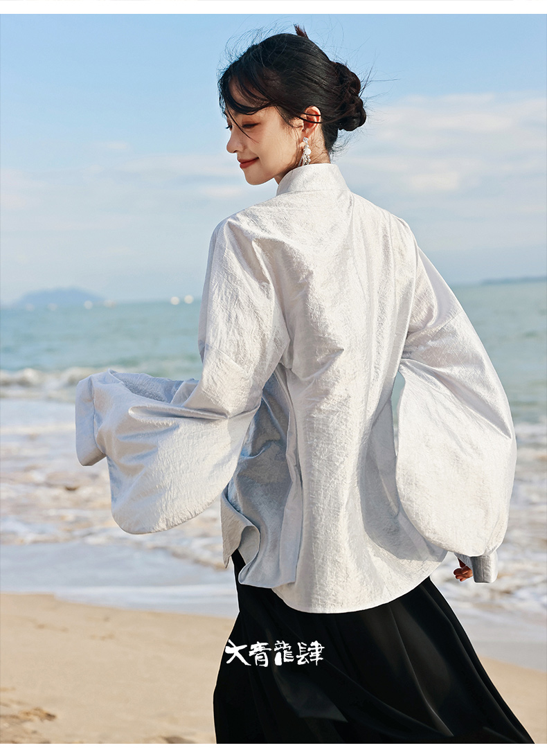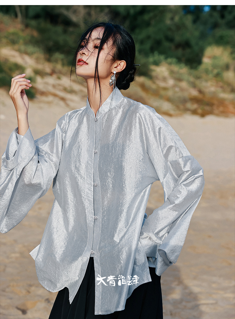 Asaya1050 - Da Qinglong returns to the new Chinese style shirt with Hu sleeves and Chinese style women s clothing 2025 new top shirt and small shirt