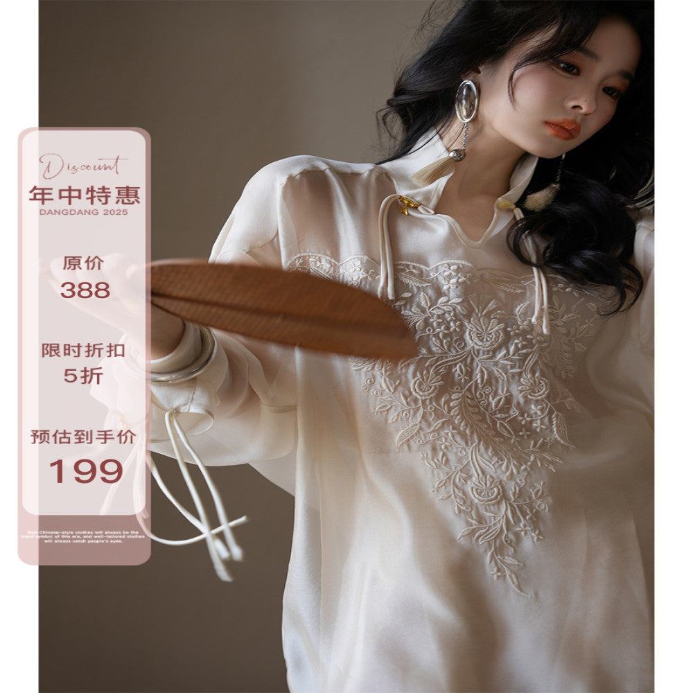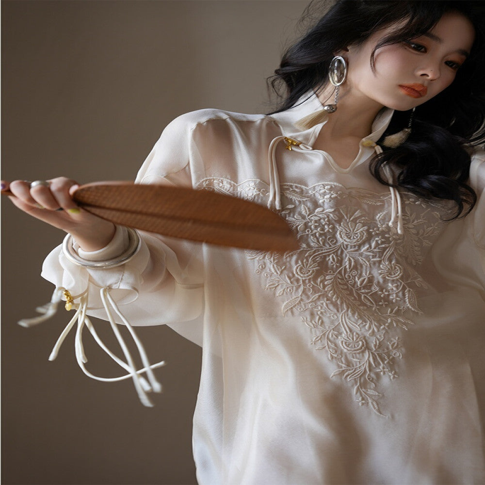 ASAYA-3758 Cluster of Flowers Embroidered Tassel Shirt 🌸✨