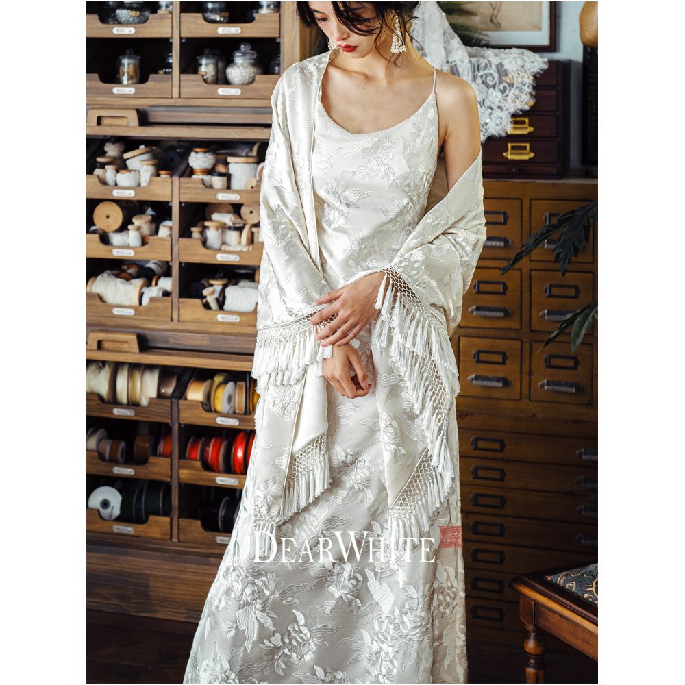 Asaya1245 - Satin Embroidered Sling Dress French and satin shawl with a high-end cape scarf