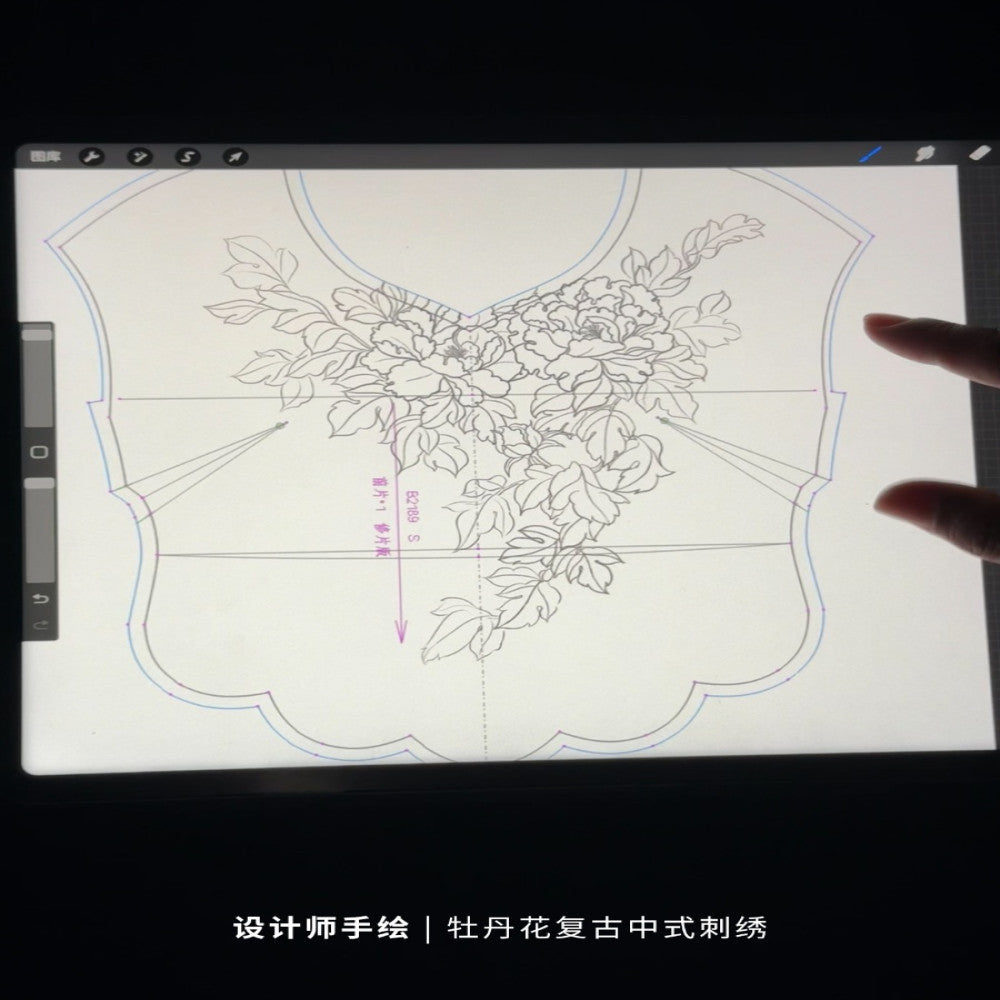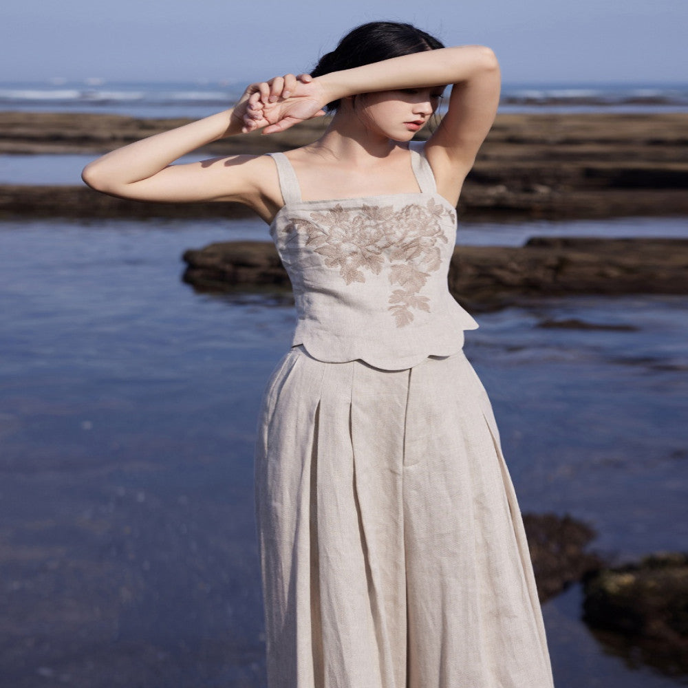 ASAYA3665 Designer hand-painted peony flowers | Heavy yarn-dyed linen | Slim-fit vest, short sleeves and wide-leg pants