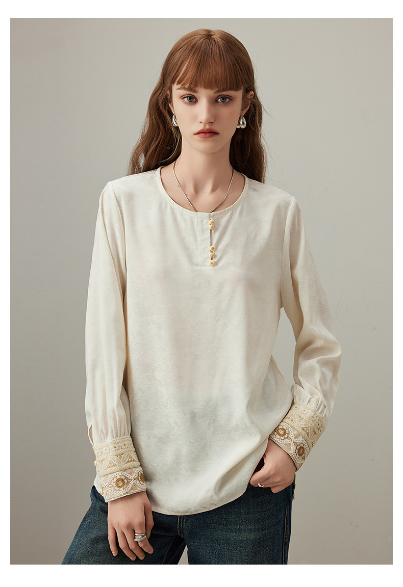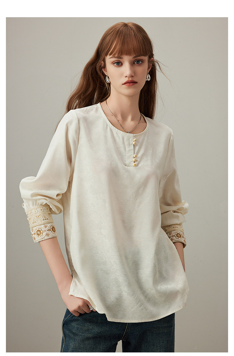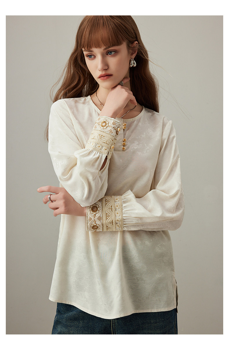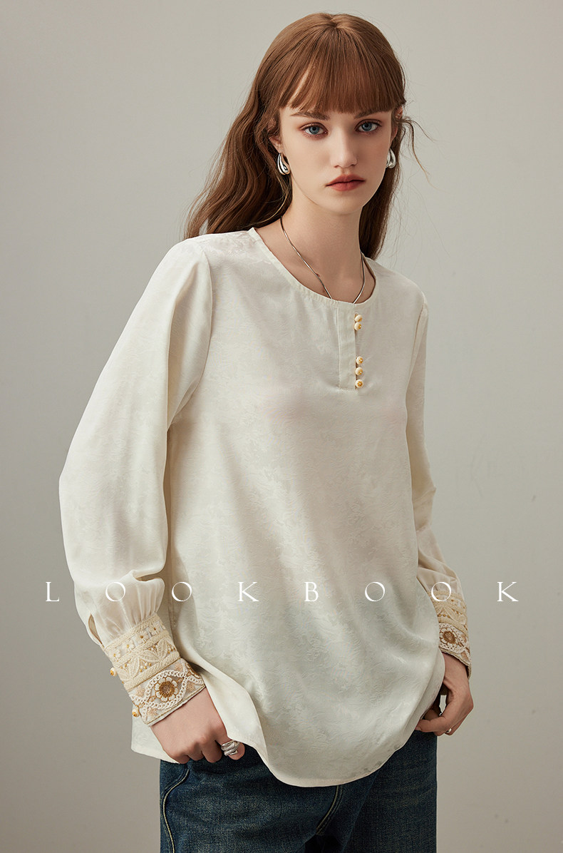 ASAYA5184 – Ivory Lace Cuff Blouse 🤍🌾