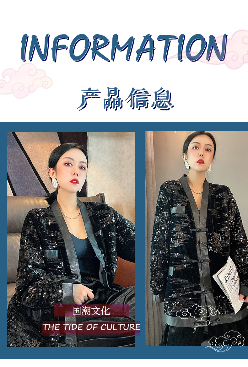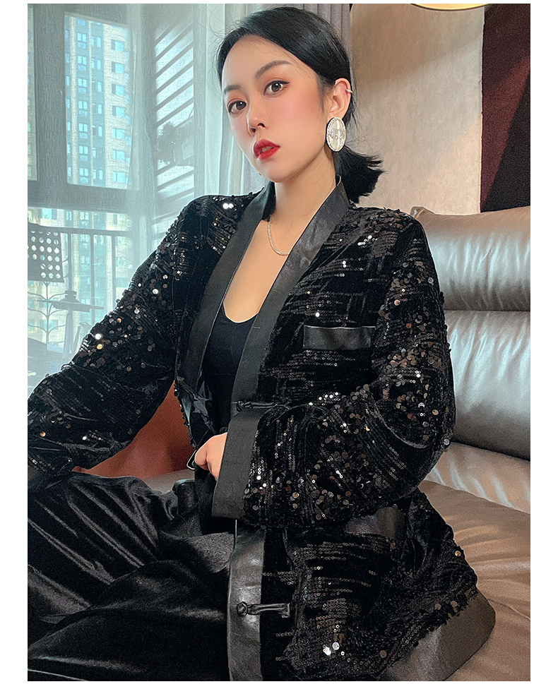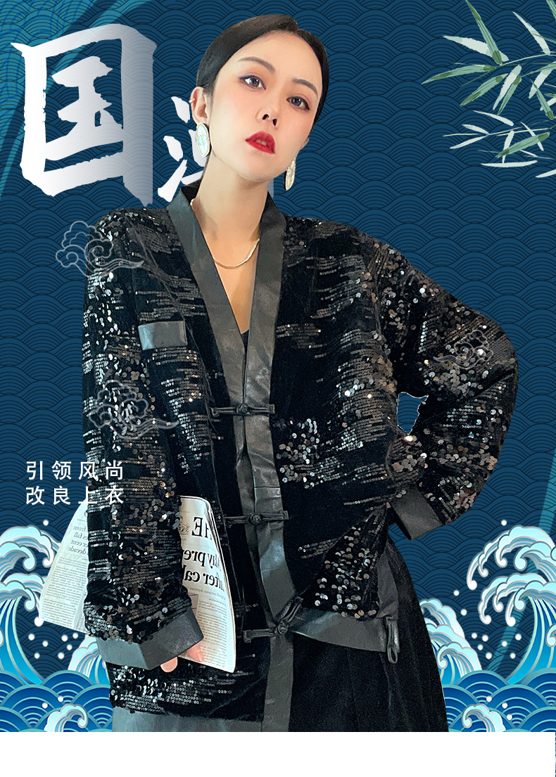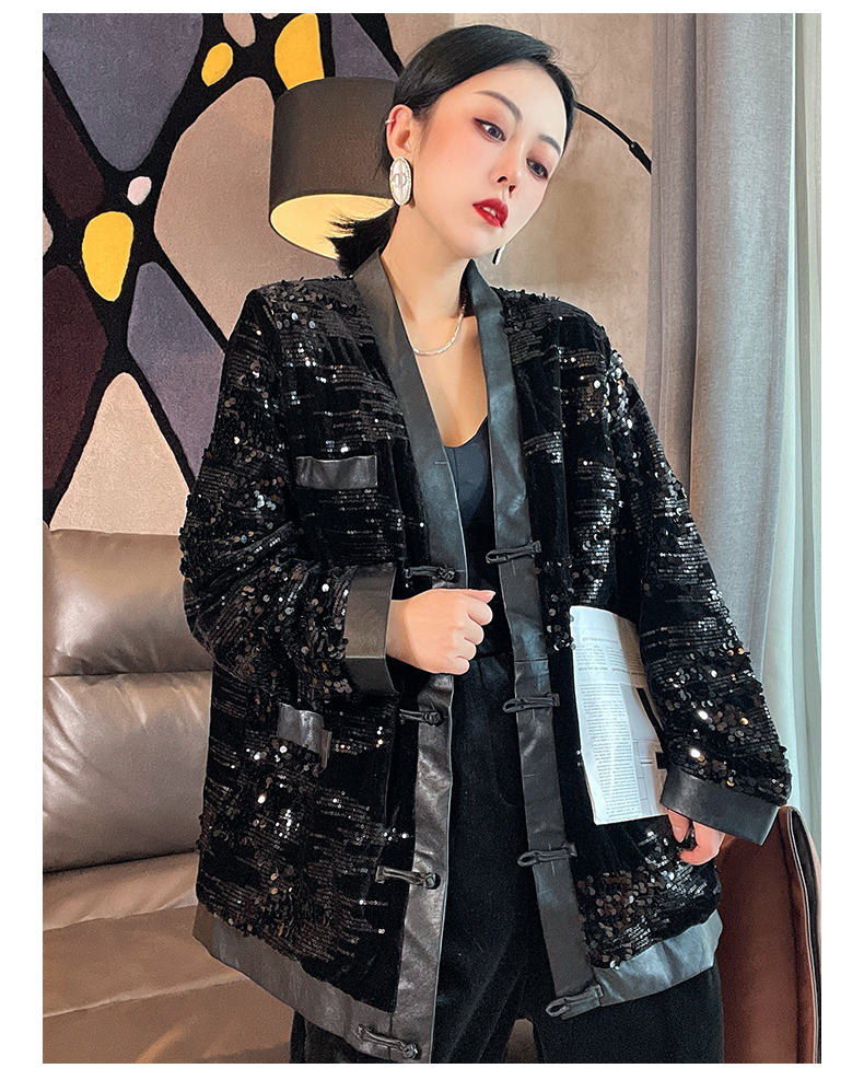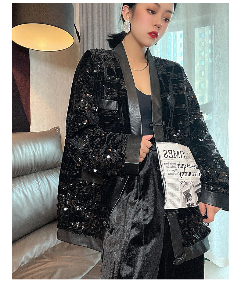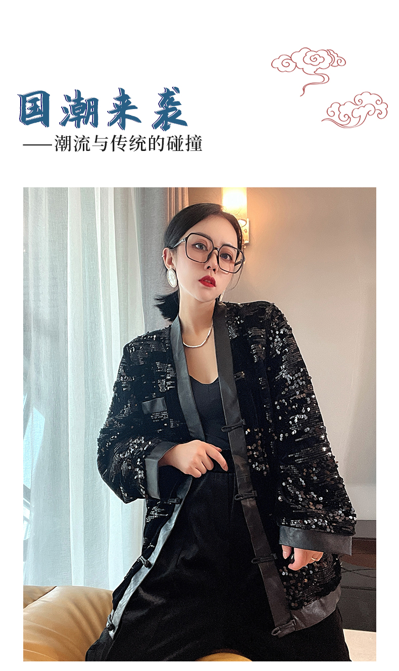 ASAYA4083 ✨ Sequin Black Chinese-Style Cardigan 💎