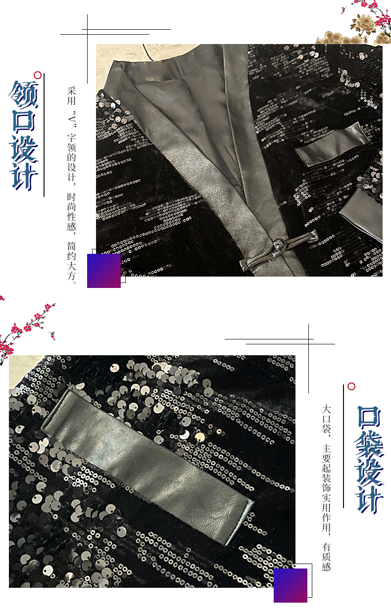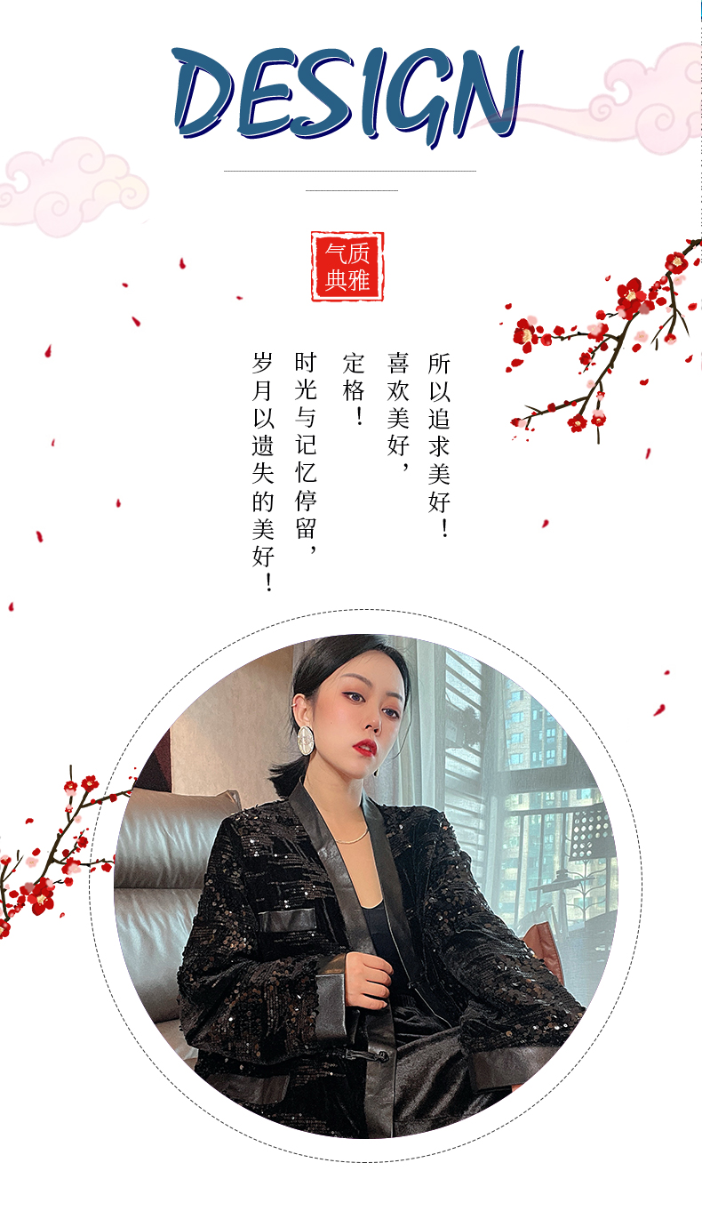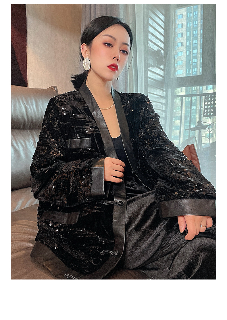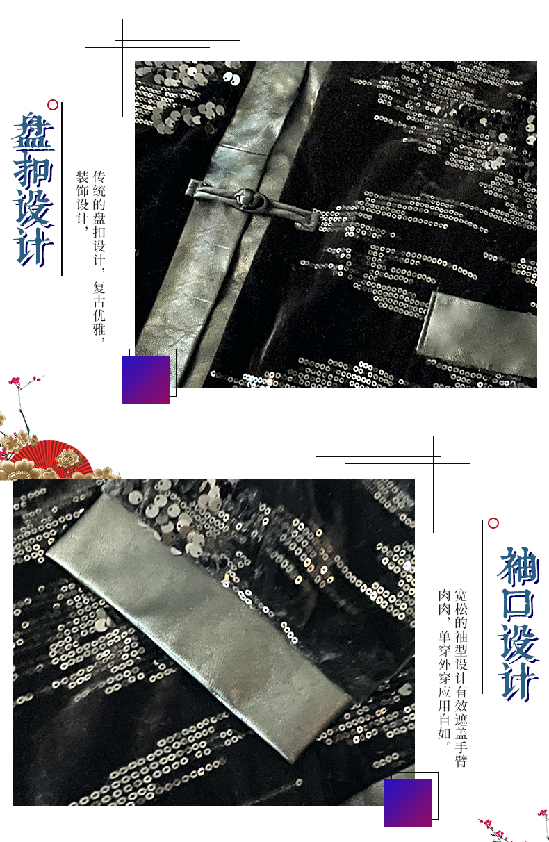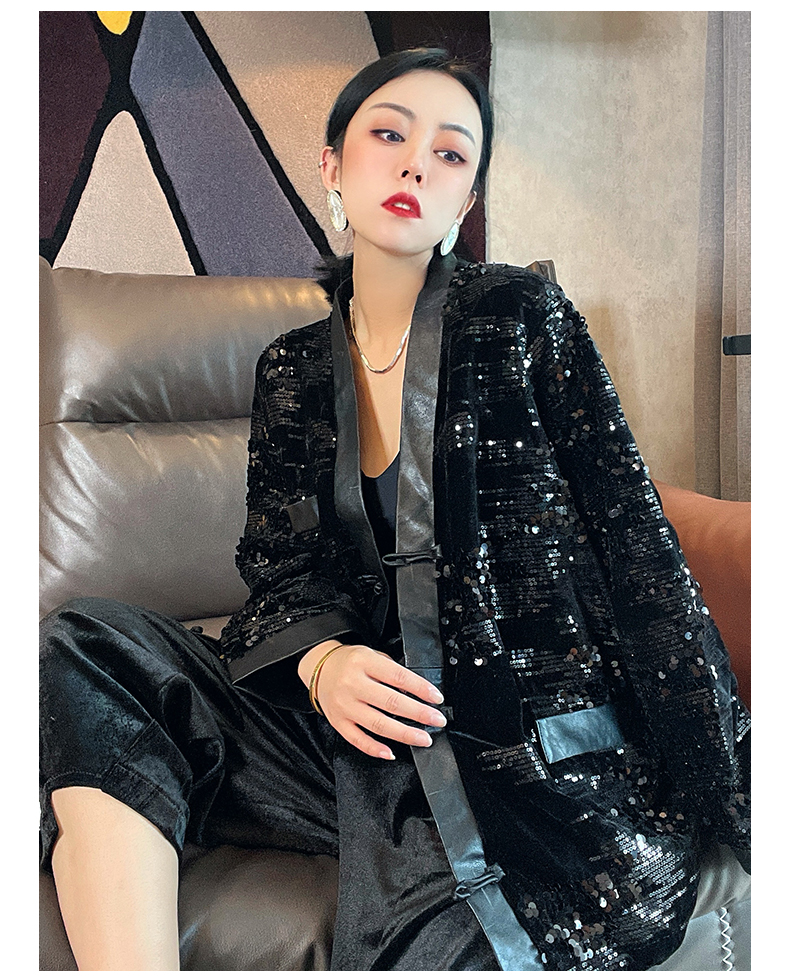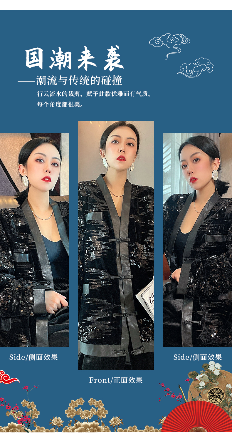 ASAYA4083 ✨ Sequin Black Chinese-Style Cardigan 💎